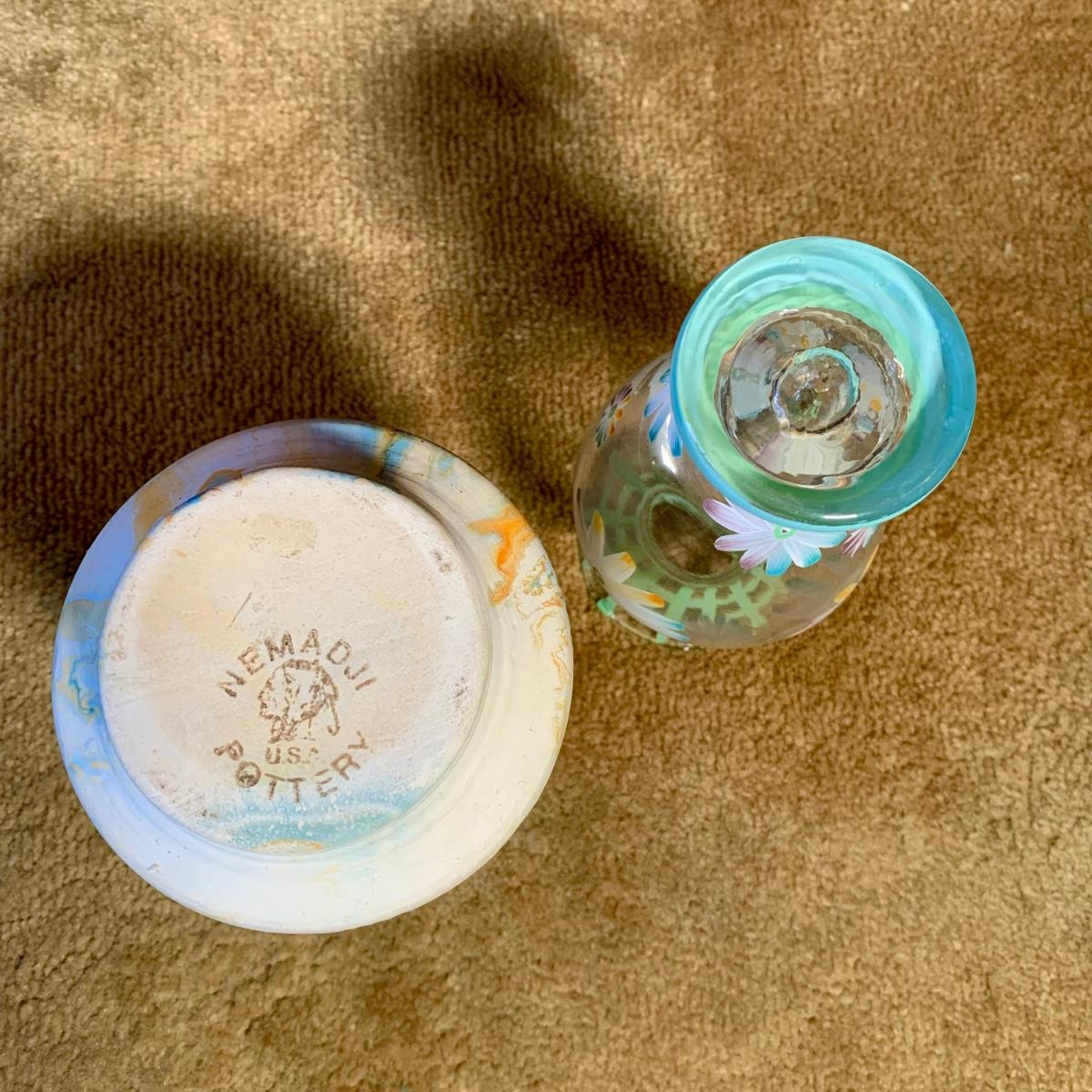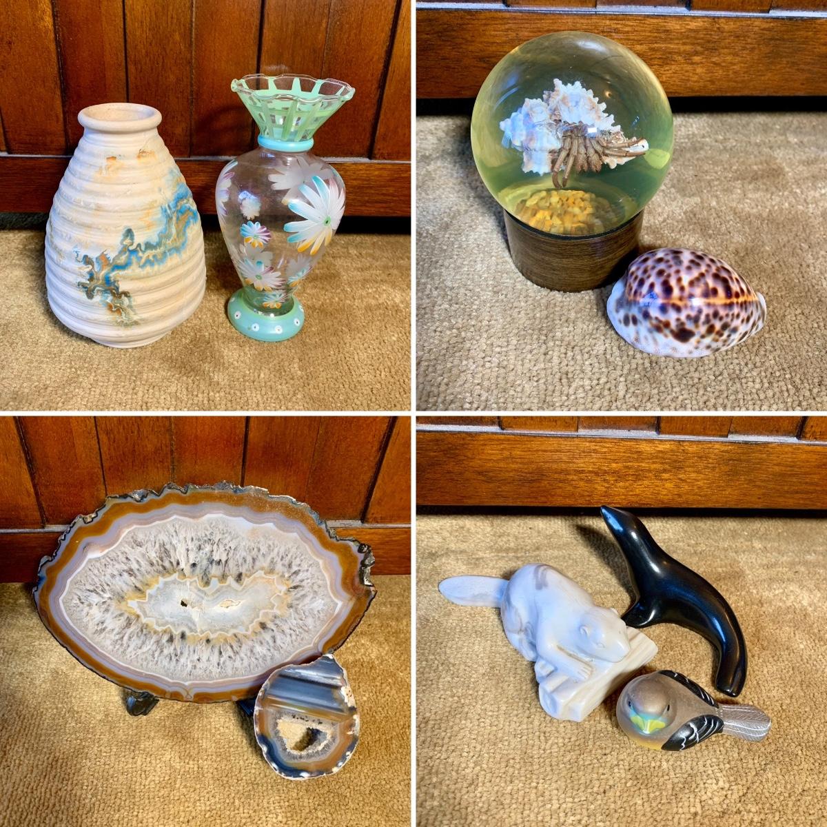 LOT 45 S: Nature Themed Knick Knacks: Nature Gems Hermit Crab, Sliced Geodes, Narive American Nemadji Pottery Vase & More