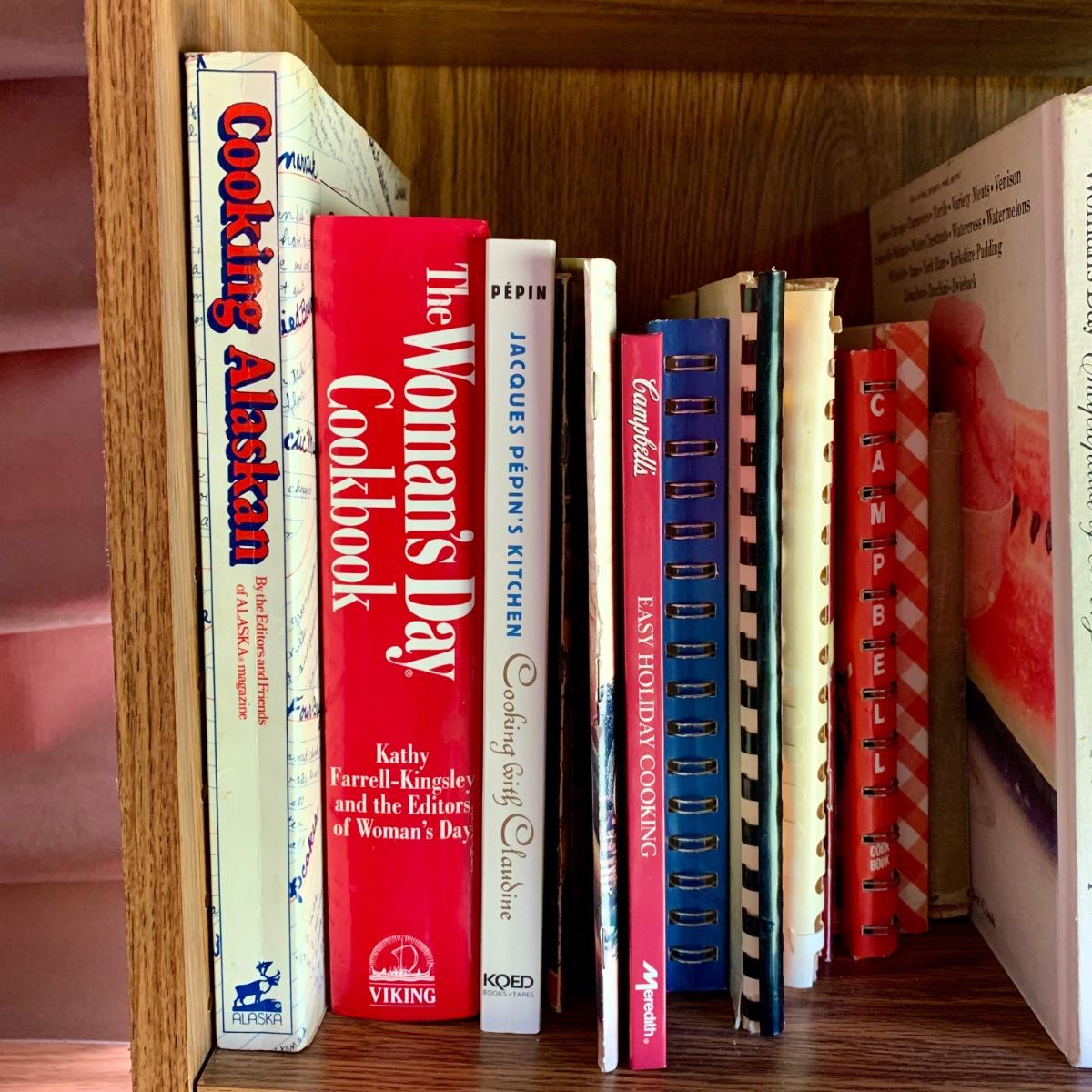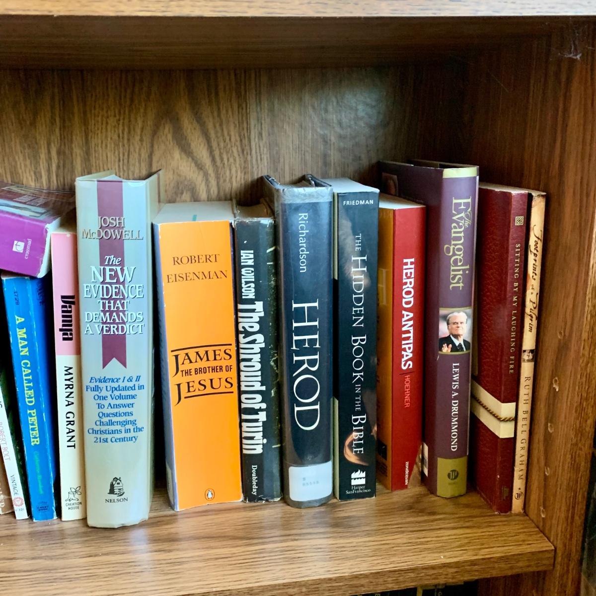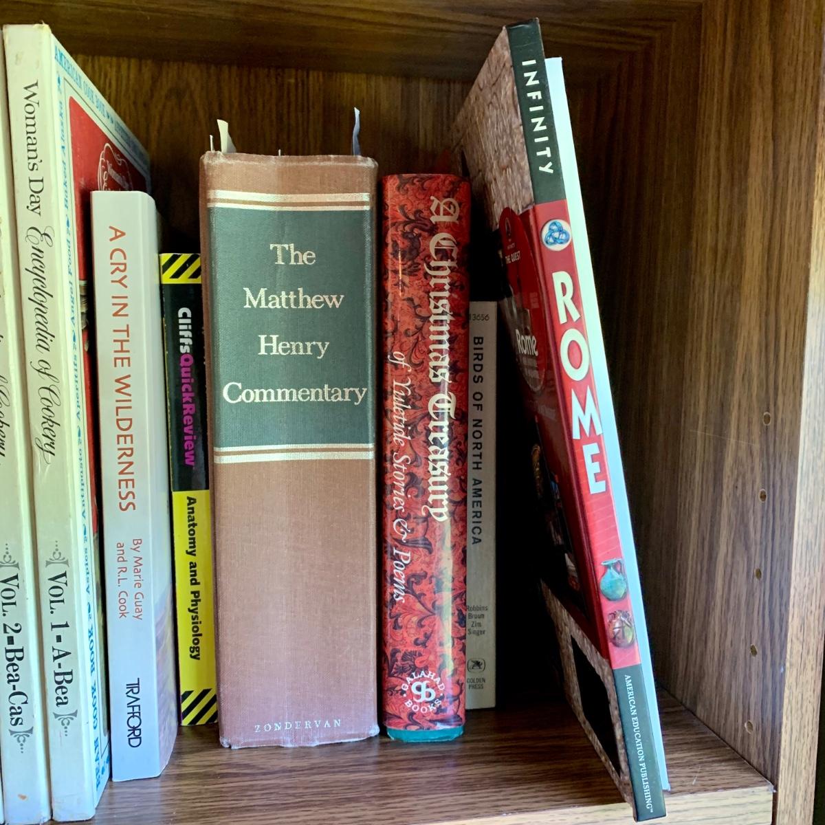 LOT 59 S: Bookshelf & Contents! "Cooking Alaskan" by Alaska Magazine, "Josephus" by Whiston, "A Man For All Seasons" by Robert Bolt, & More