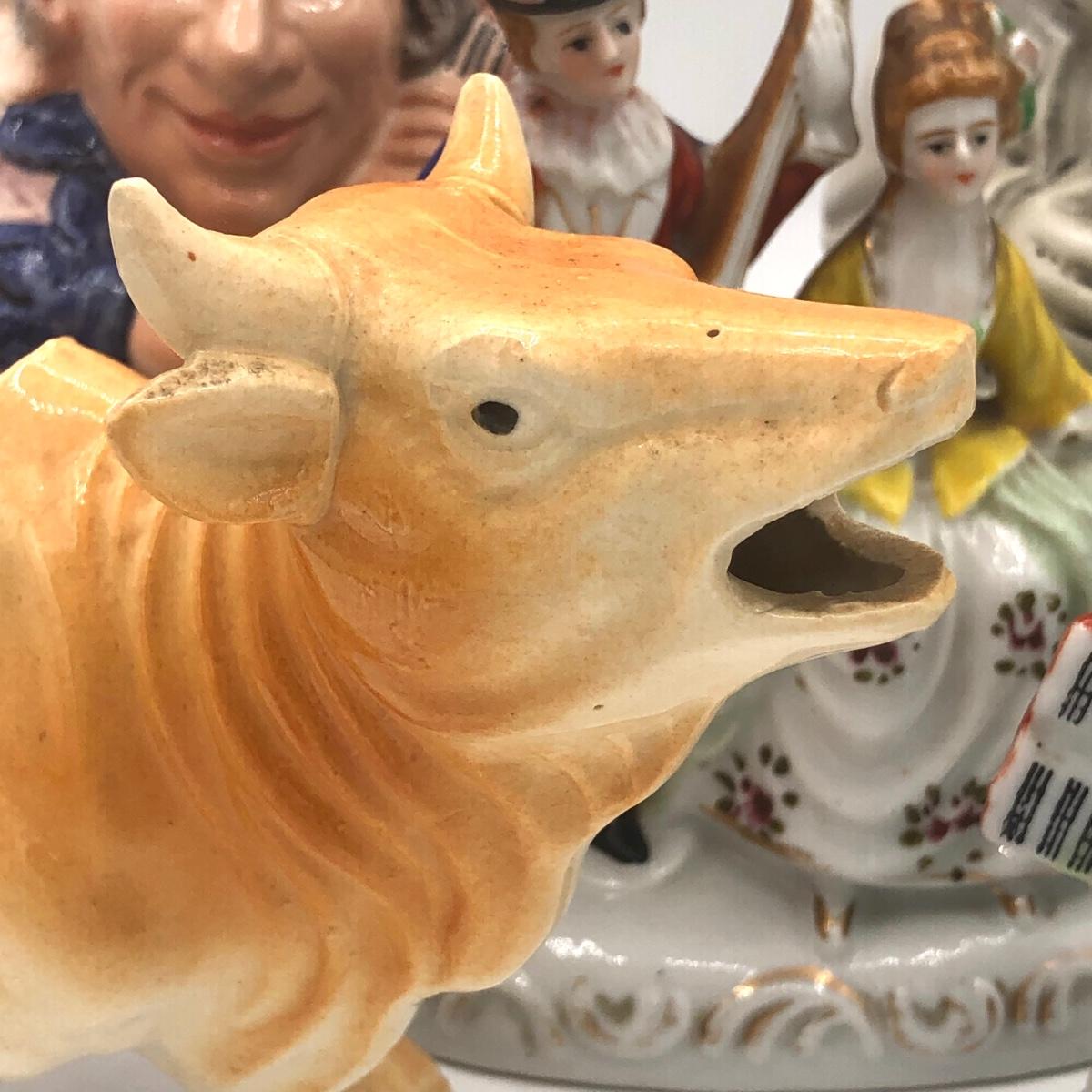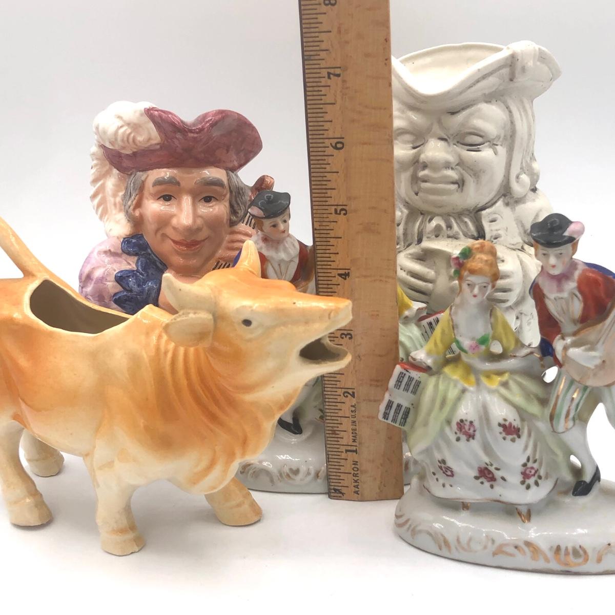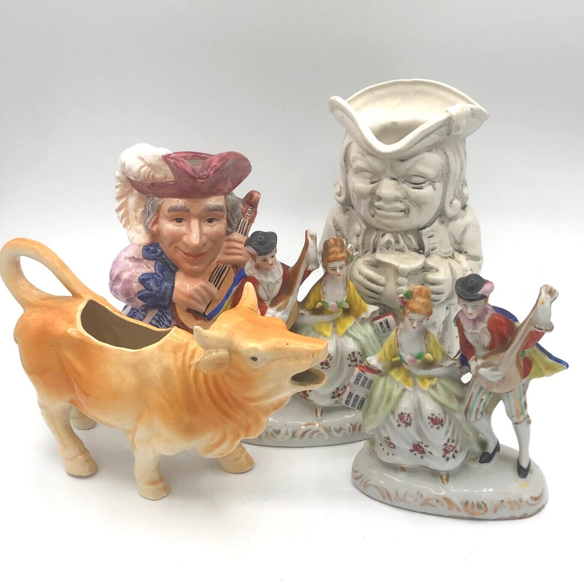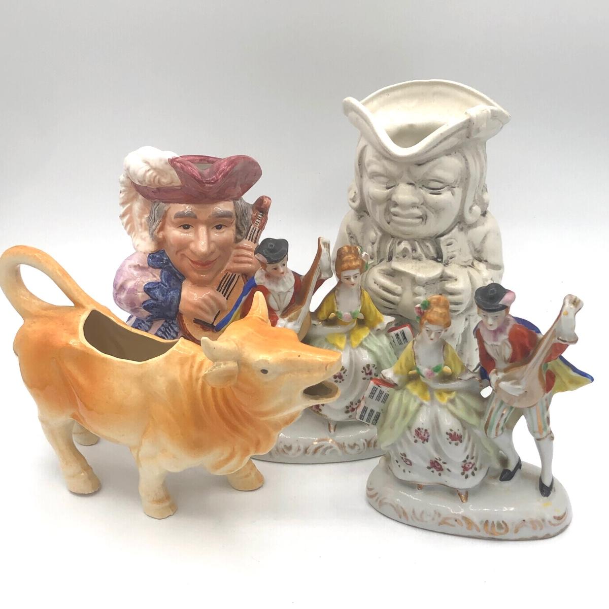 LOT 66K: Vintage Character Jugs, Brown Cow Creamer & Couple Figurines Made in Occupied Japan