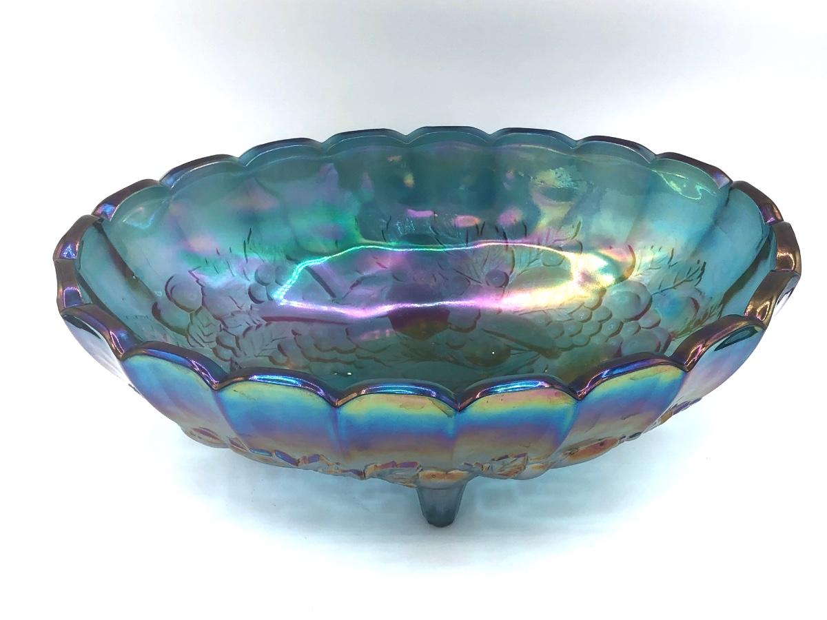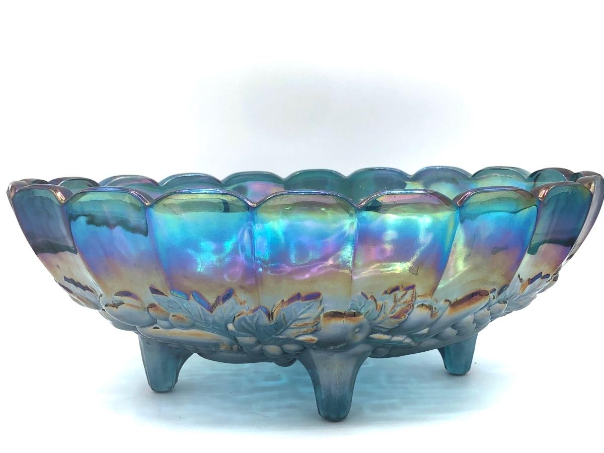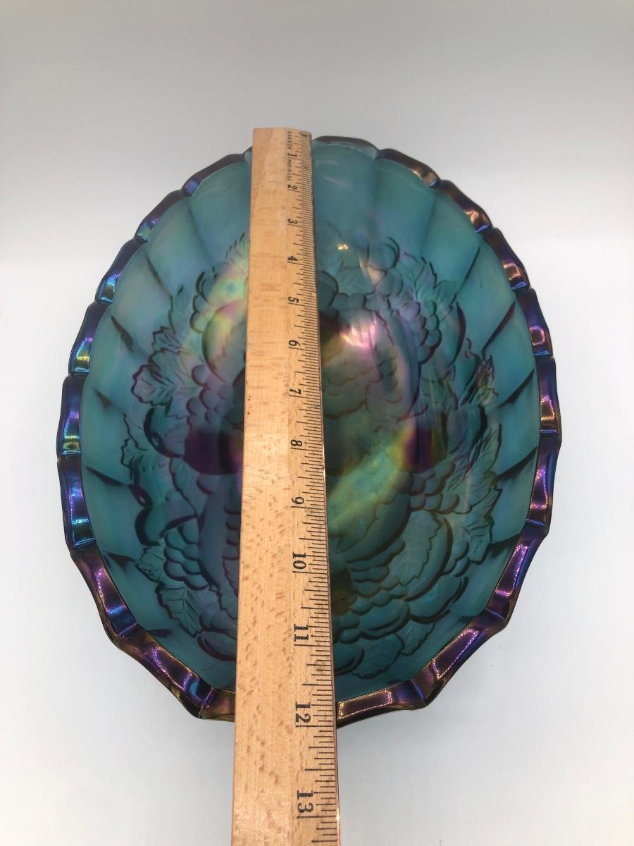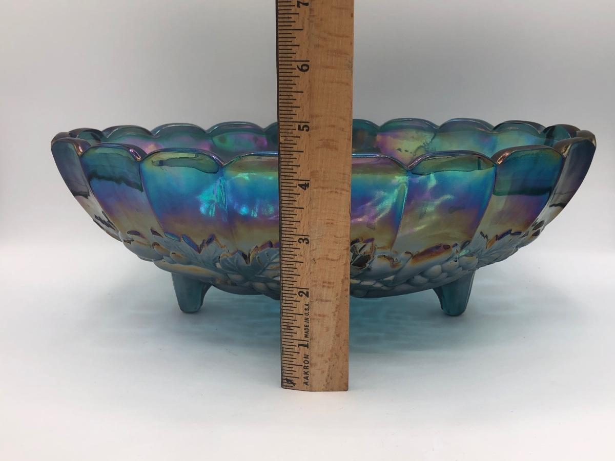 LOT 67K: Vtg. Indiana Glass Harvest Grape Iridescent Blue Carnival Glass Fruit Bowl