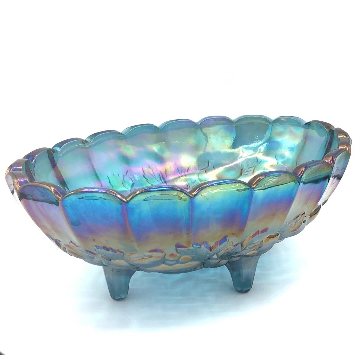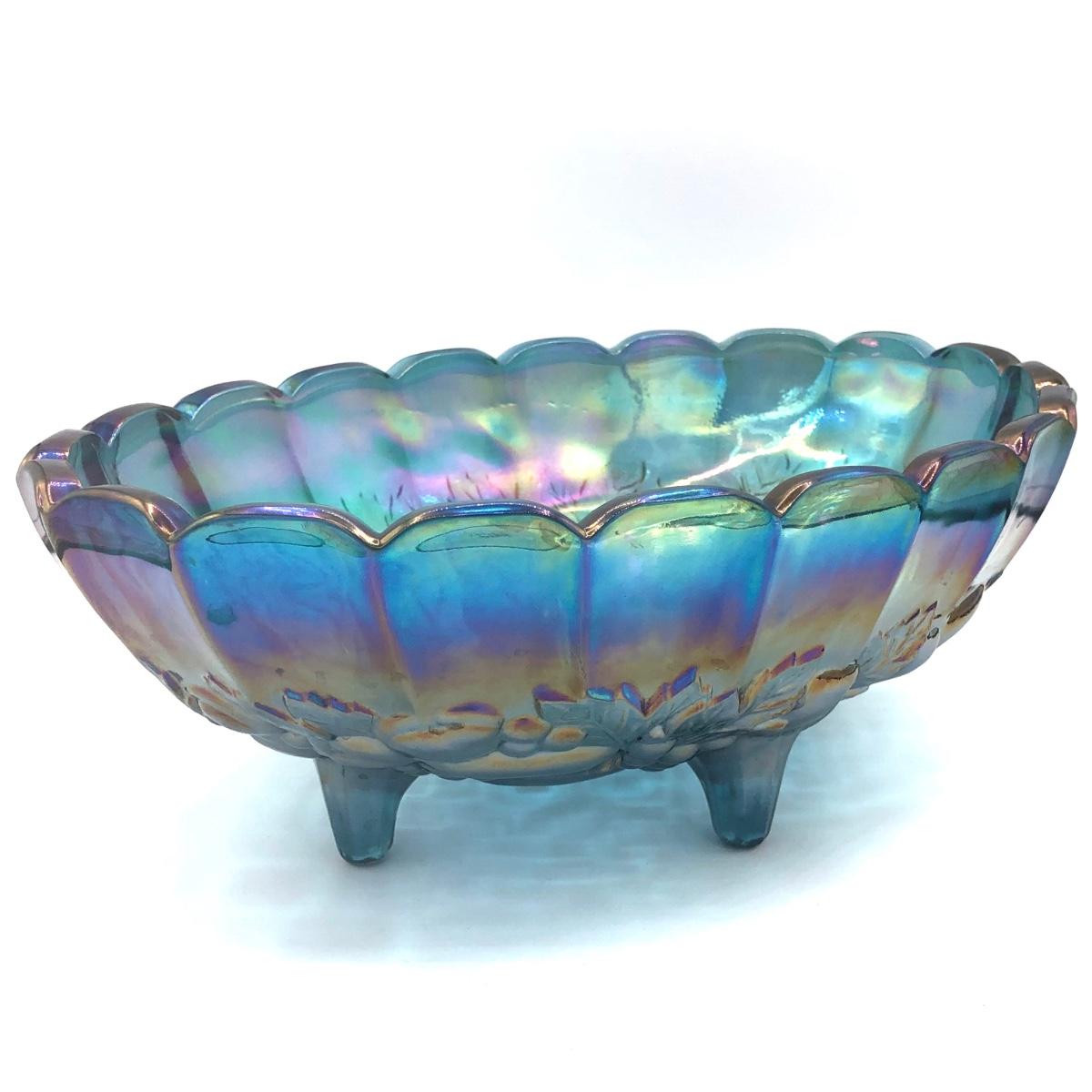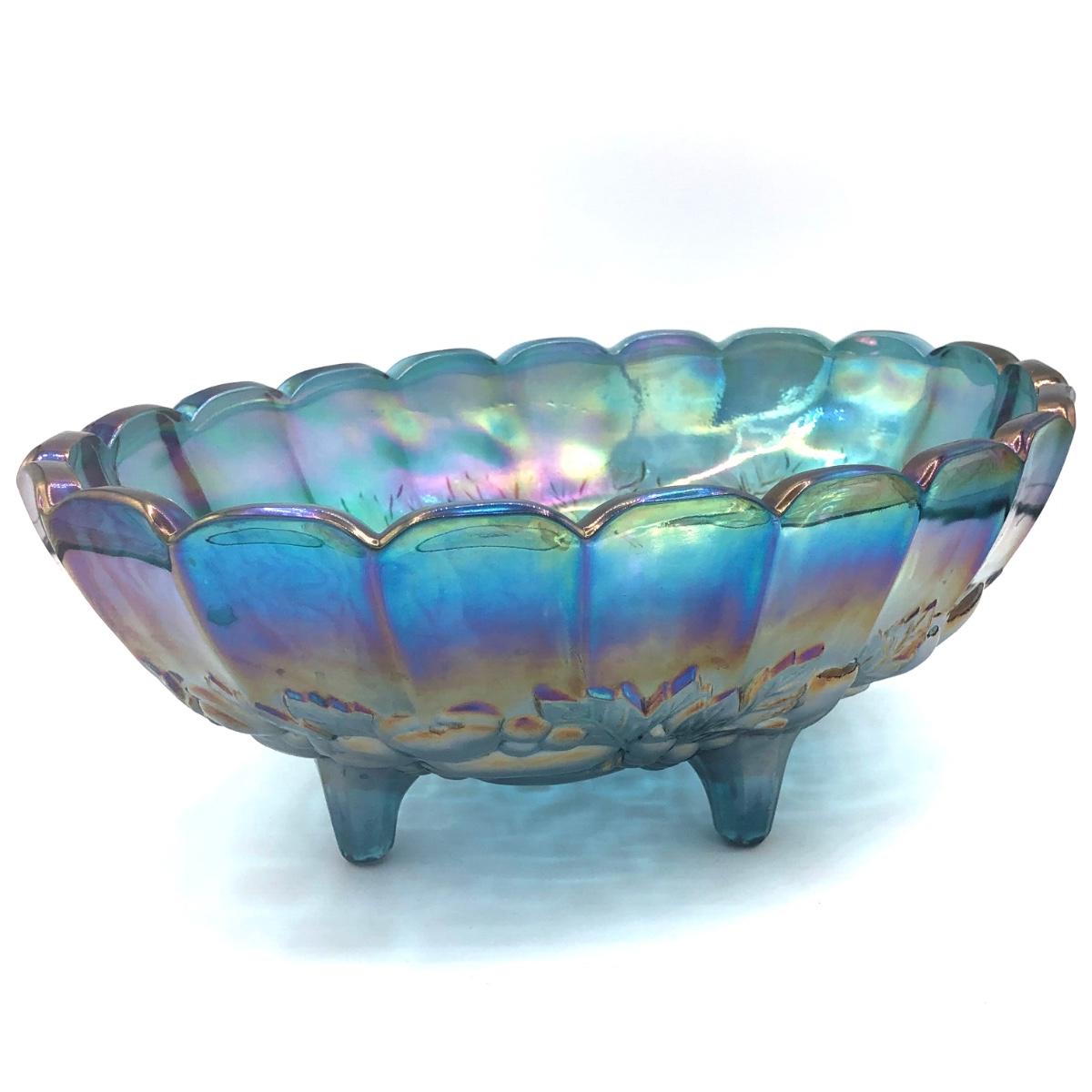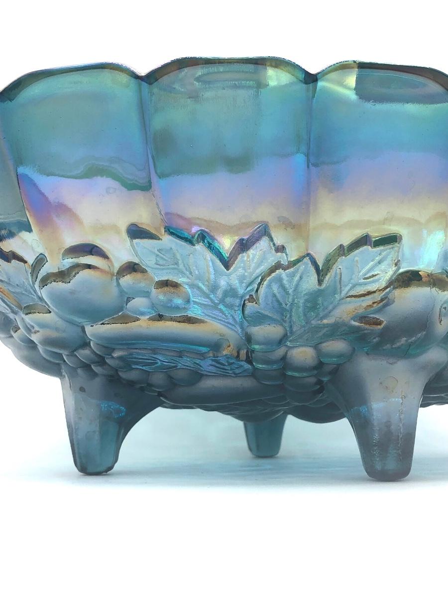 LOT 67K: Vtg. Indiana Glass Harvest Grape Iridescent Blue Carnival Glass Fruit Bowl