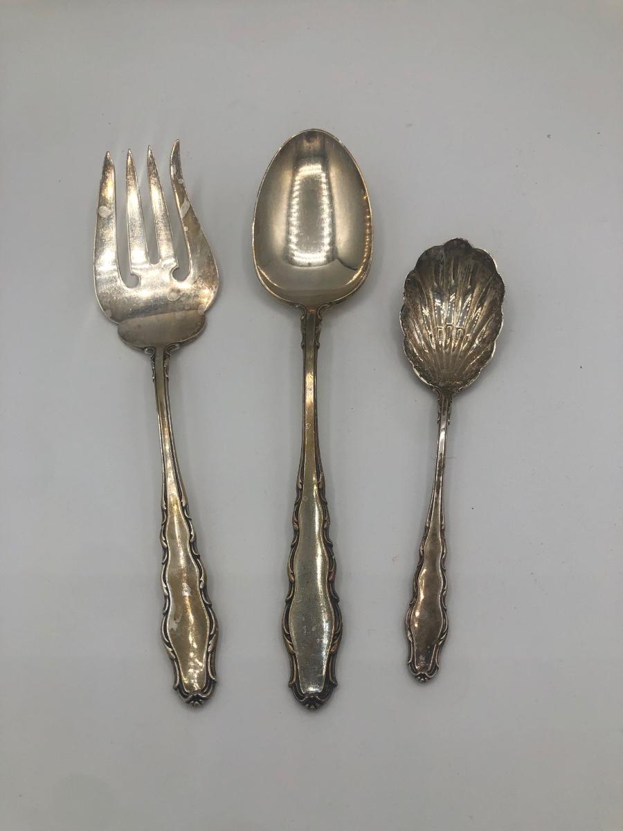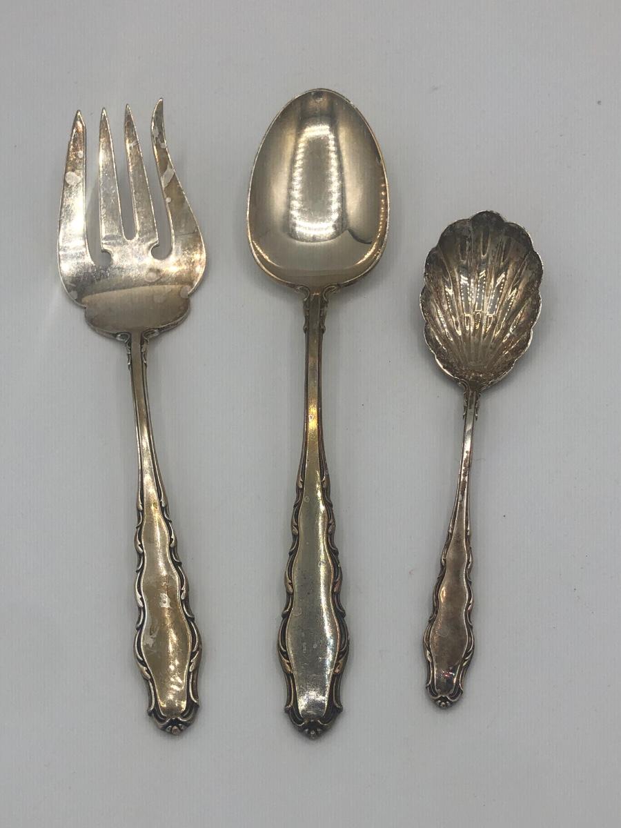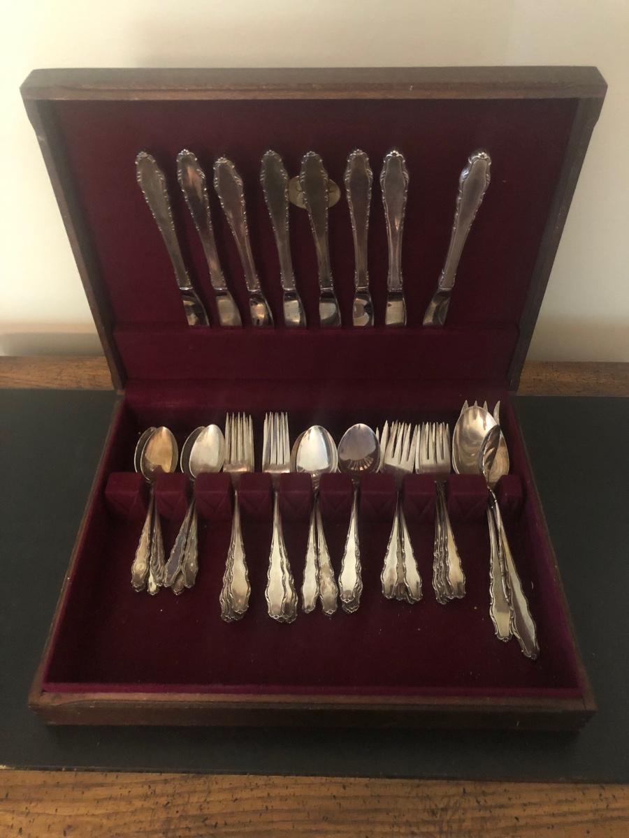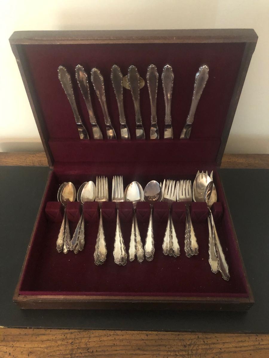 LOT 72L: Vintage Reed & Barton Sterling Silver English Provincial Pattern Silverware Set - 8 Place Settings + Serving Pieces in Tarnish Proof Box (tw: 1,646g)