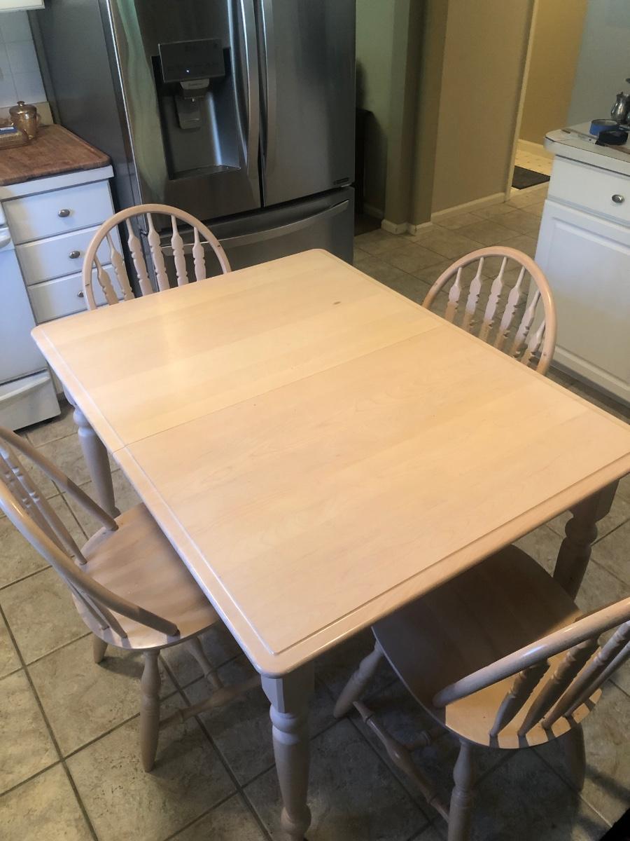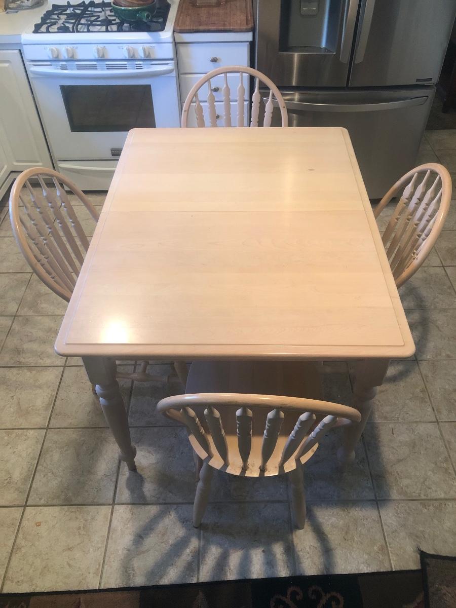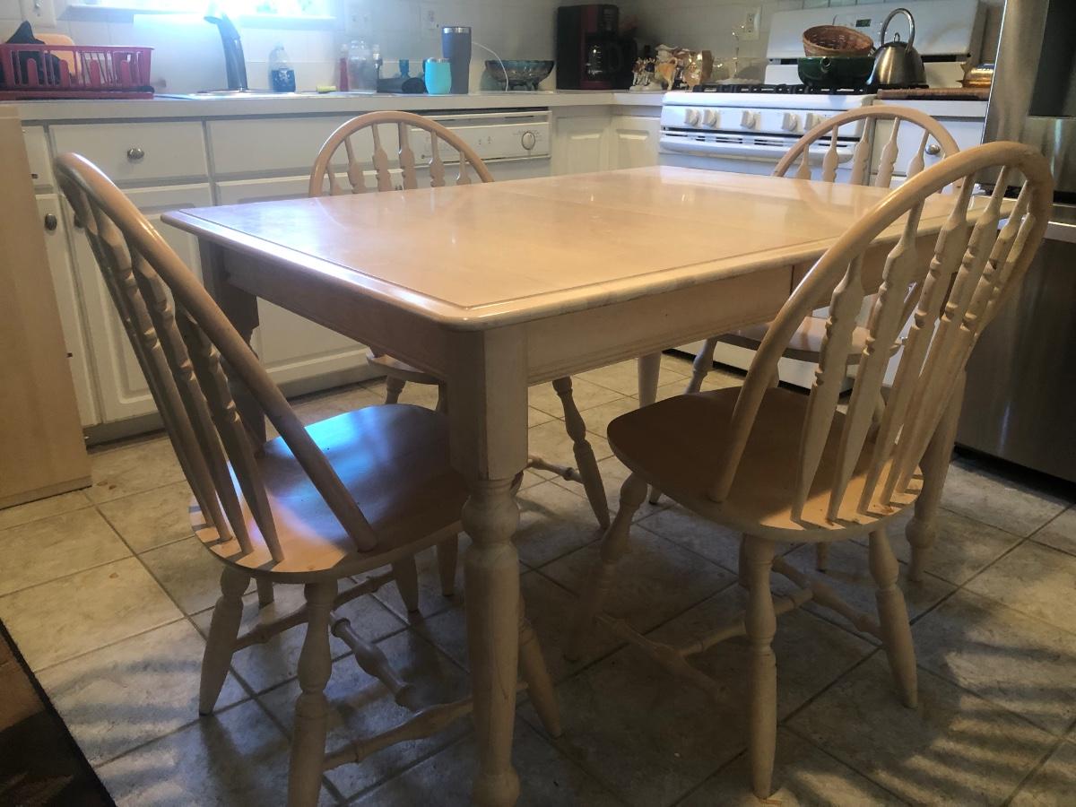 LOT 75K: Light Wood Kitchen Table w/ 12" Leaf & 4 Chairs