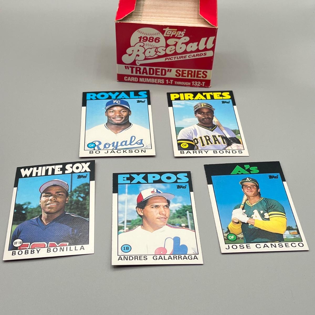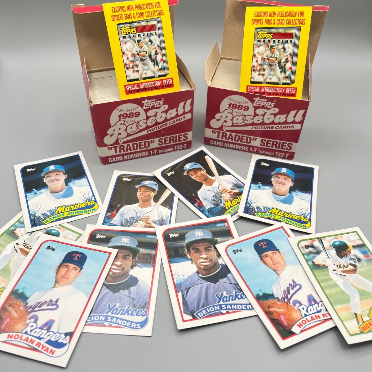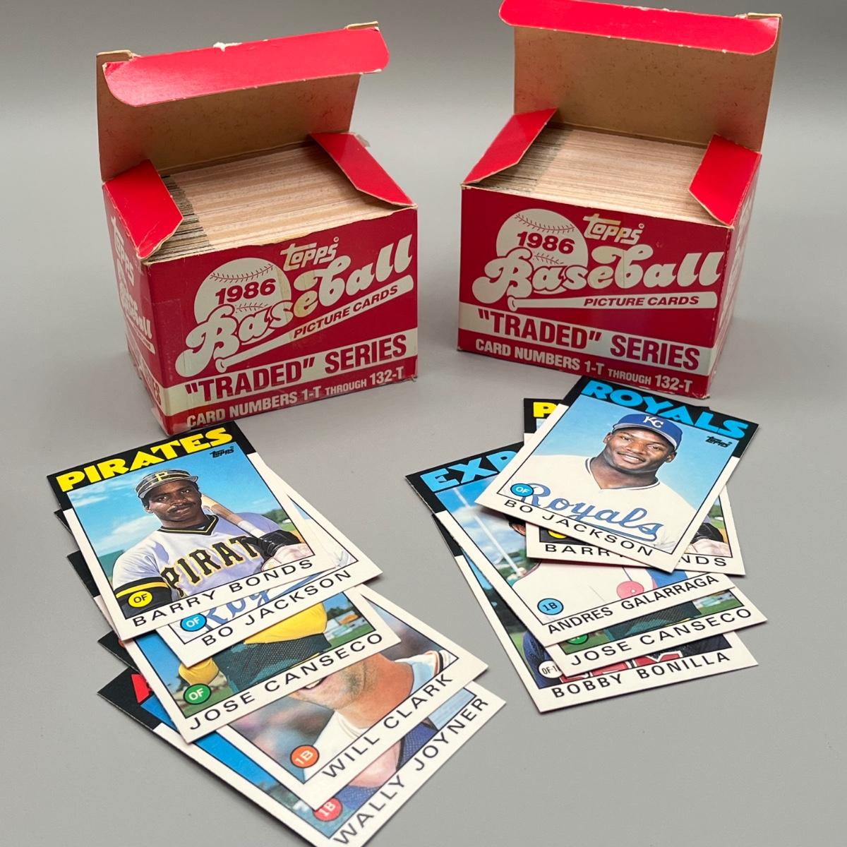 LOT 85W: Topps 1986 & 1989 Traded Sets (2 of Each) w/ Barry Bonds, Bo Jackson, Ken Griffey Jr., Randy Johnson, Deion Sanders Rookie Cards