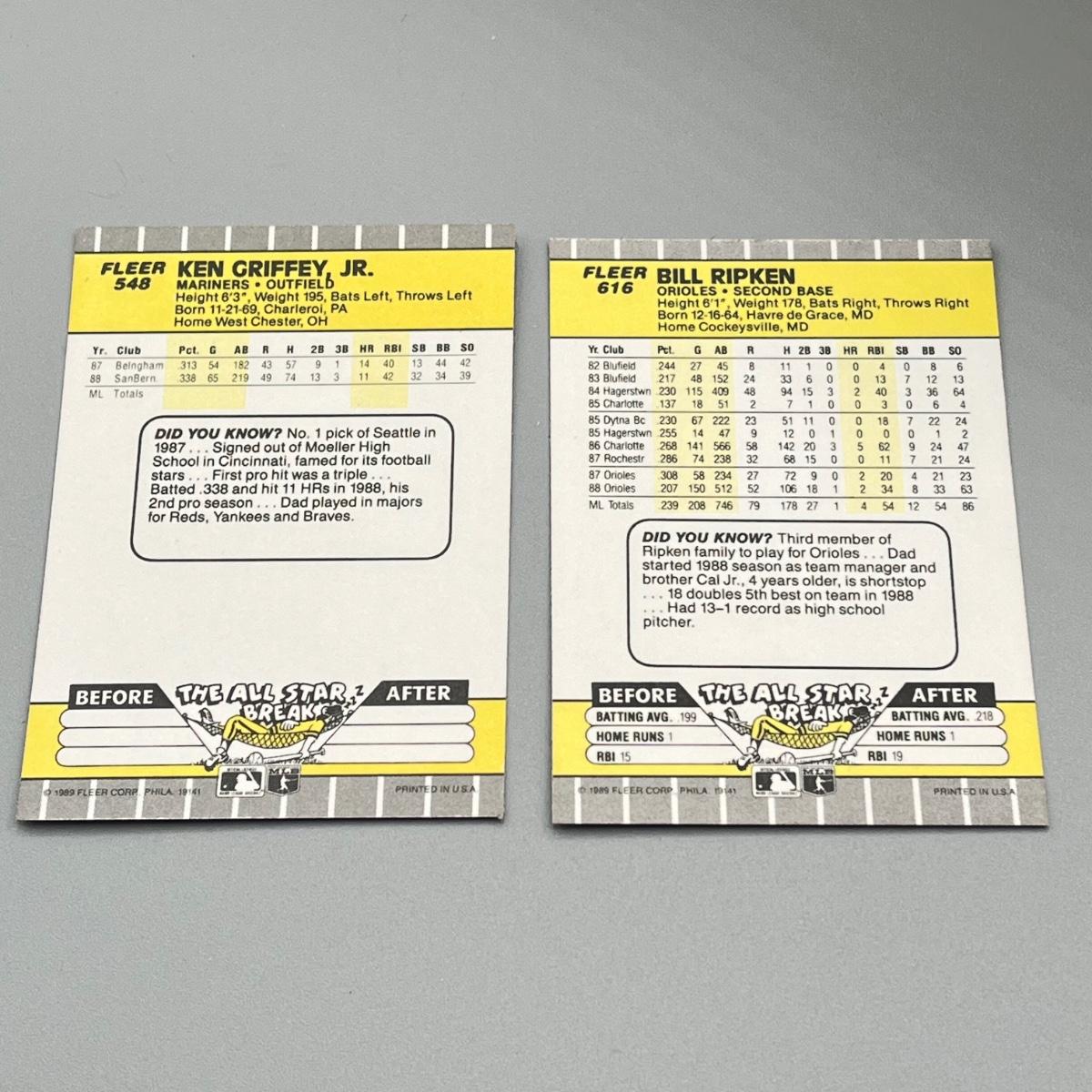LOT 89W: 1988 and '89 Fleer Baseball Card Sets - Bill Ripken FF Blacked Out and Ken Griffey Jr. Rookie + 1989 Update Sets