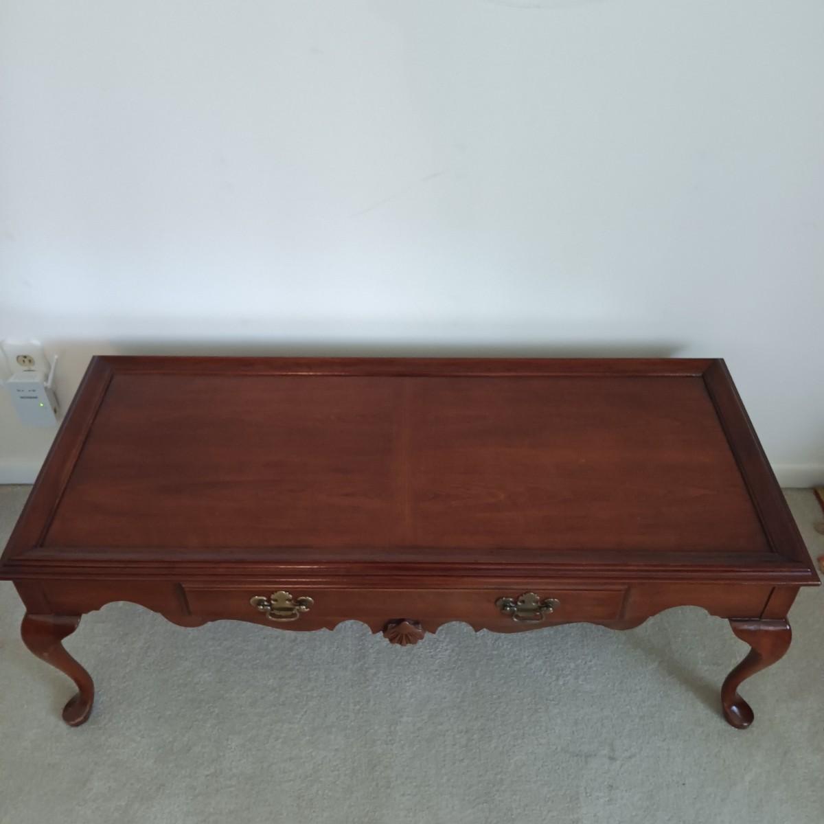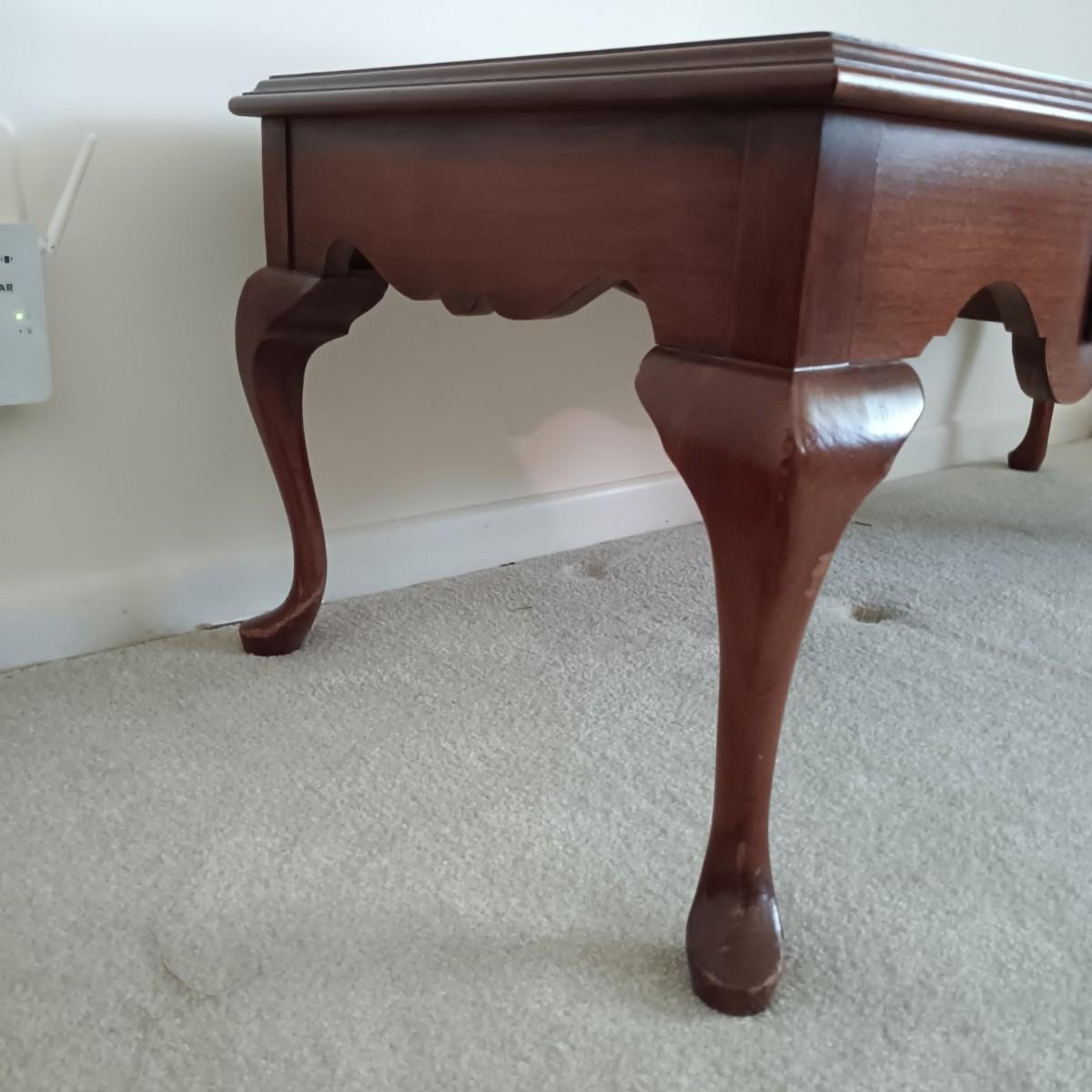 LOT 12: Queen Anne Style Coffee Table w/ J.D. Durand Crystal Vase