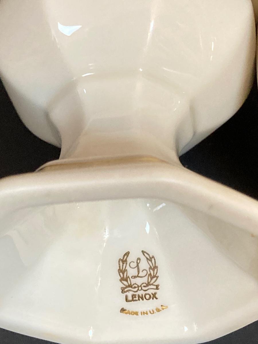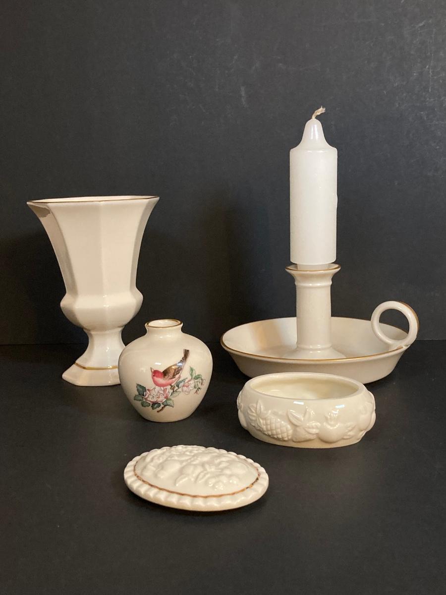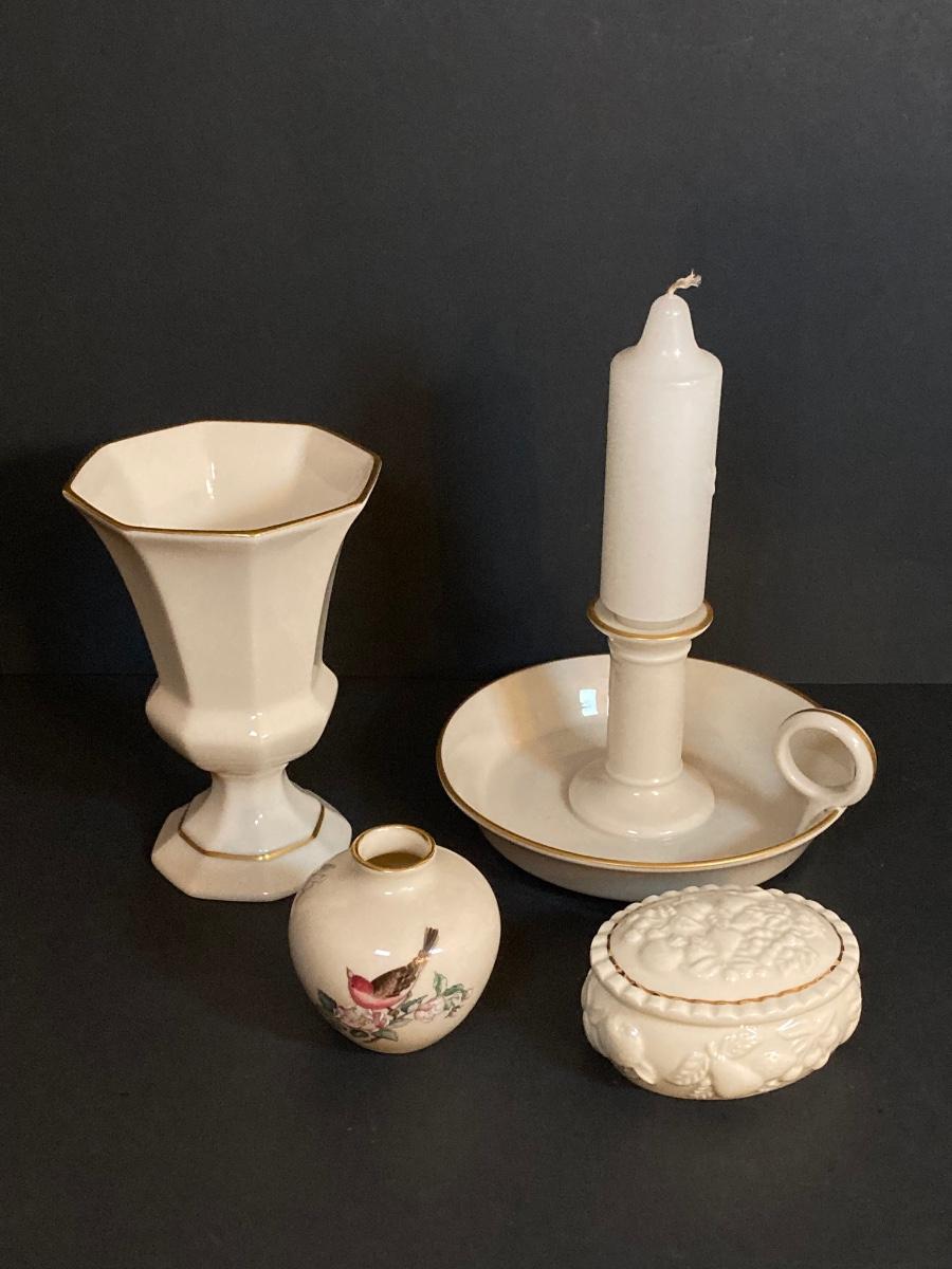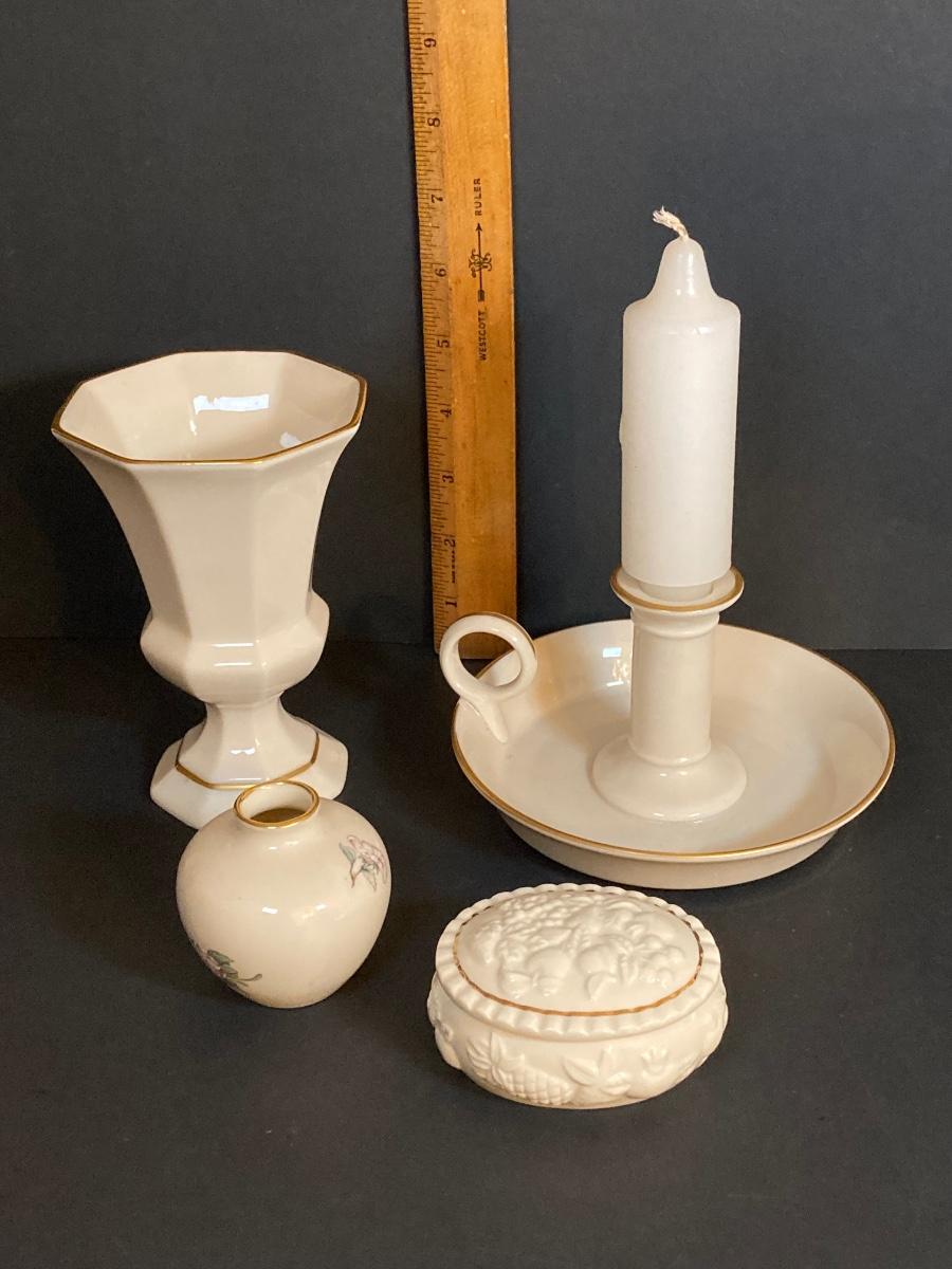 LOT 60D: Collection of Lenox - Candlestick Holder, Vase, Trinket Box and Miniature "Serenade" Vase