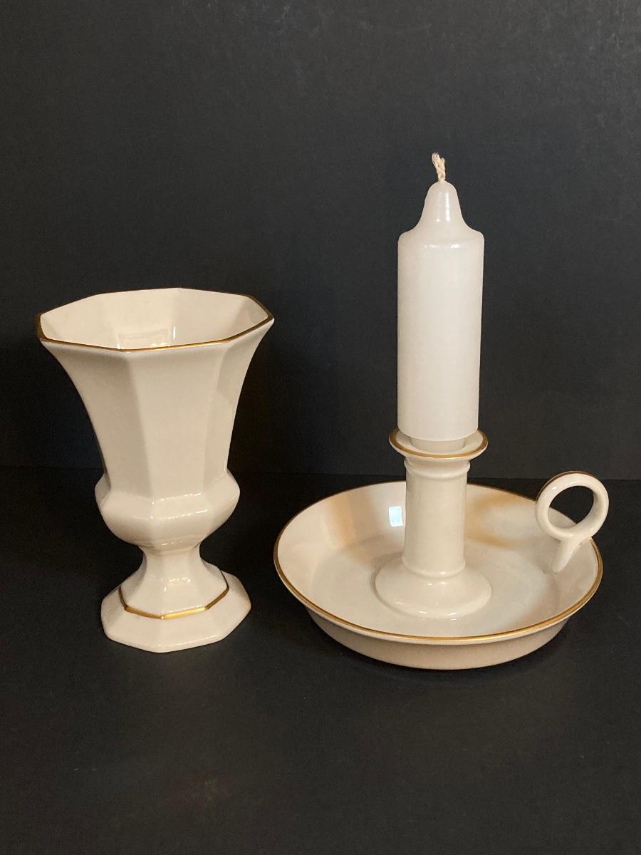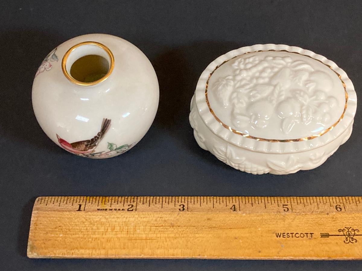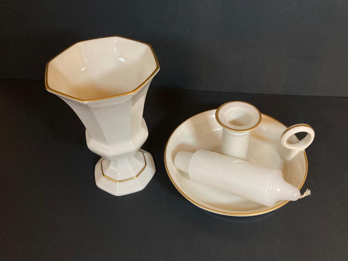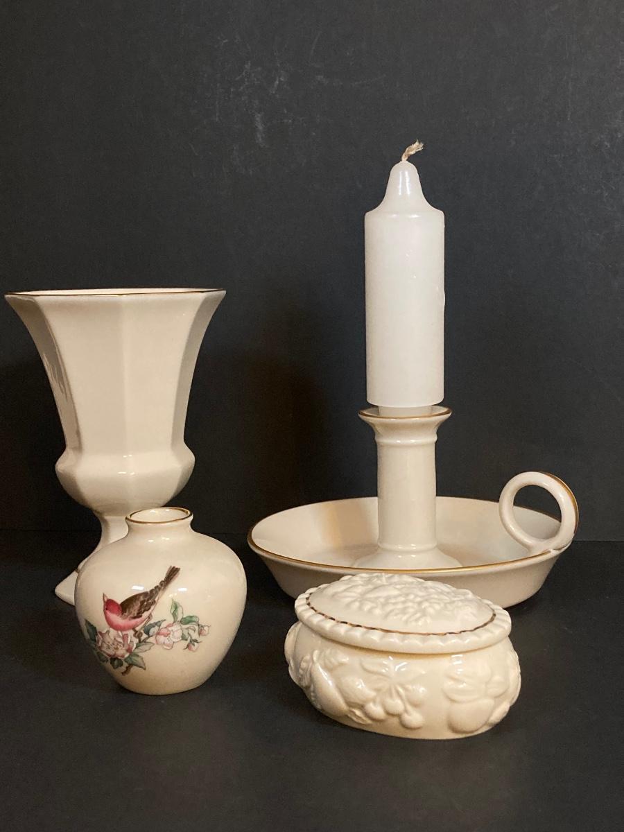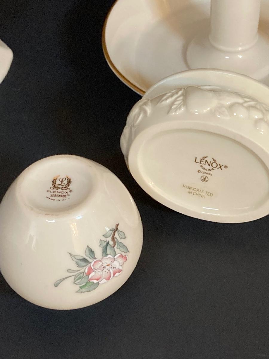 LOT 60D: Collection of Lenox - Candlestick Holder, Vase, Trinket Box and Miniature "Serenade" Vase