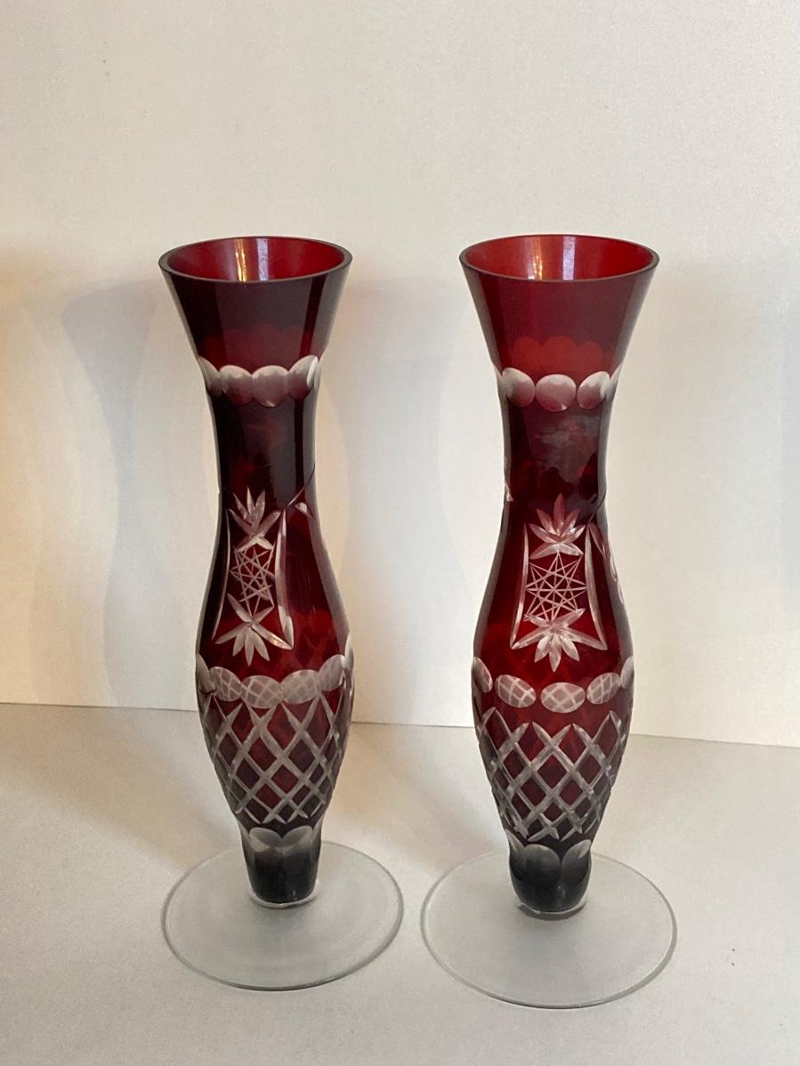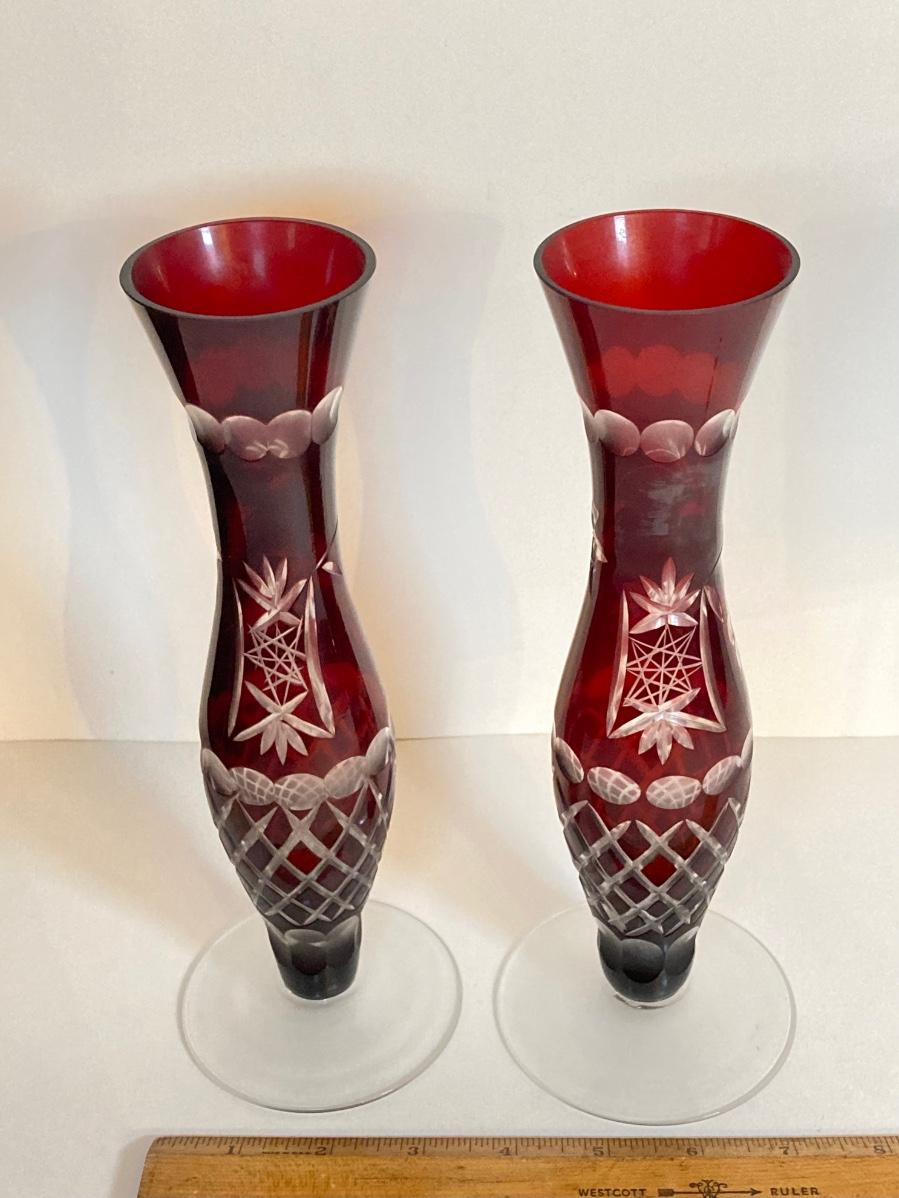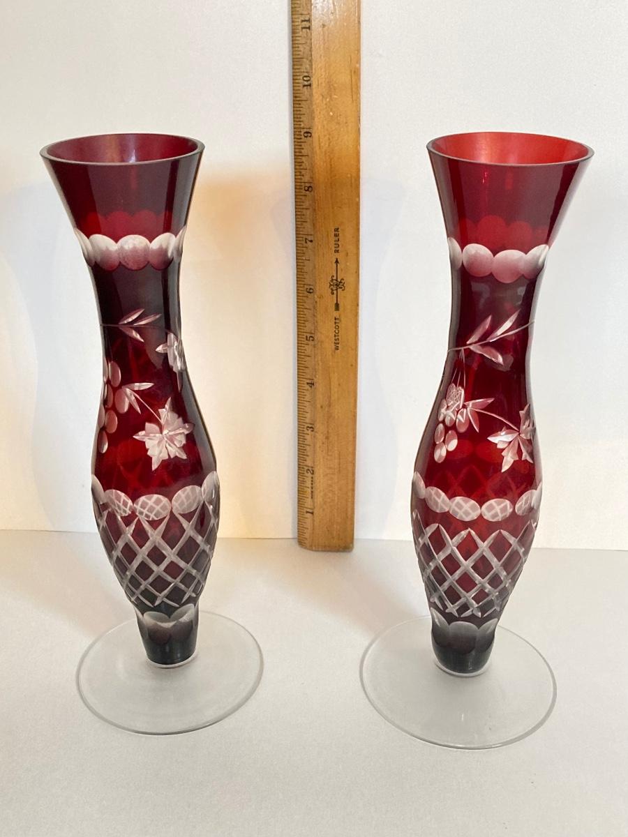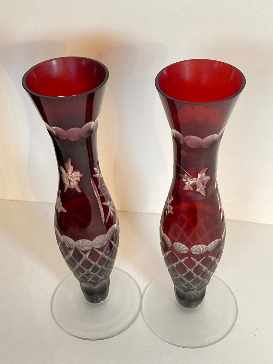 LOT 61D: Pair of Ruby Red Cut to Clear Vases