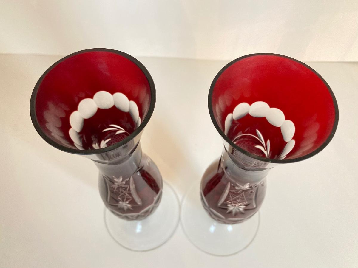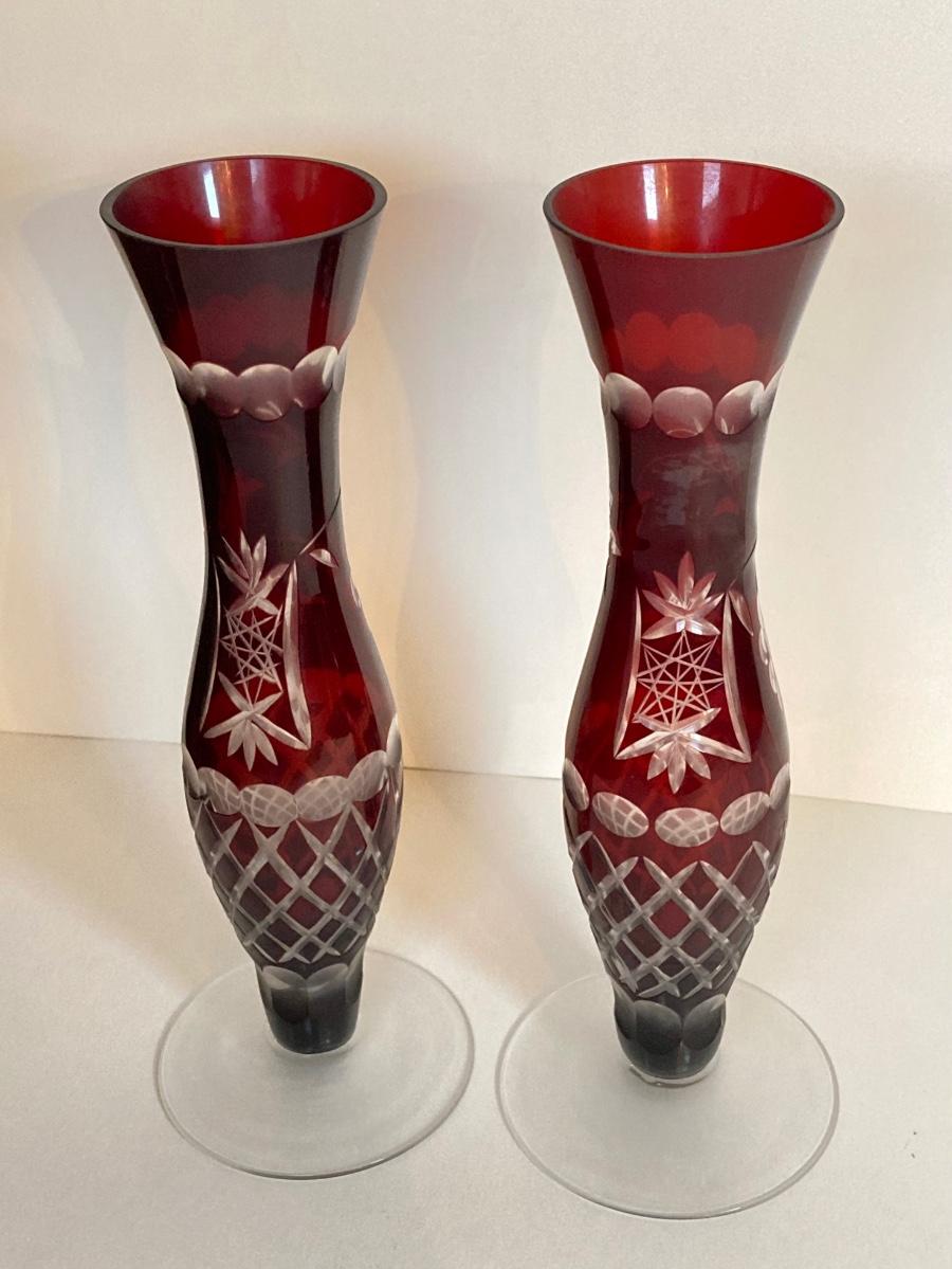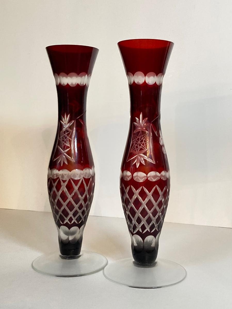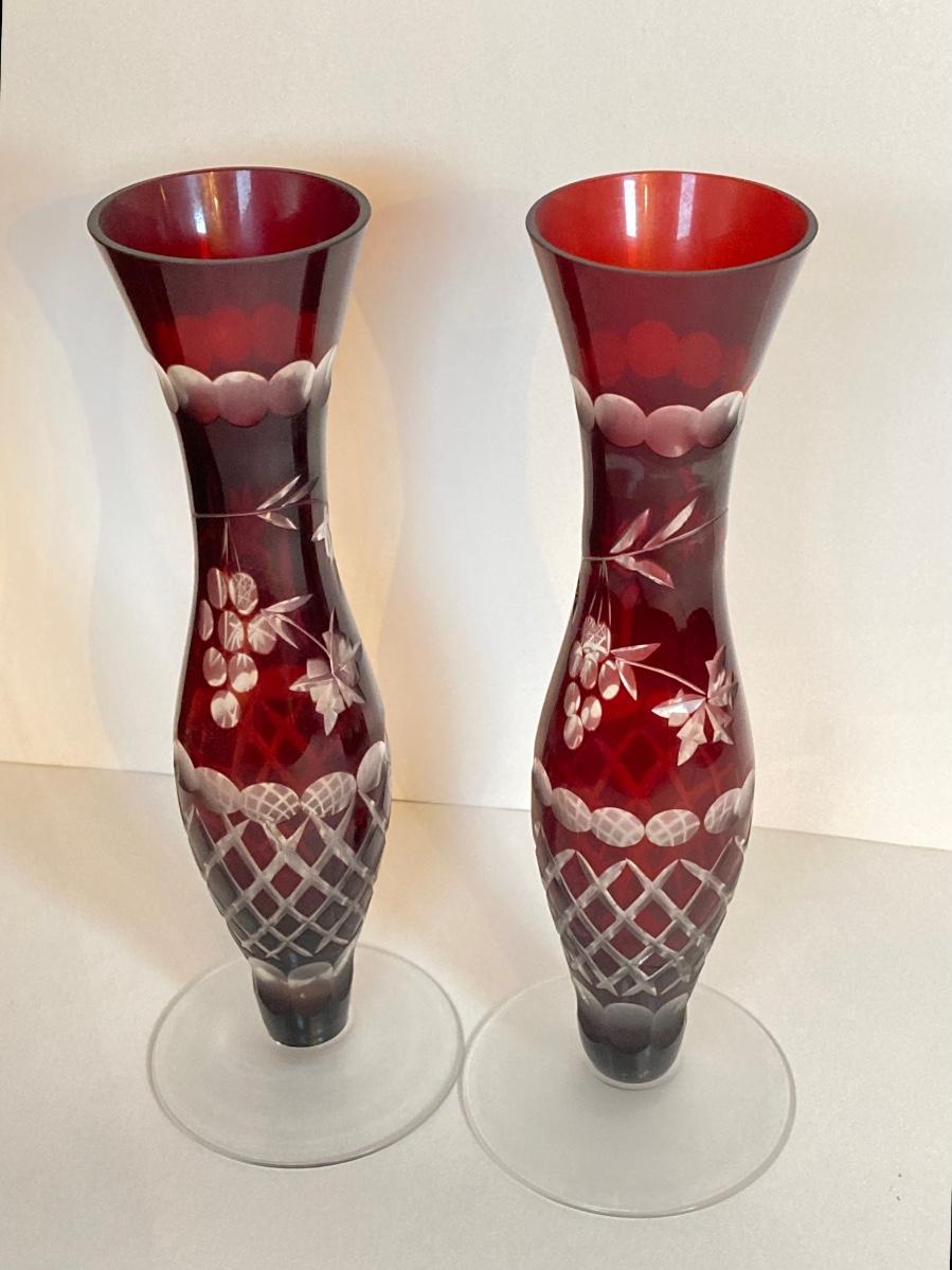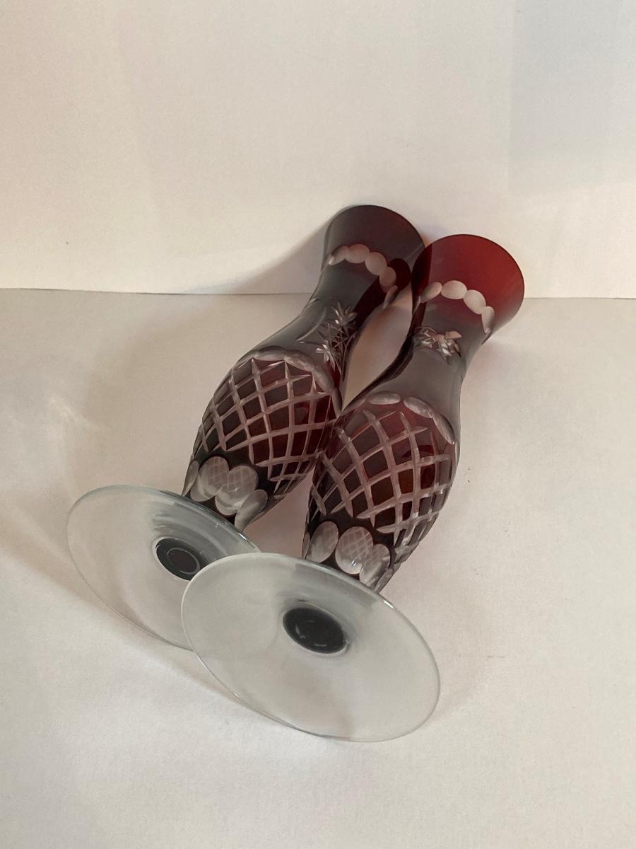 LOT 61D: Pair of Ruby Red Cut to Clear Vases