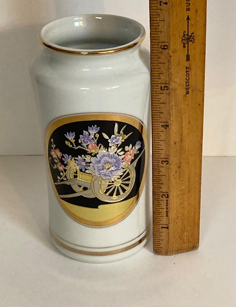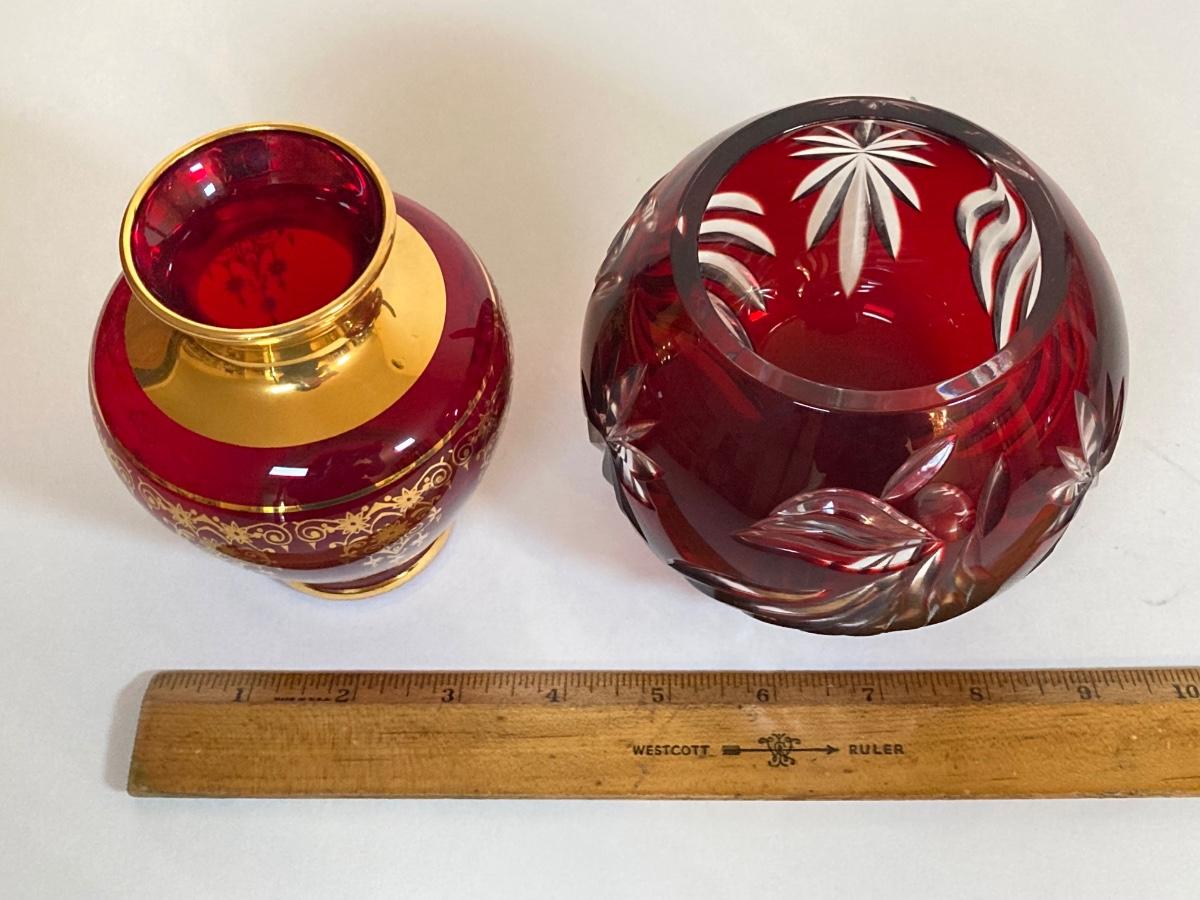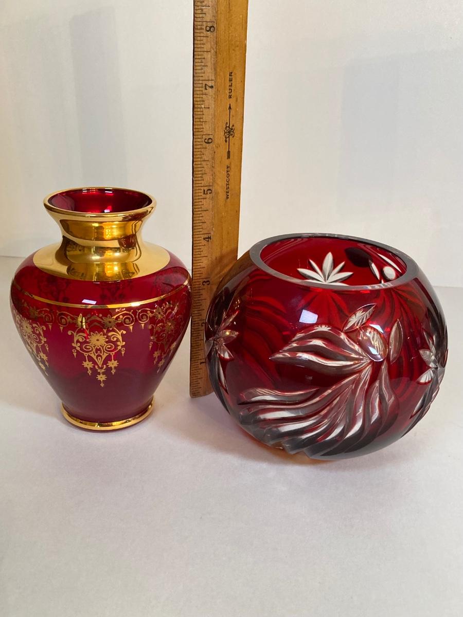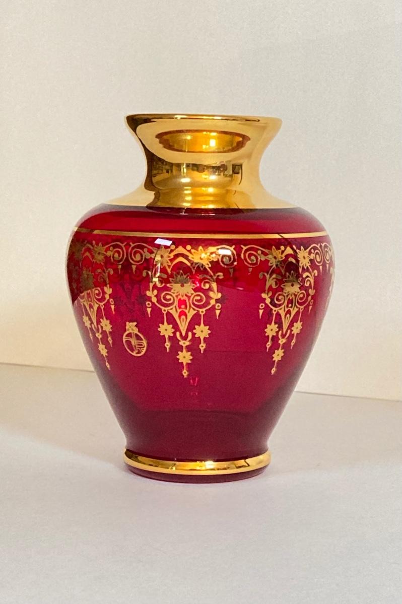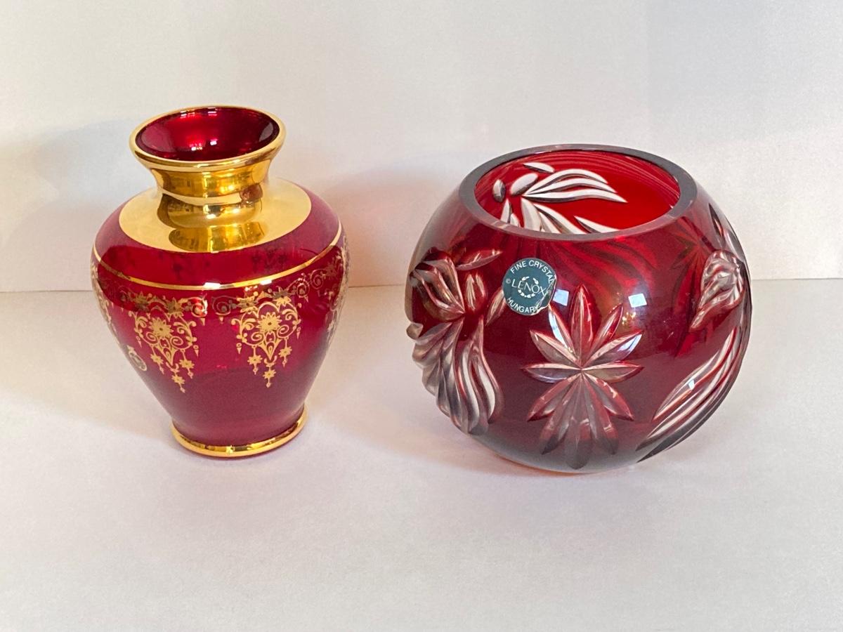 LOT 63D: Stunning Vetreria d’Arte Murano Glass Red with 24k Gold Vase, Lenox Crystal Angel Candle holder, Pilgrim Cranberry Glass Vase & Art of Chokin Japanese Porcelain Vase