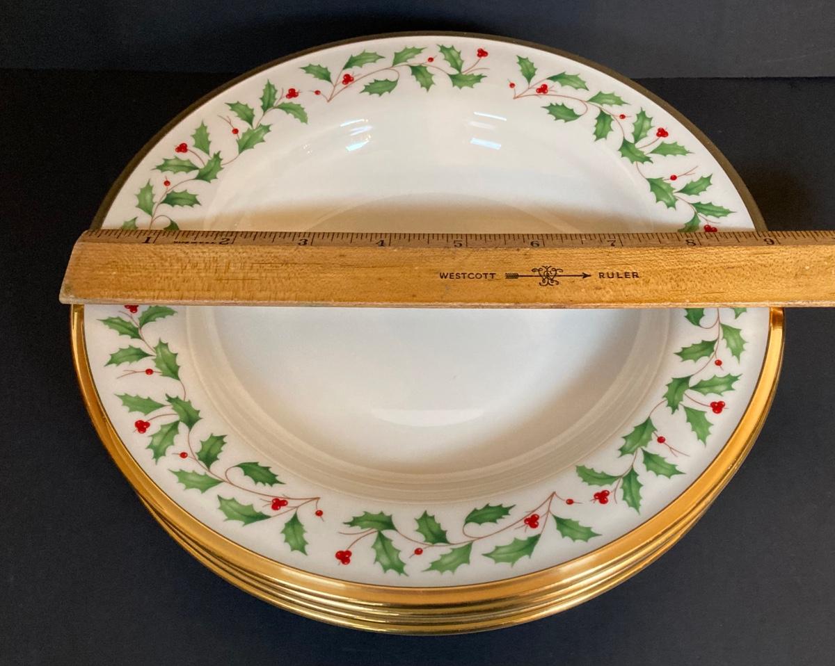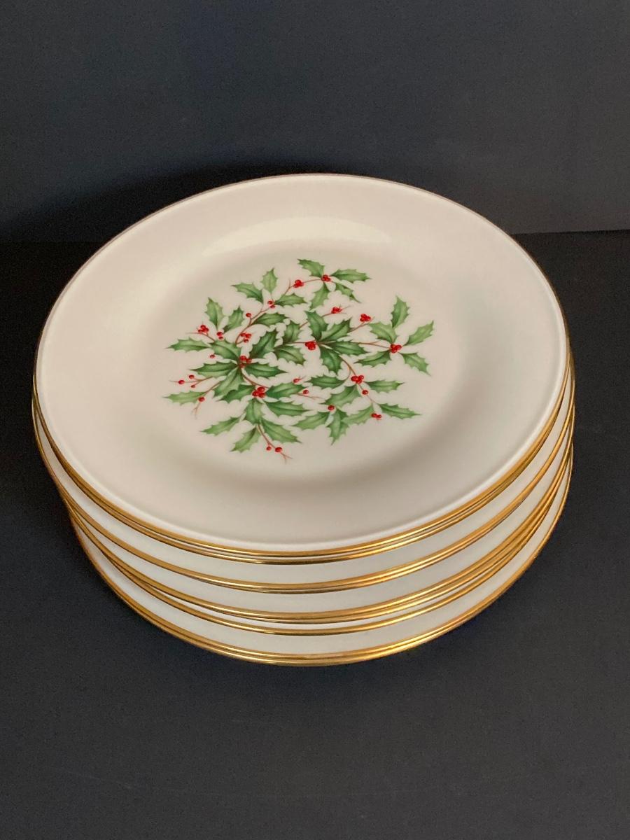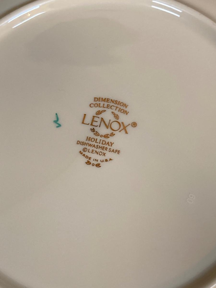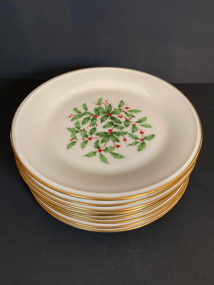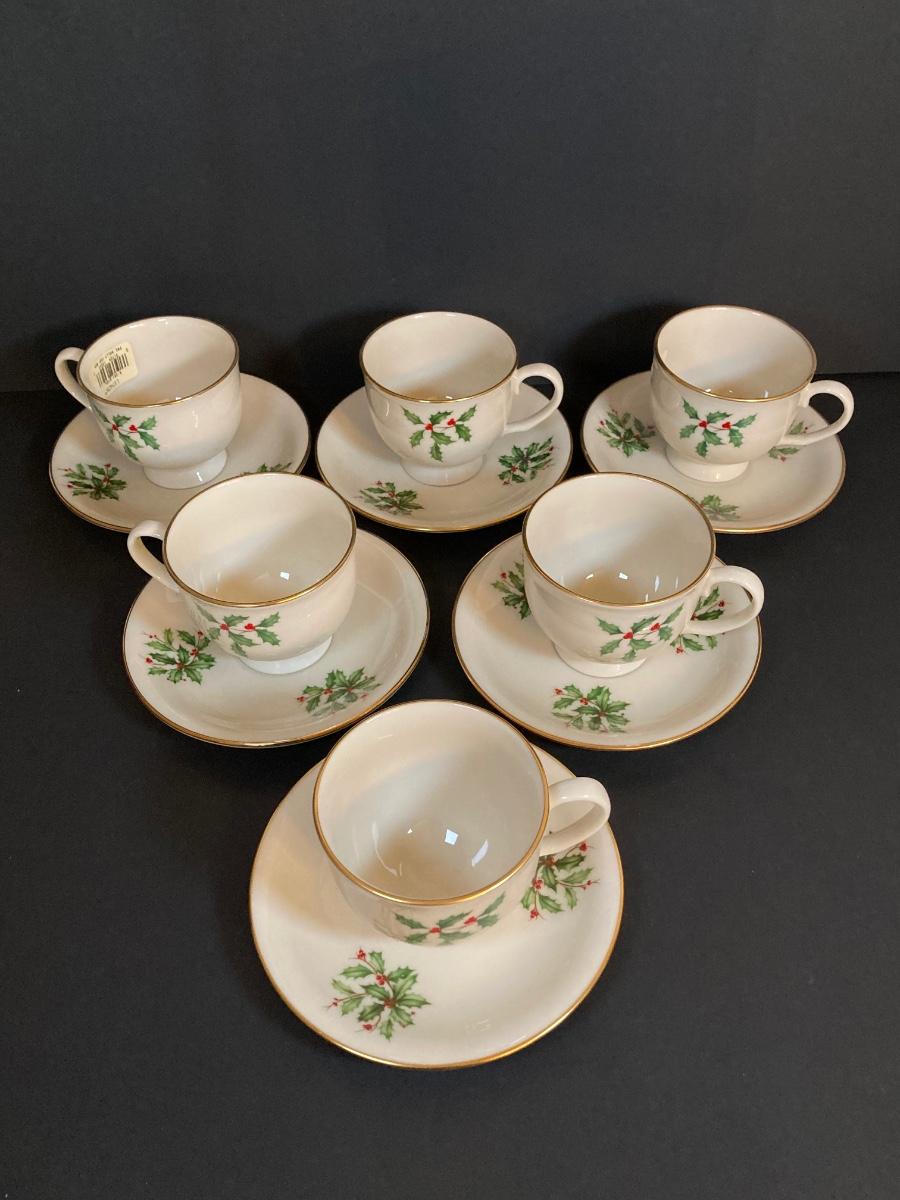 LOT 64D: Lenox Holiday Dinnerware - Holly Cups and Saucers, Dinner Plates, Bowls and Dessert / Salad Plates