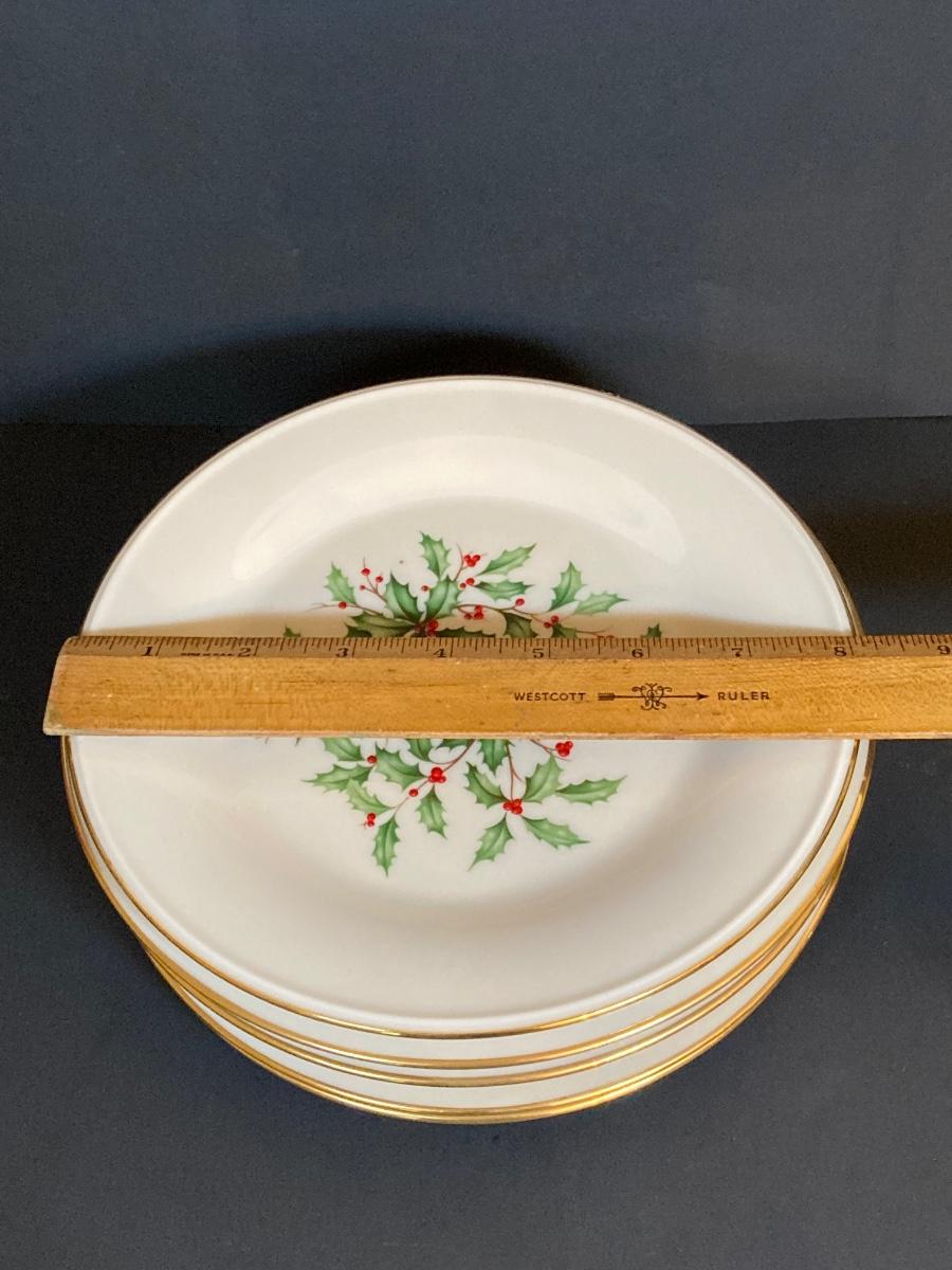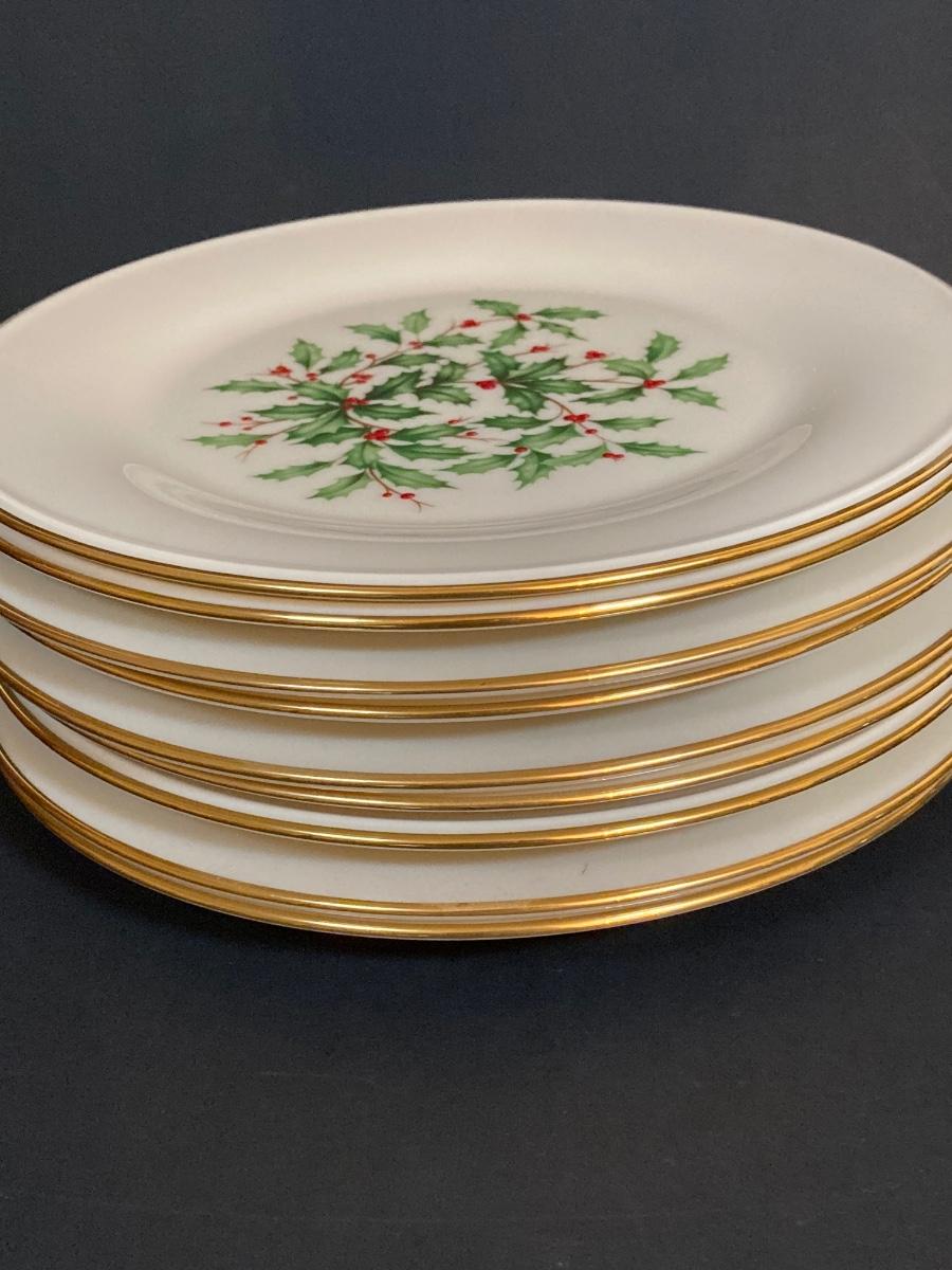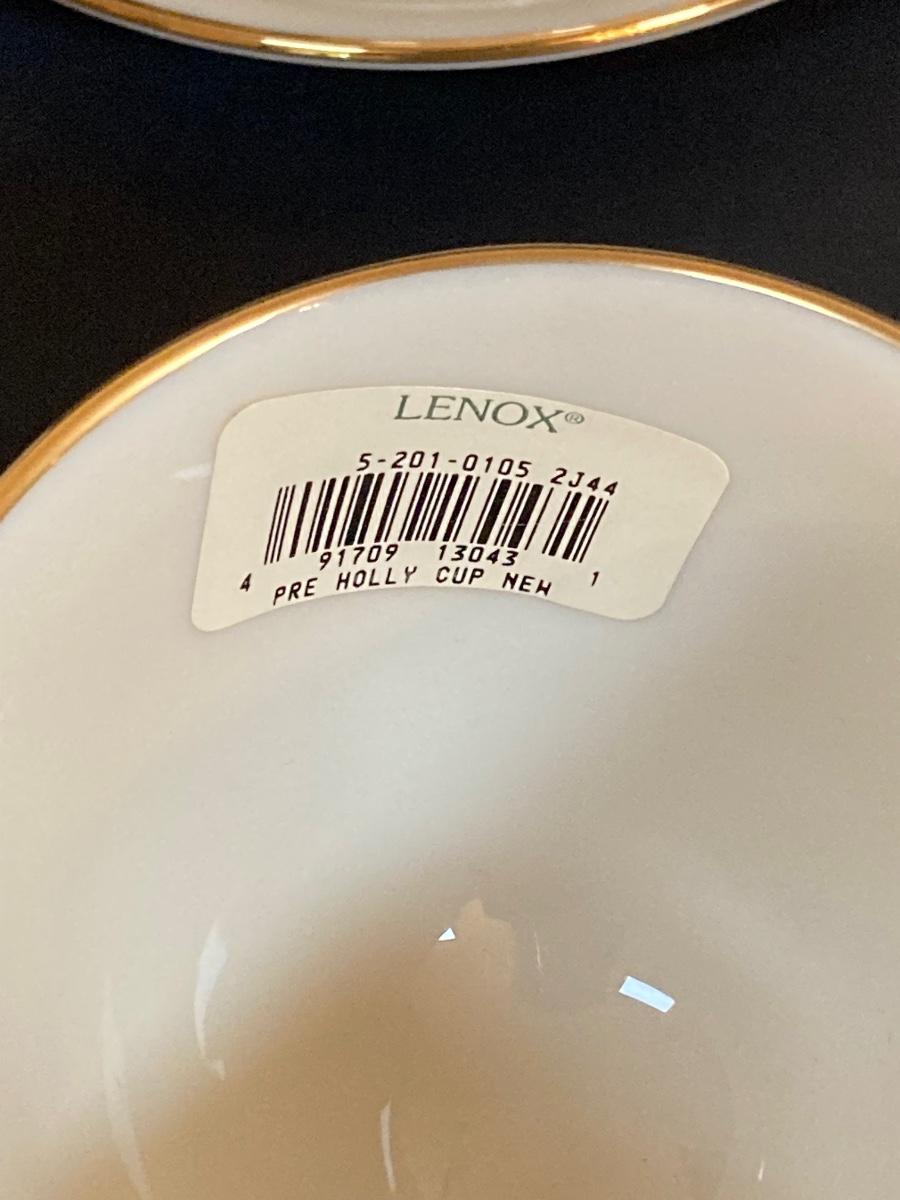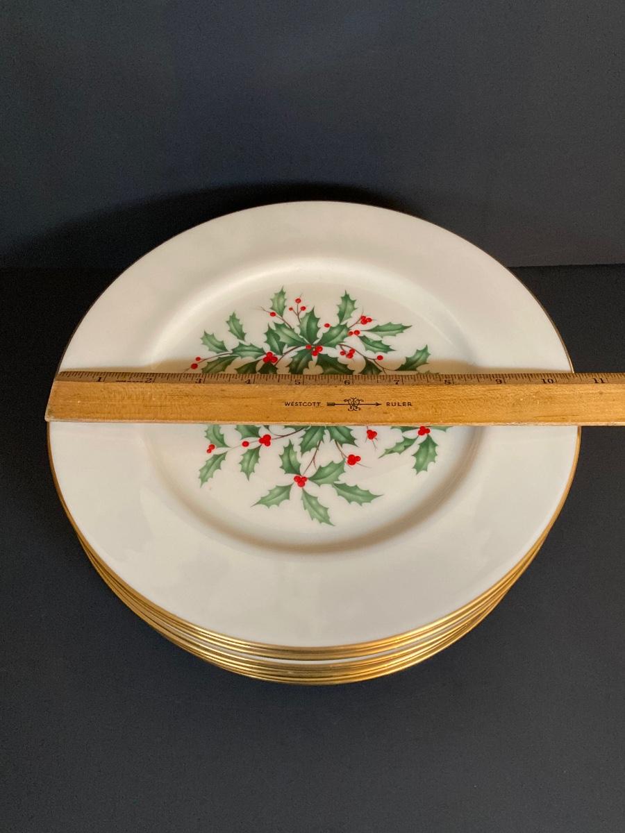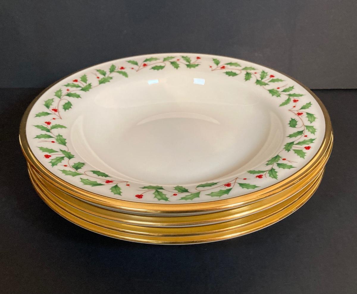 LOT 64D: Lenox Holiday Dinnerware - Holly Cups and Saucers, Dinner Plates, Bowls and Dessert / Salad Plates