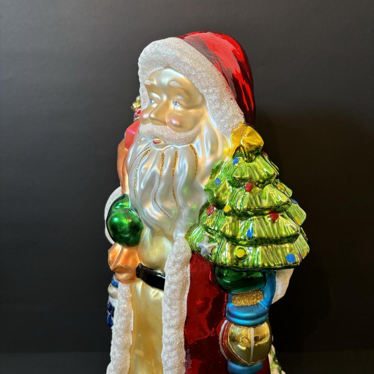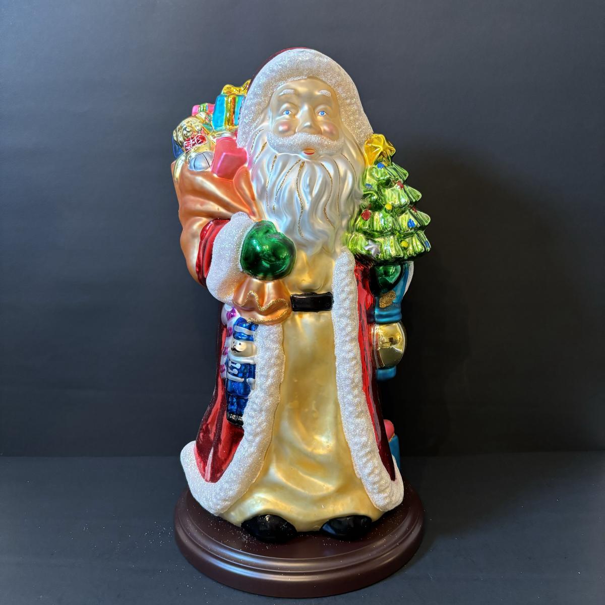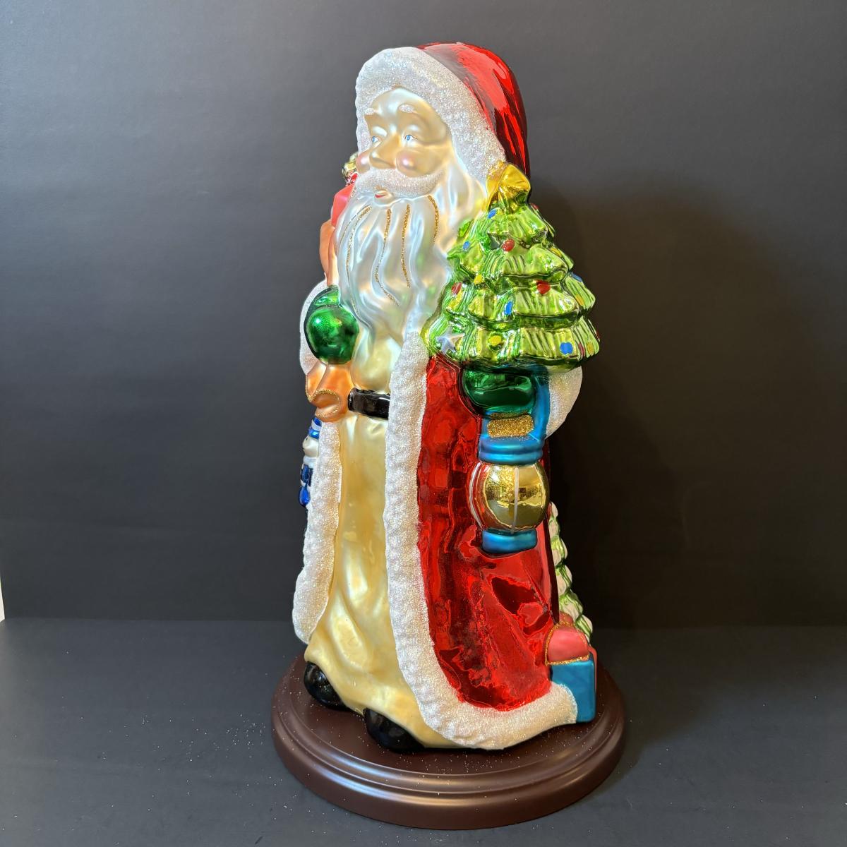 LOT 97: 2003 Thomas Pacconi Classics Large 16" Blown Glass Santa Claus Figure Wood Base