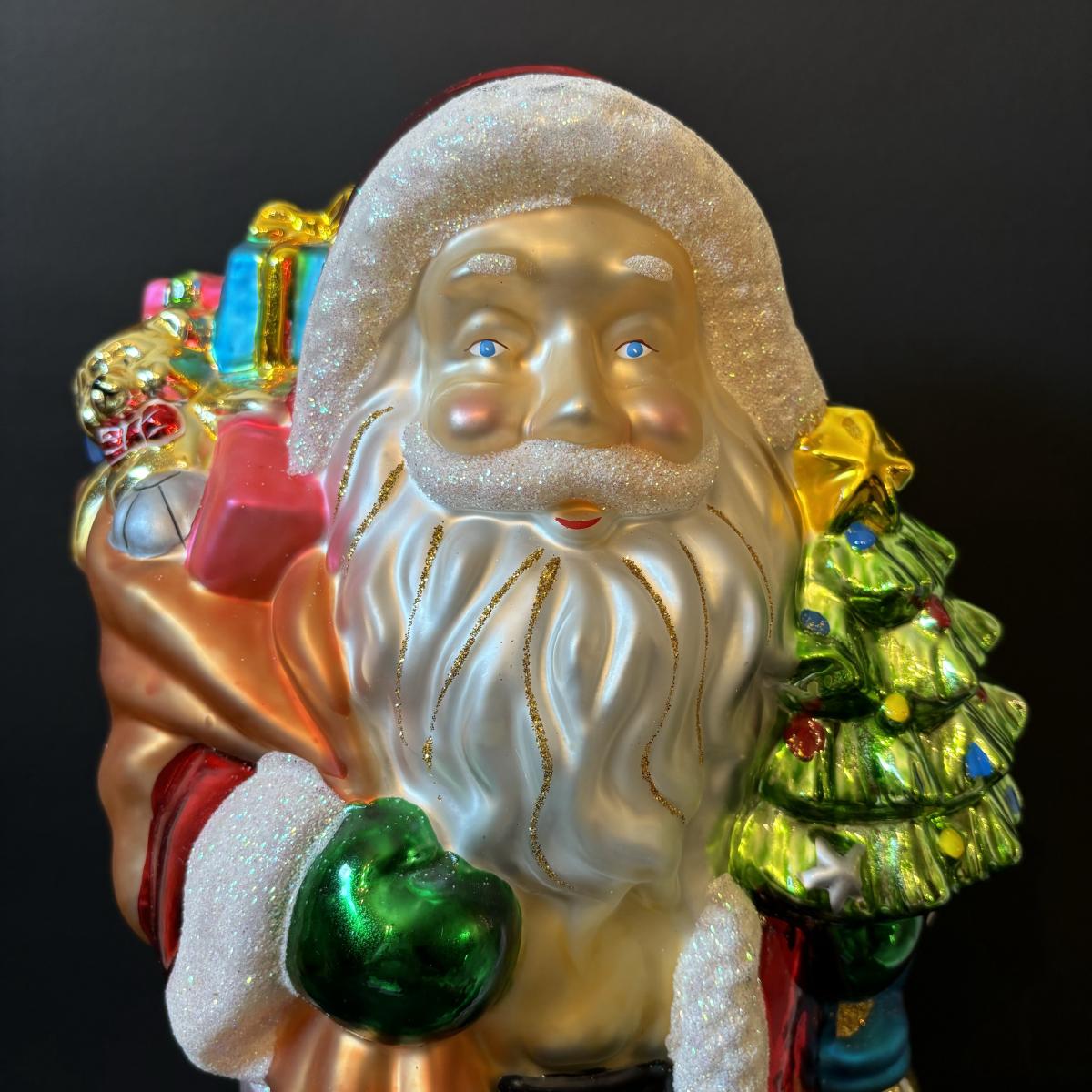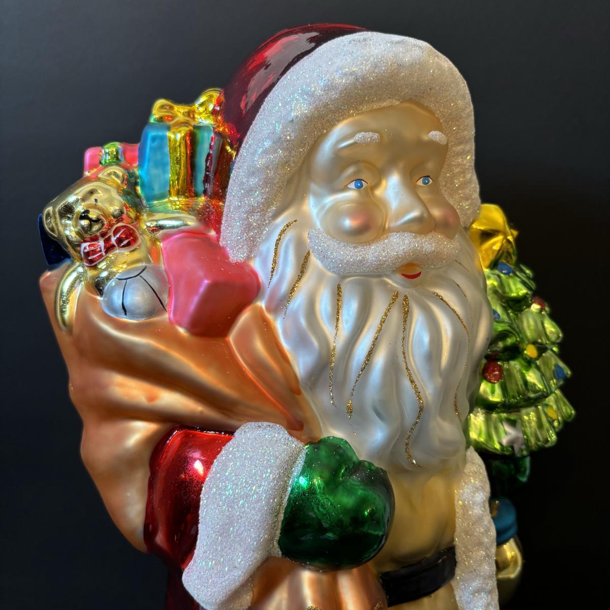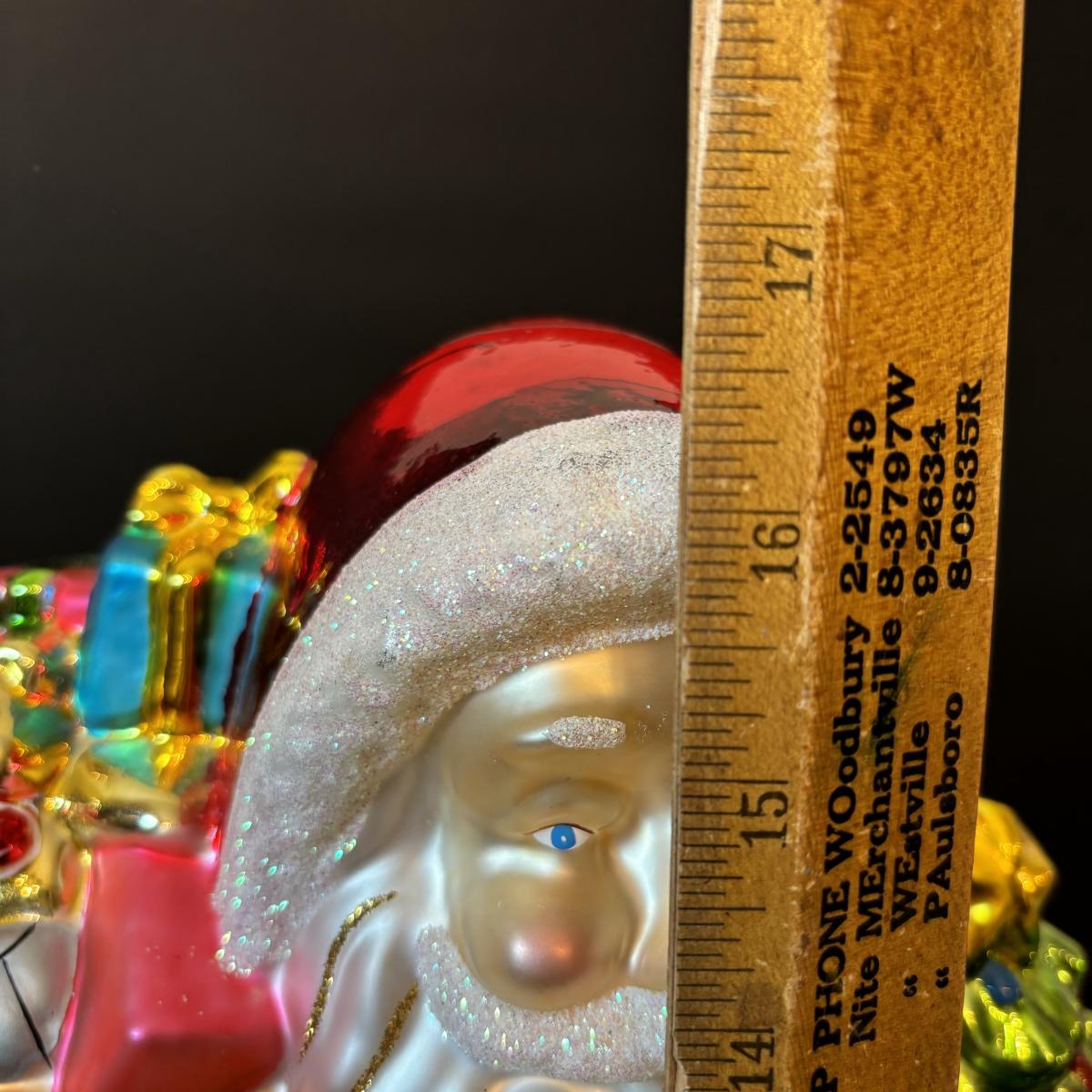 LOT 97: 2003 Thomas Pacconi Classics Large 16" Blown Glass Santa Claus Figure Wood Base