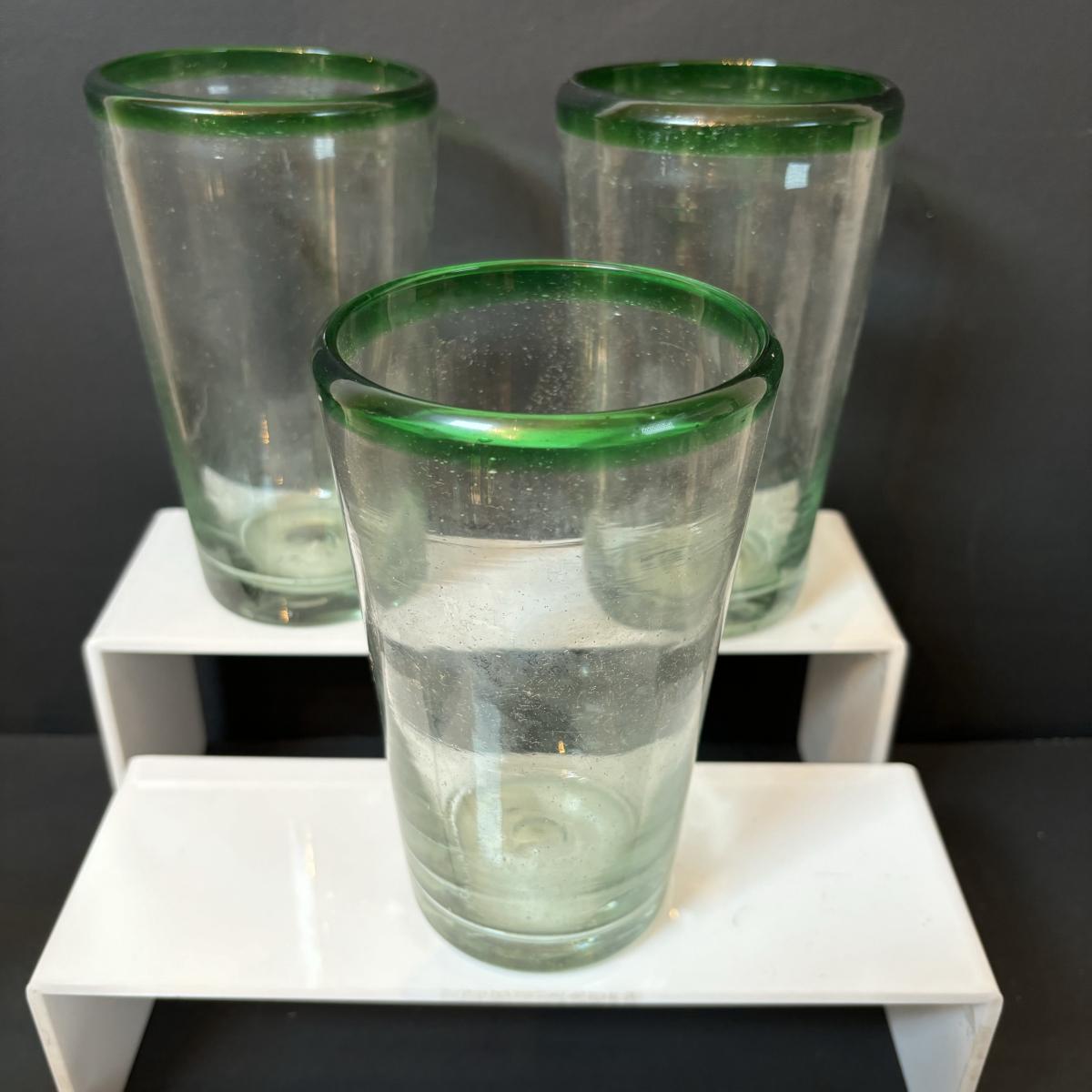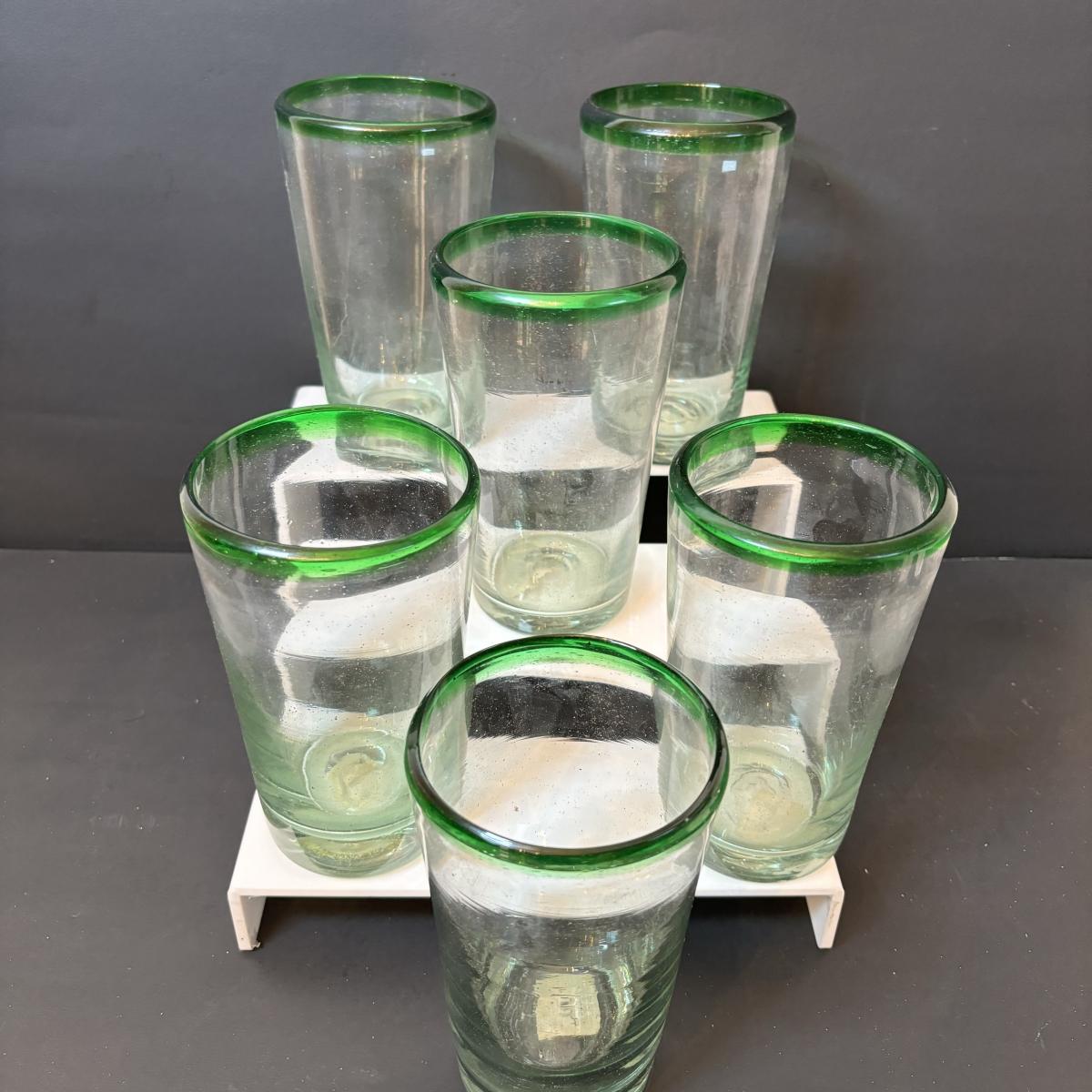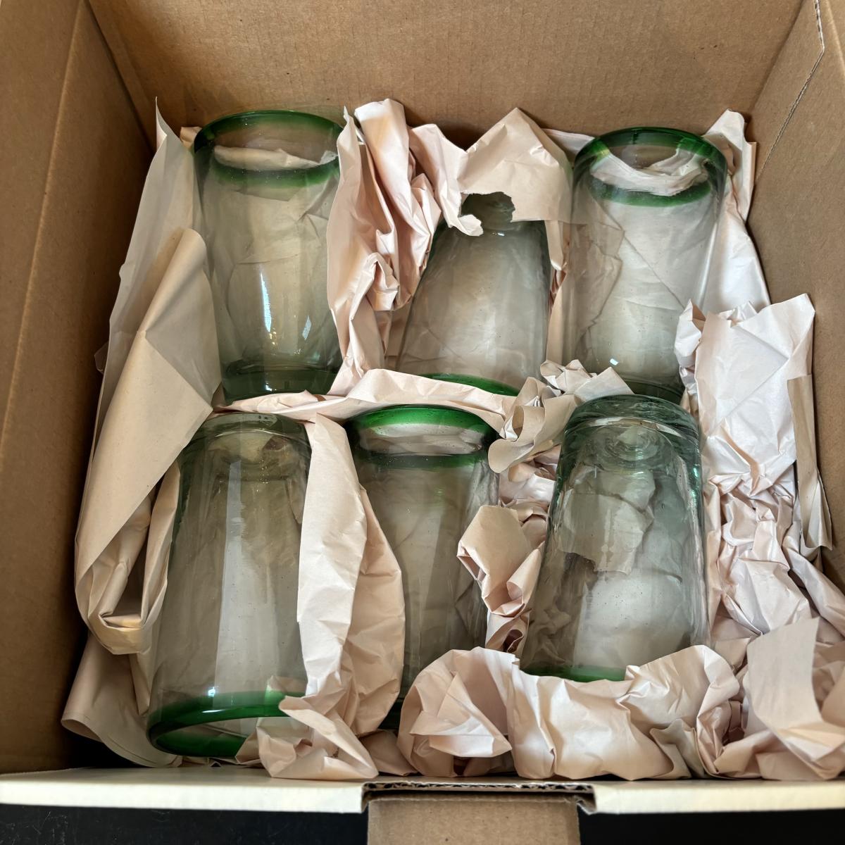 LOT 127: Pottery Barn Baja Hand-Blown, Kelly-Green Glassware, Set of 6