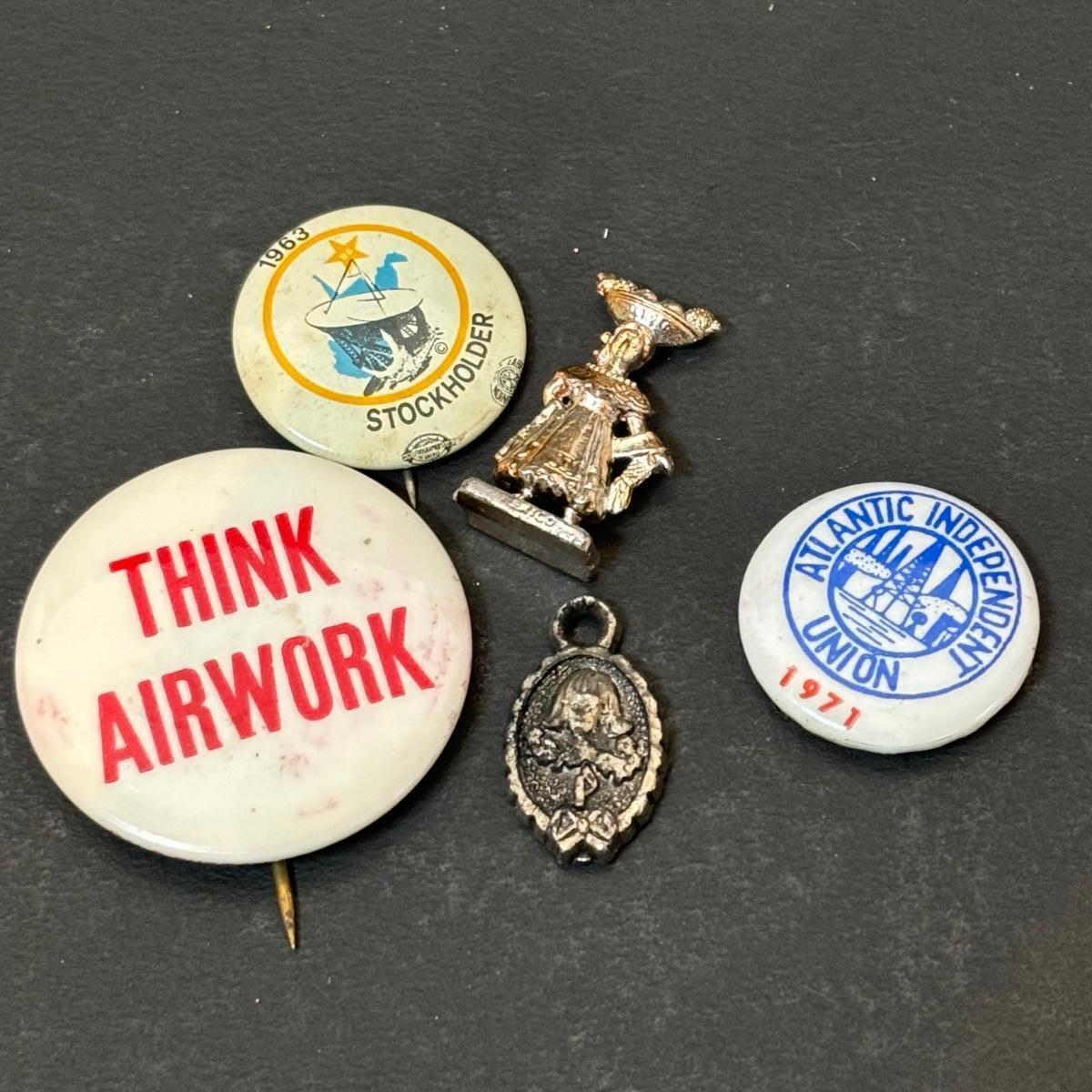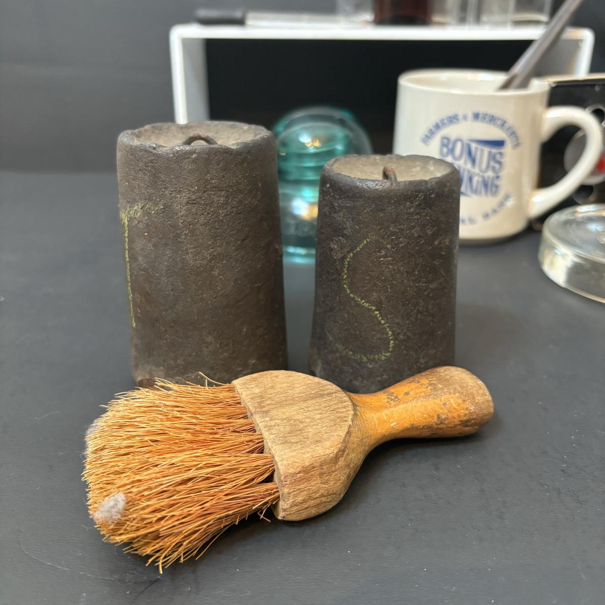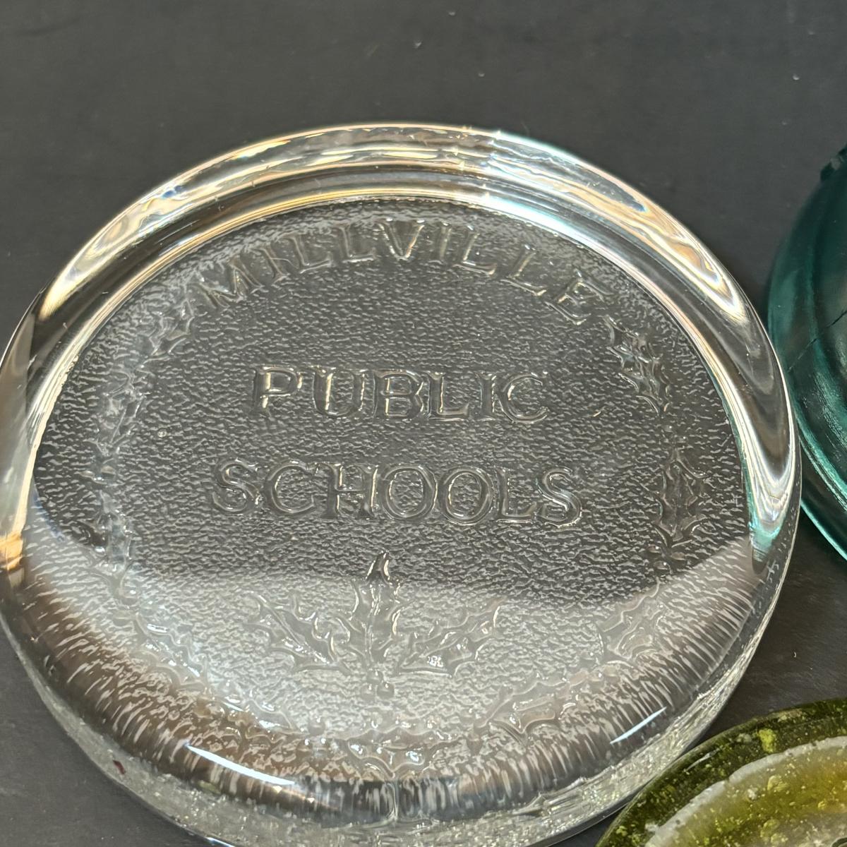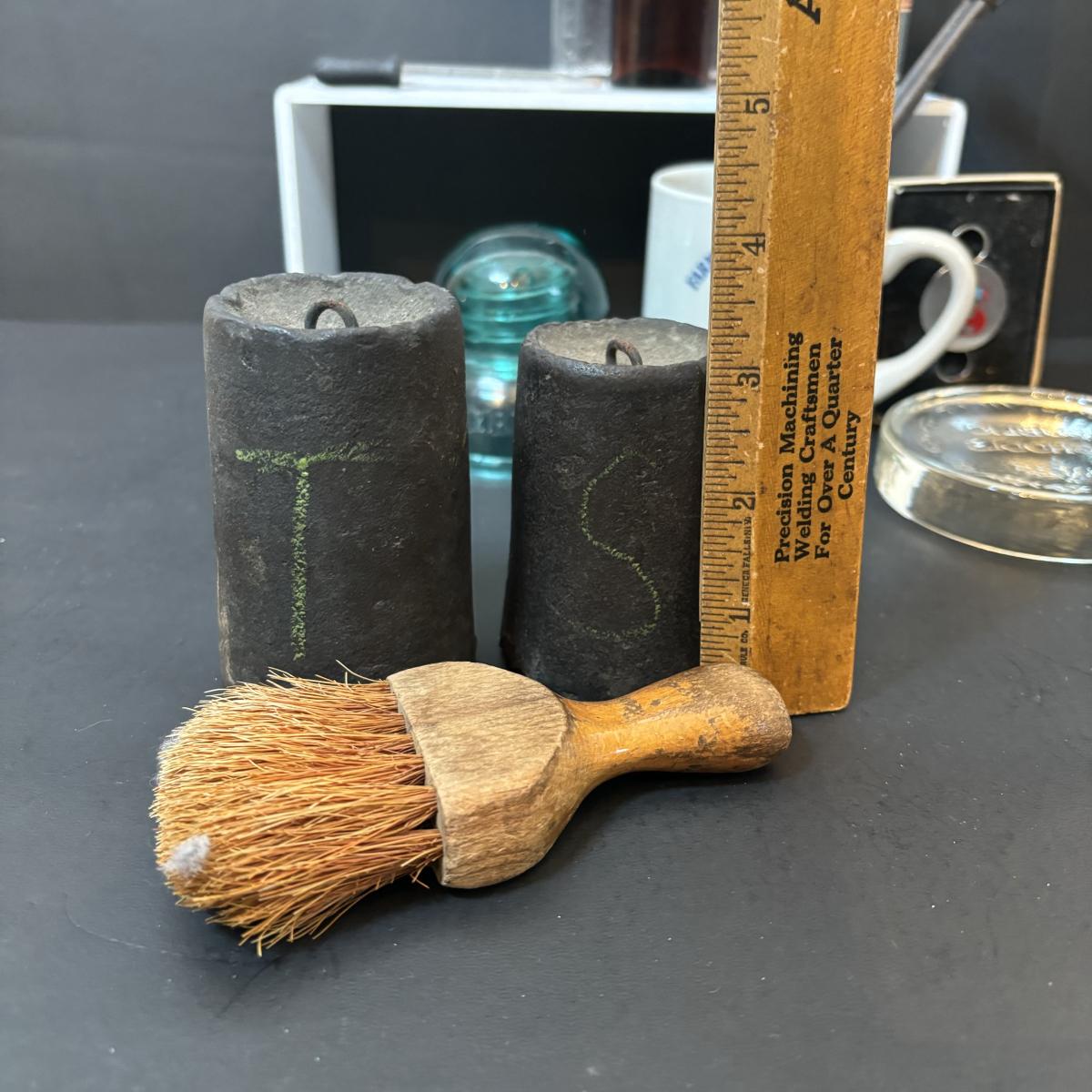 LOT 134: Collection of This & That: Paperweights, Farmers National Bank Pen Army Knife & Mug, Weights, Medicine Bottles & More