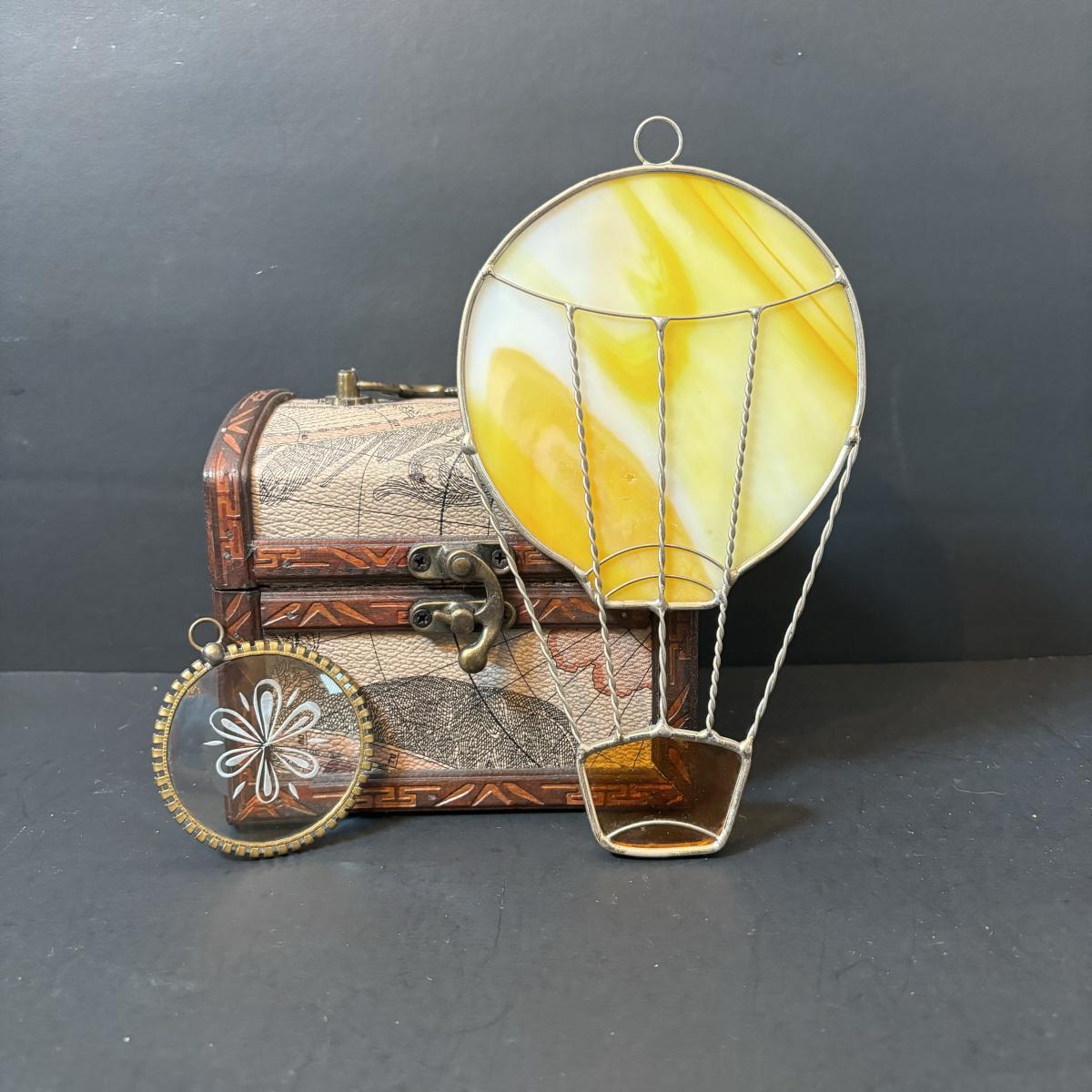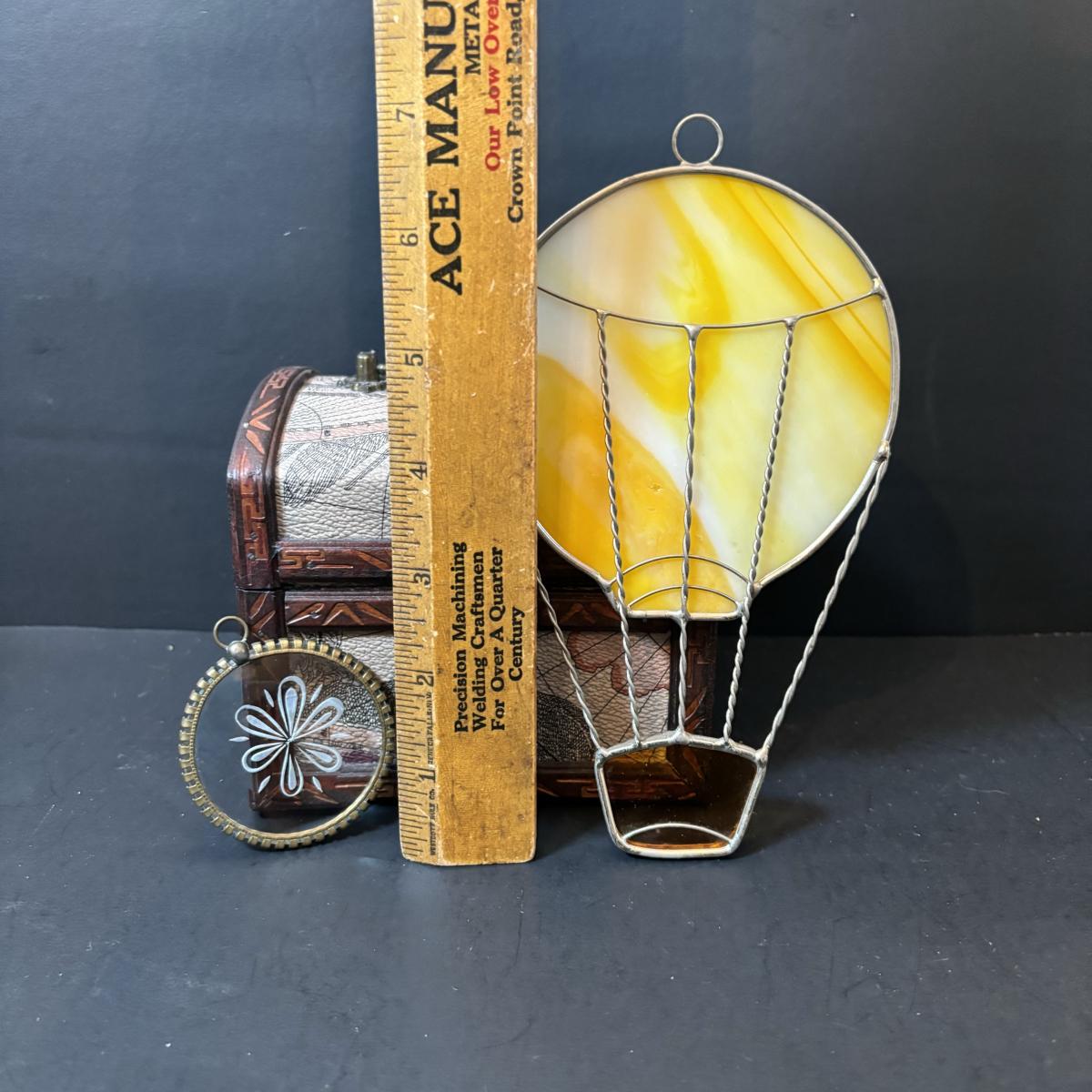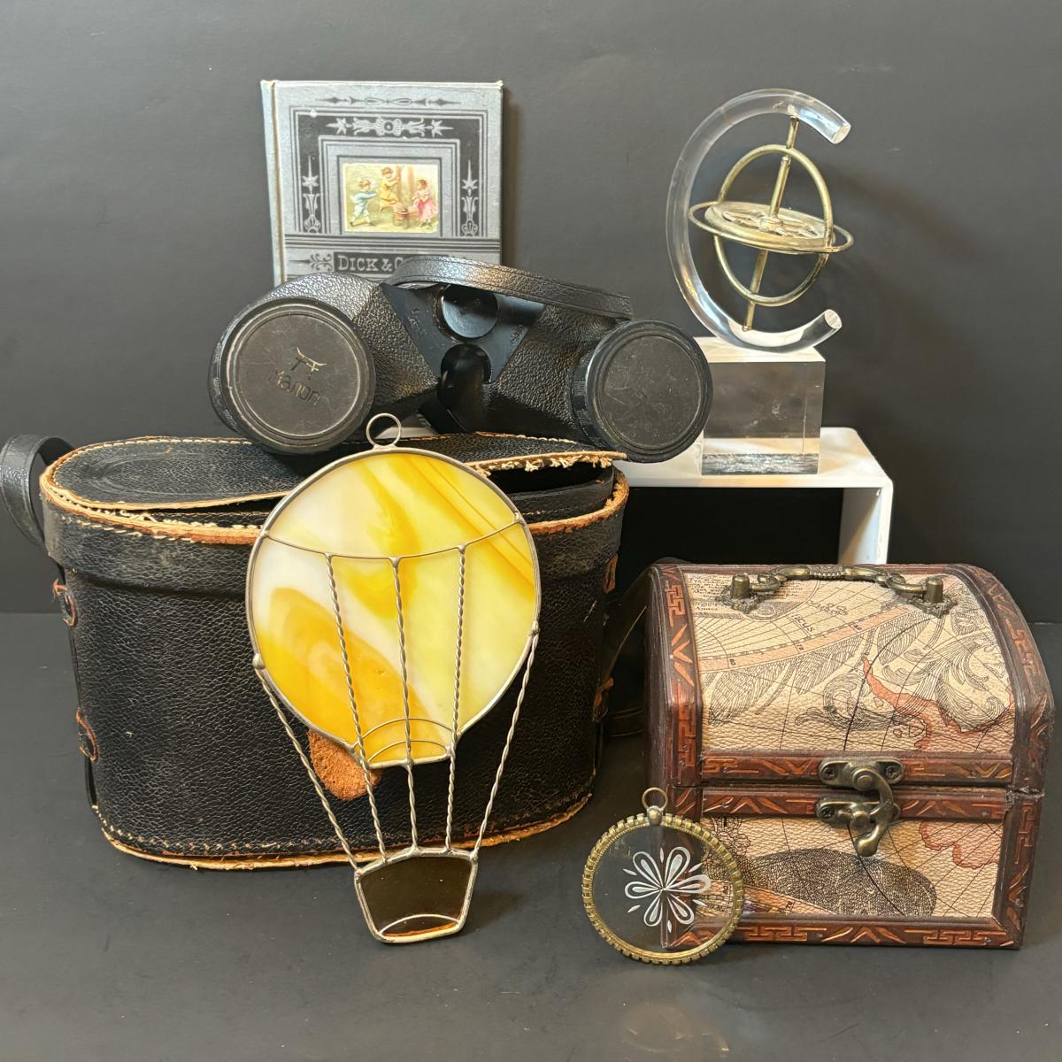 LOT 135: Vintage Binoculars, Hot Air Balloon-Stained Glass Suncatcher, Gyroscope, Childrens Book & More