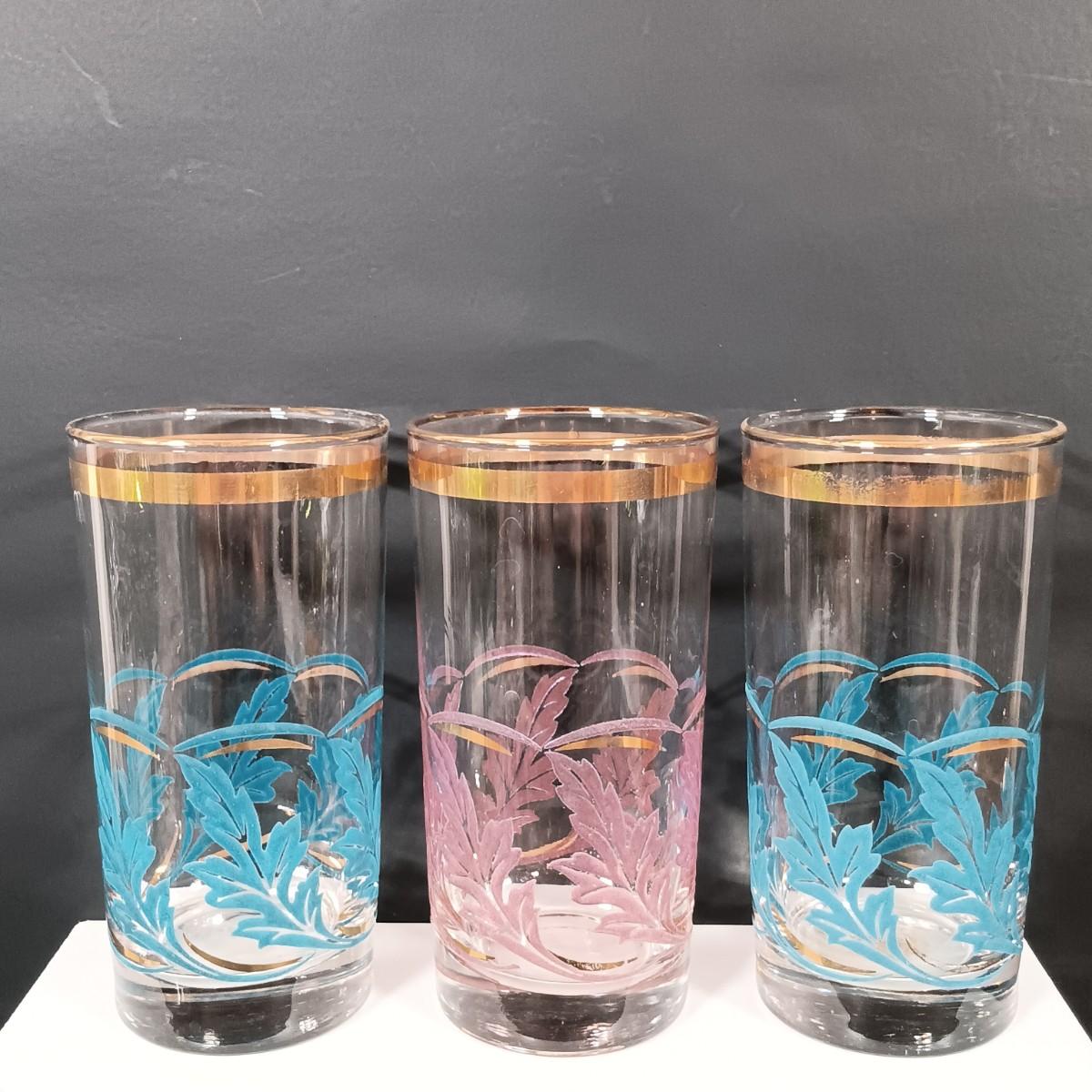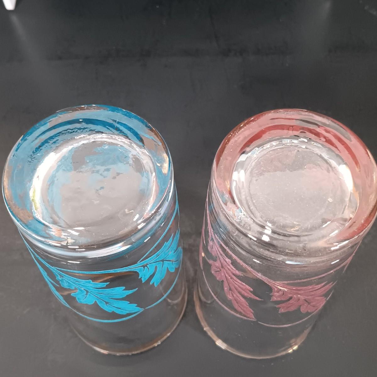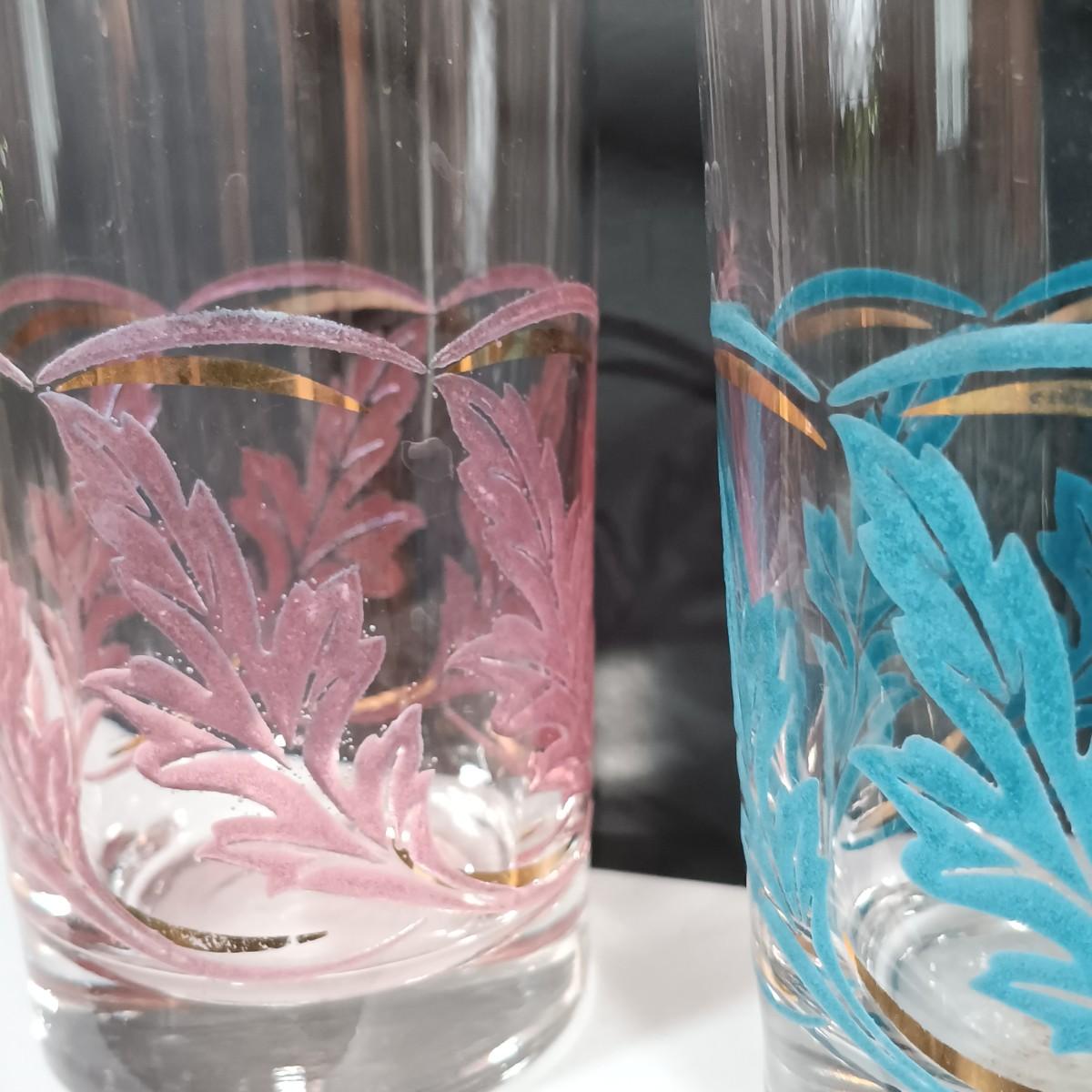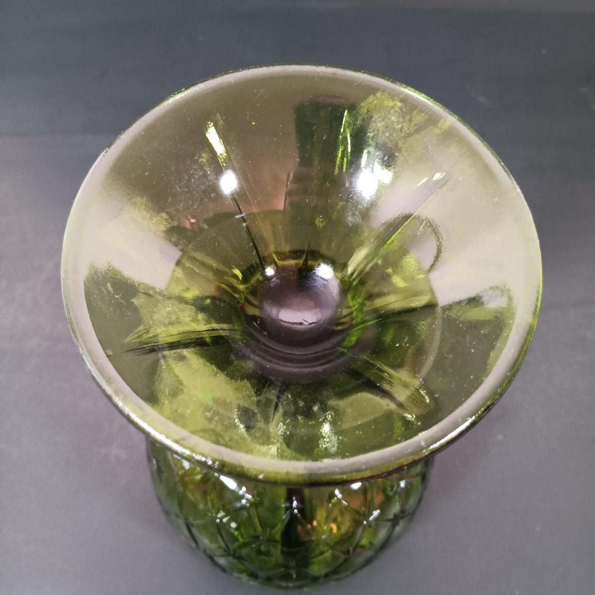 LOT 142: Vintage Libbey Fern Glaze Glasses, Green Compote Bowl, Amber Cake Display & Pink Depression Glass Creamer