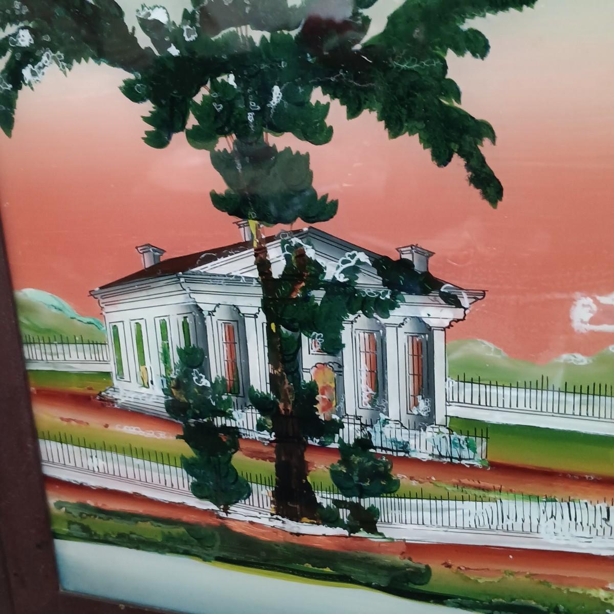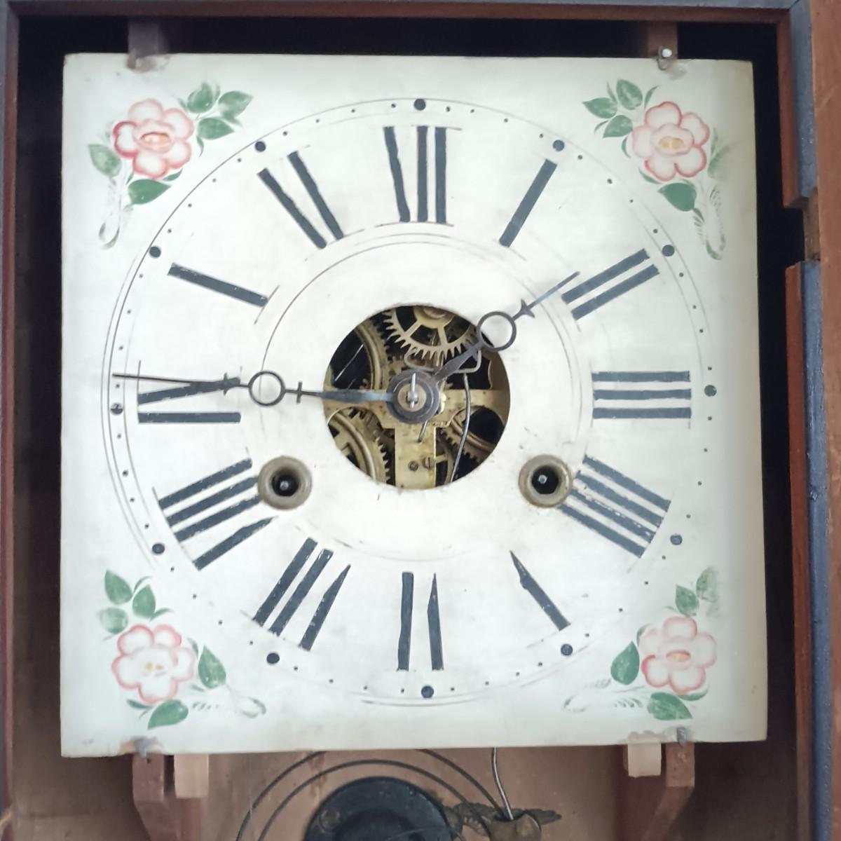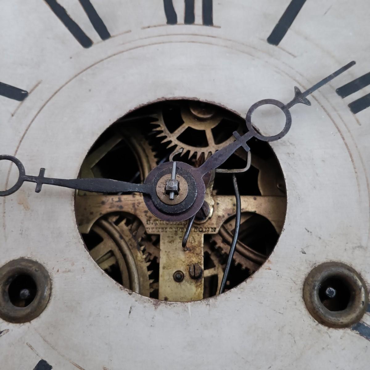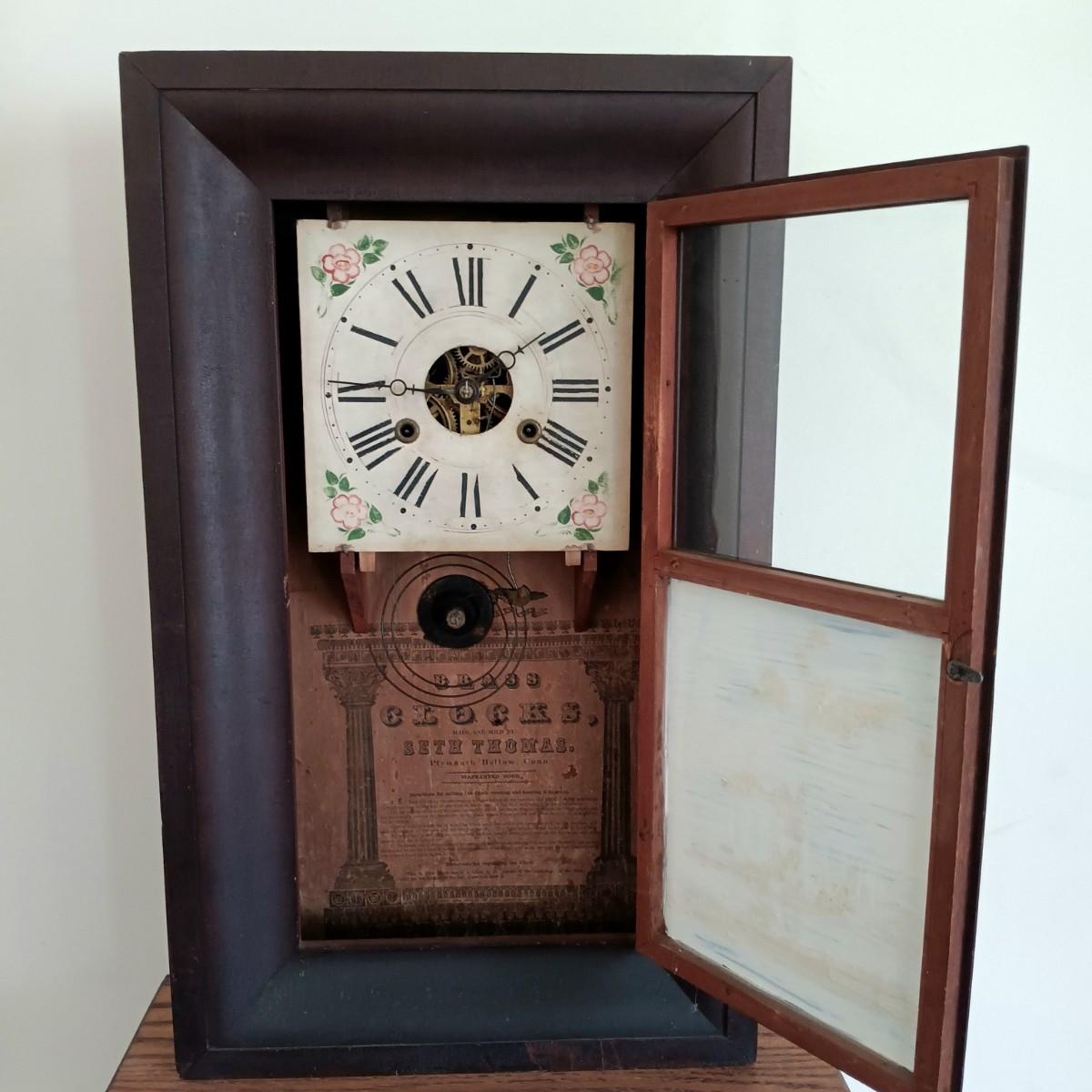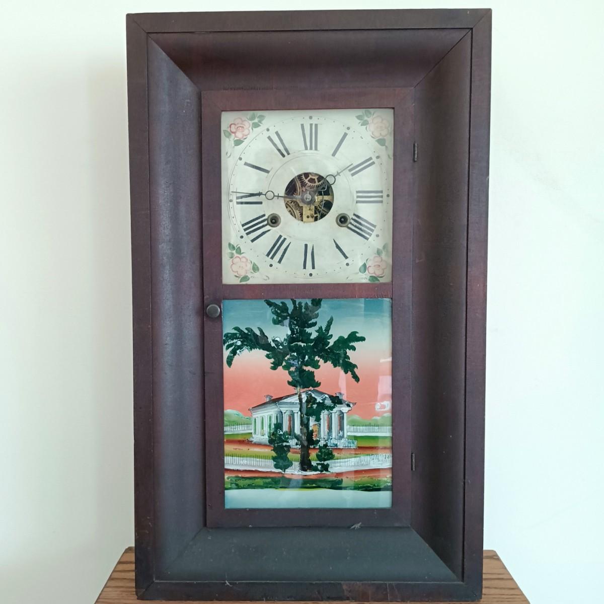 LOT 145: Antique Seth Thomas Brass Movement, Reverse Painted Mantel Clock