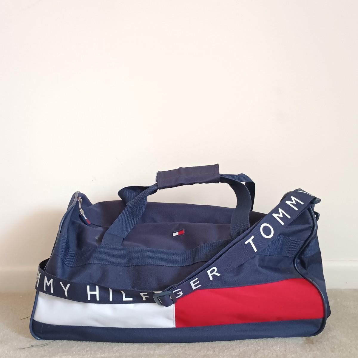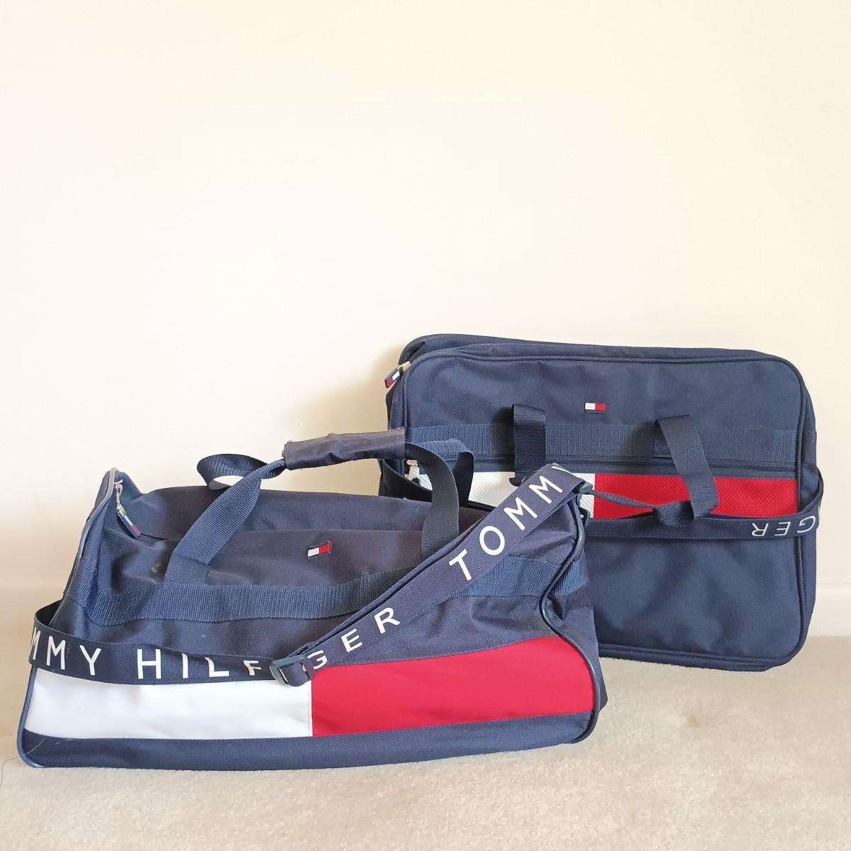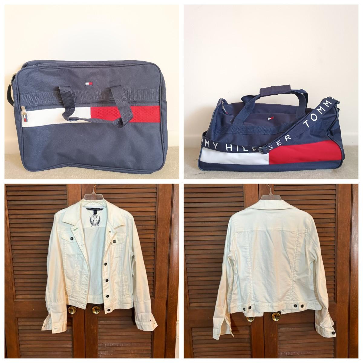 LOT 146: Tommy Hilfiger White Denim Jacket with Duffle Bag and Laptop Messenger Bag