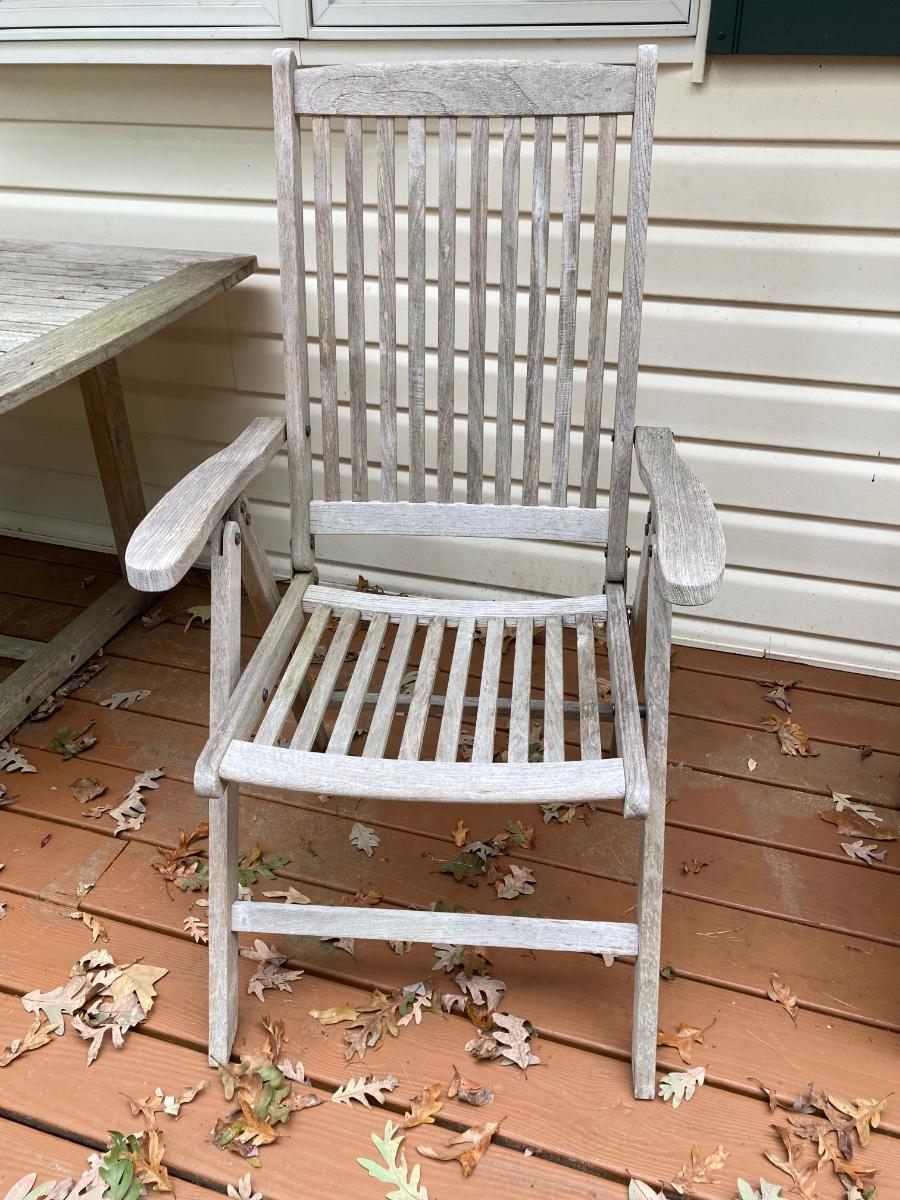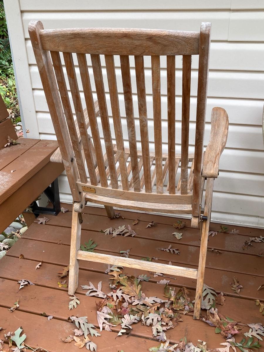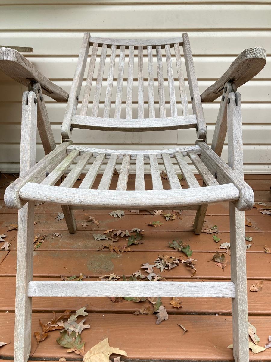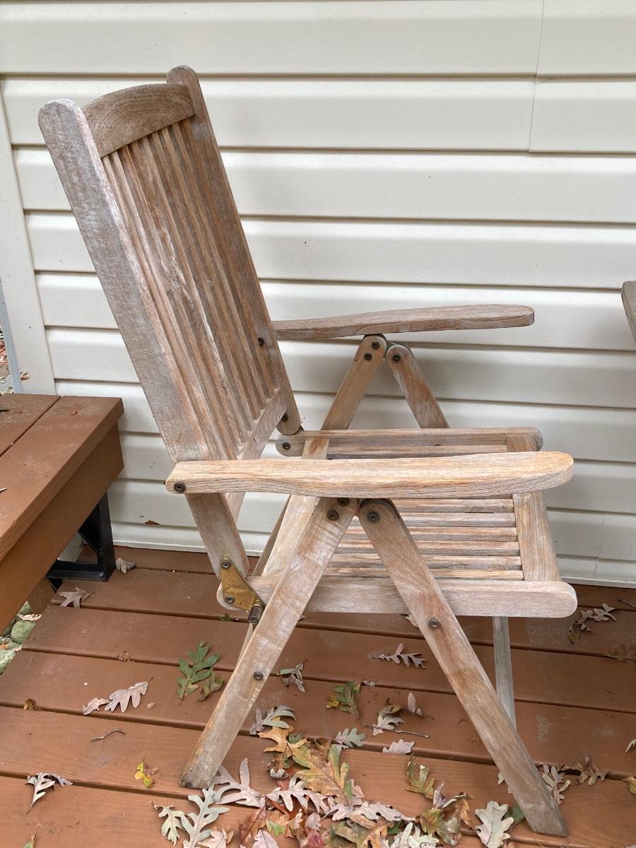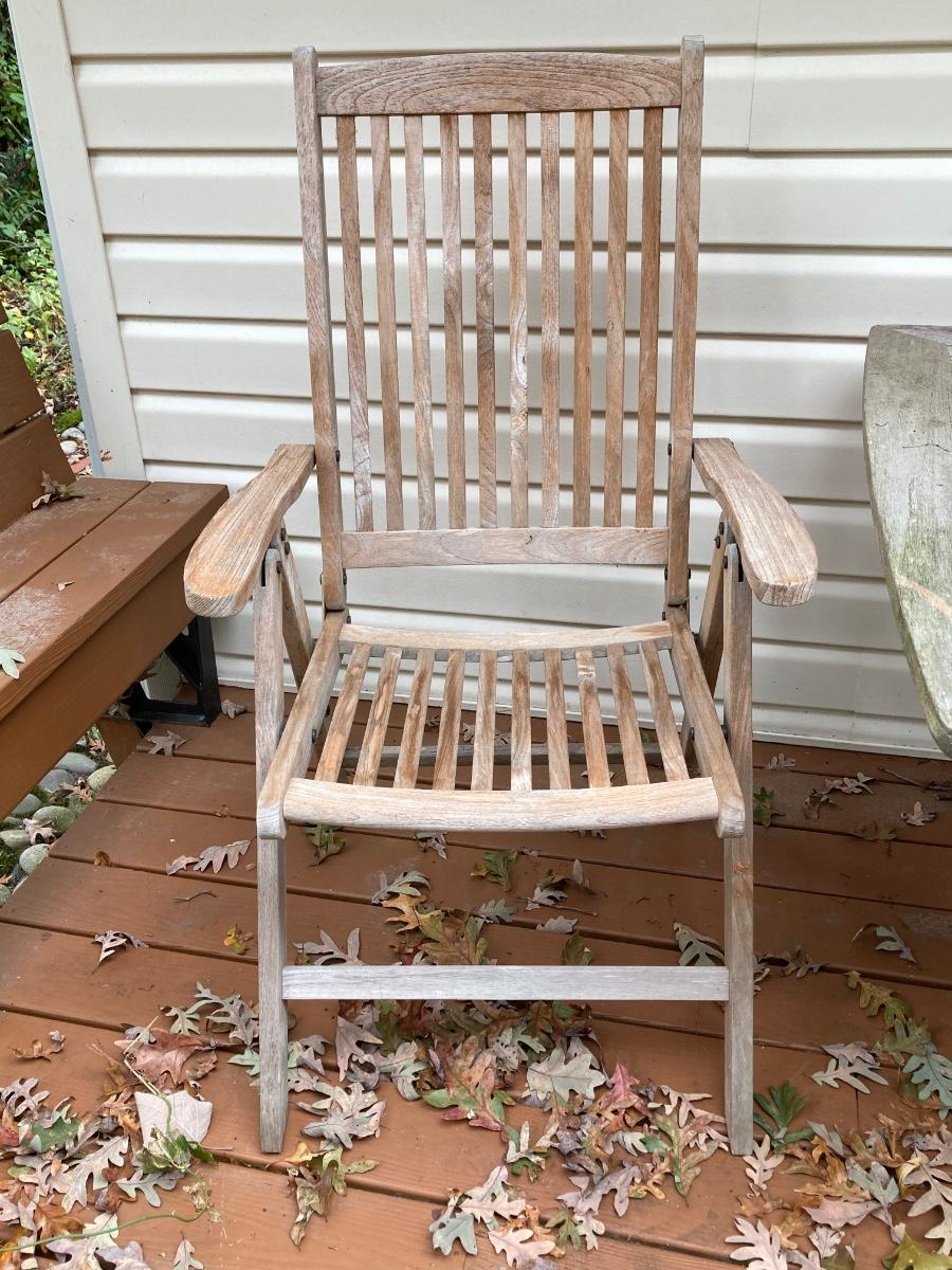 LOT 175: Teak Wood Folding Table with Two Teak Wood Reclining Chairs