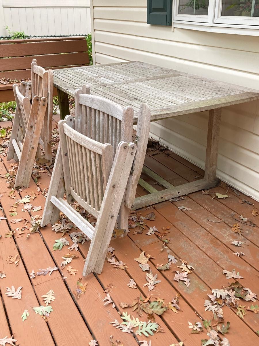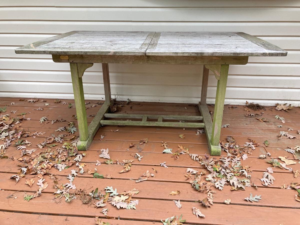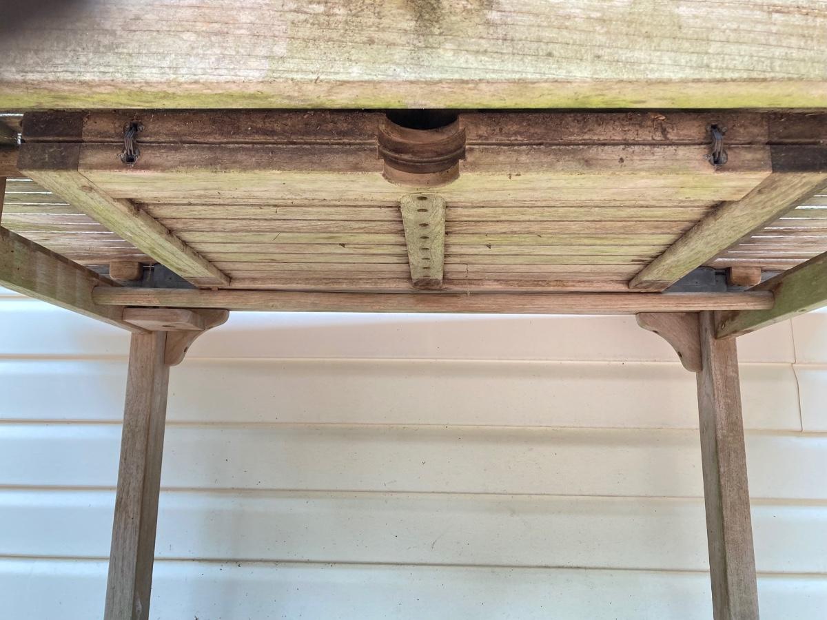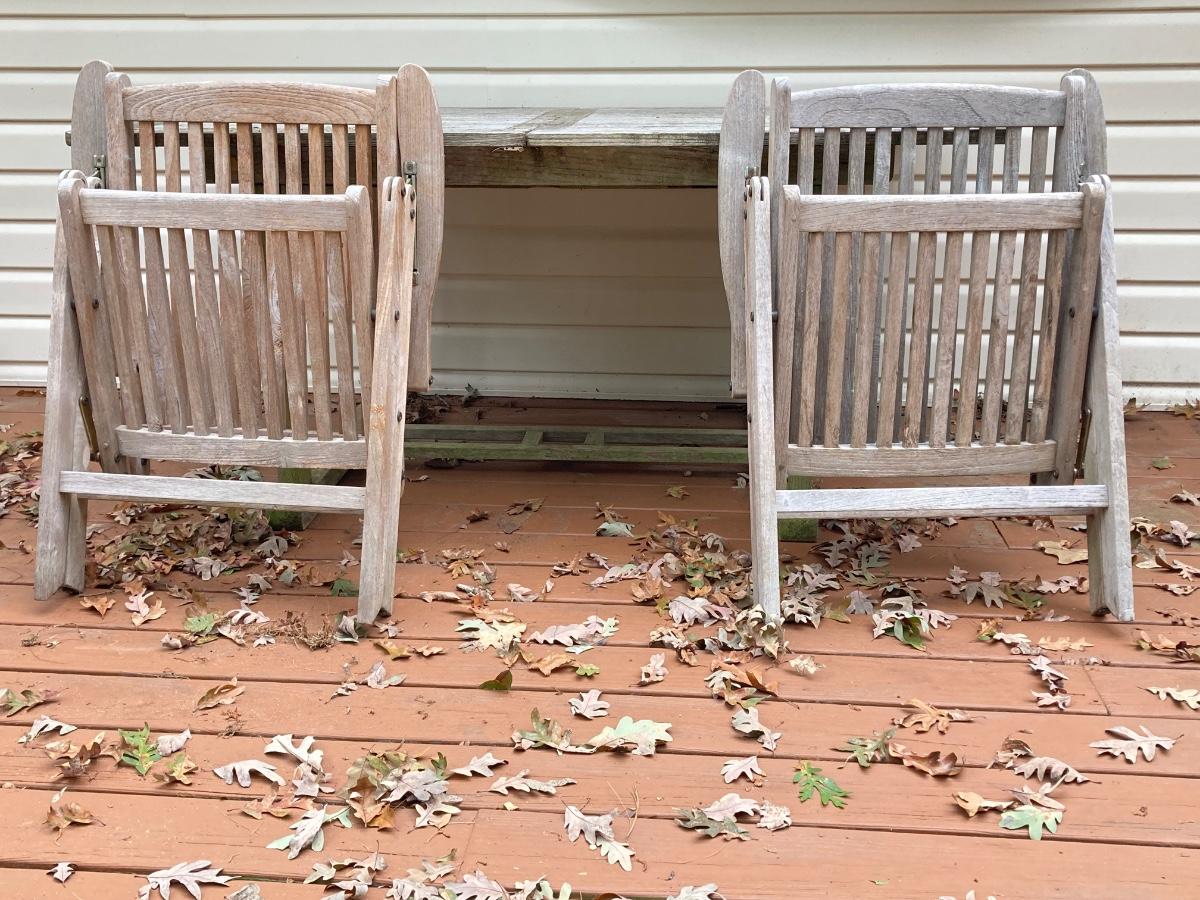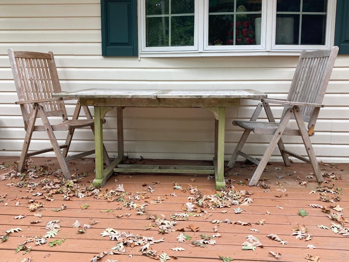 LOT 175: Teak Wood Folding Table with Two Teak Wood Reclining Chairs