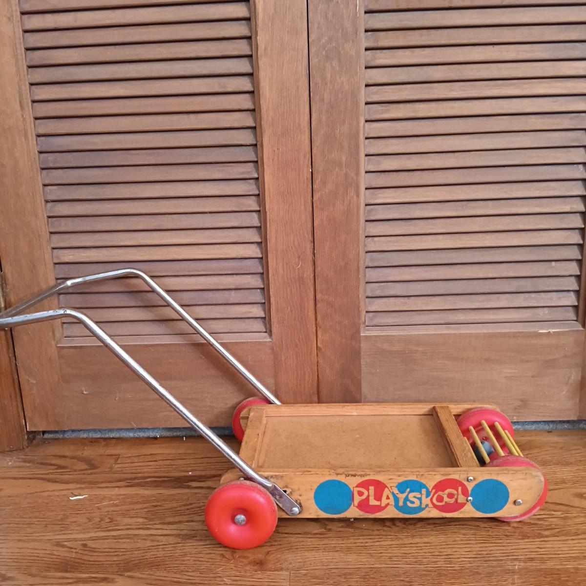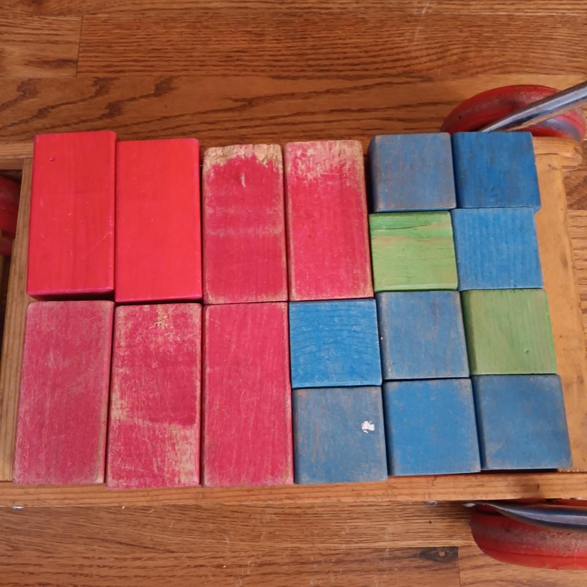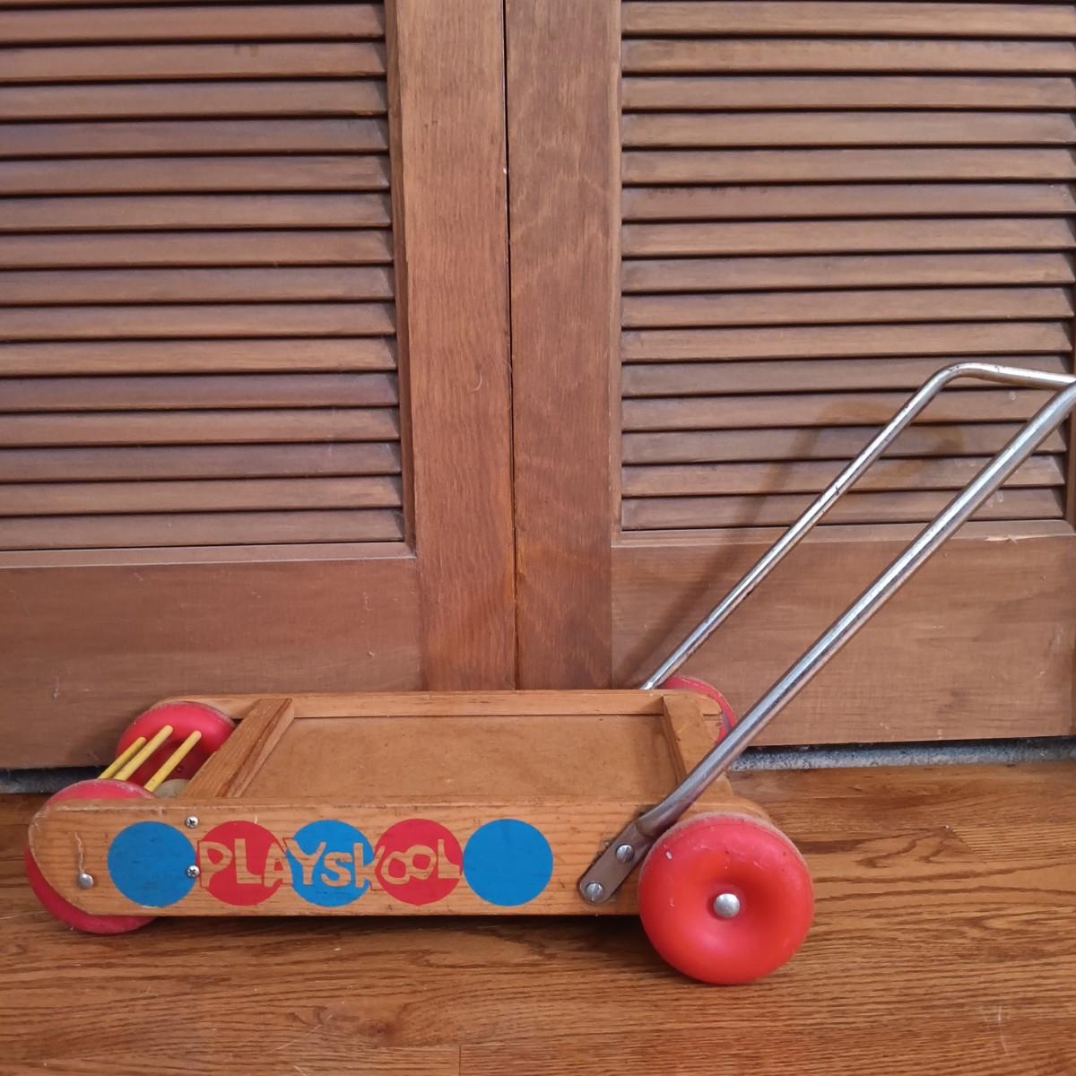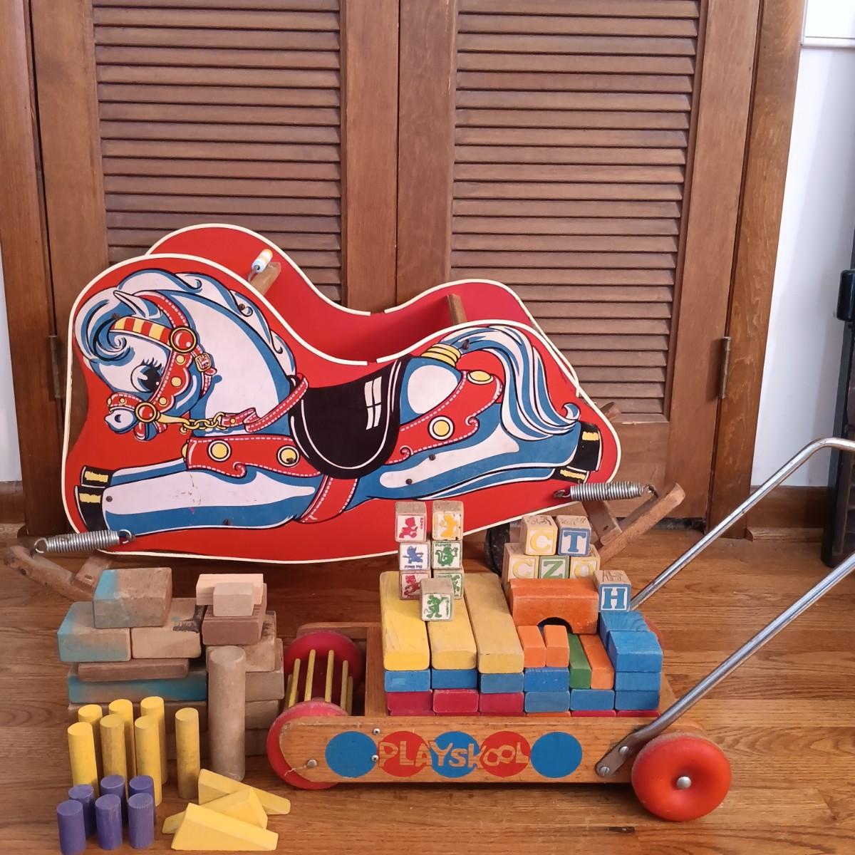LOT 197: Vintage Child's Rocking Horse and Playskool Wagon with Blocks