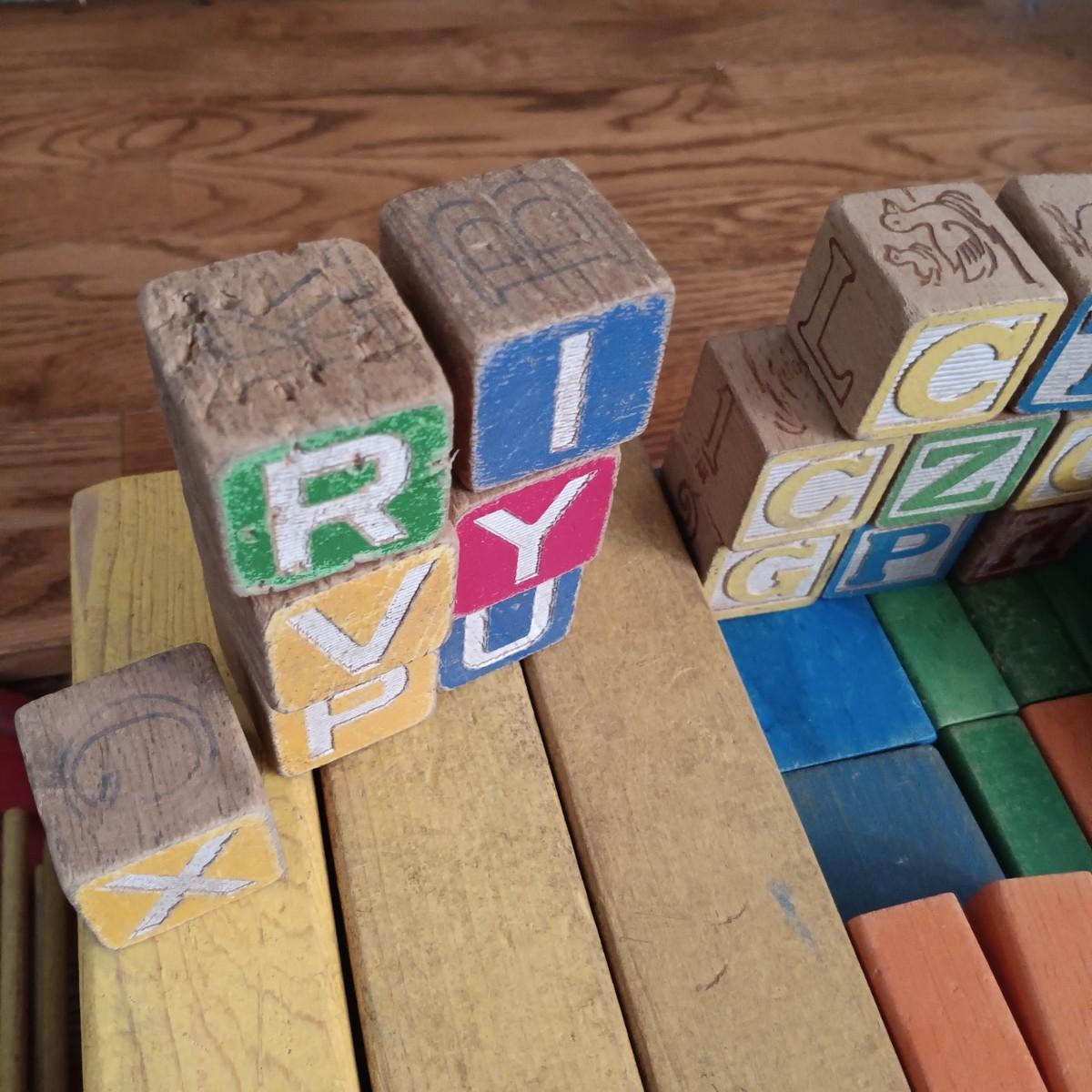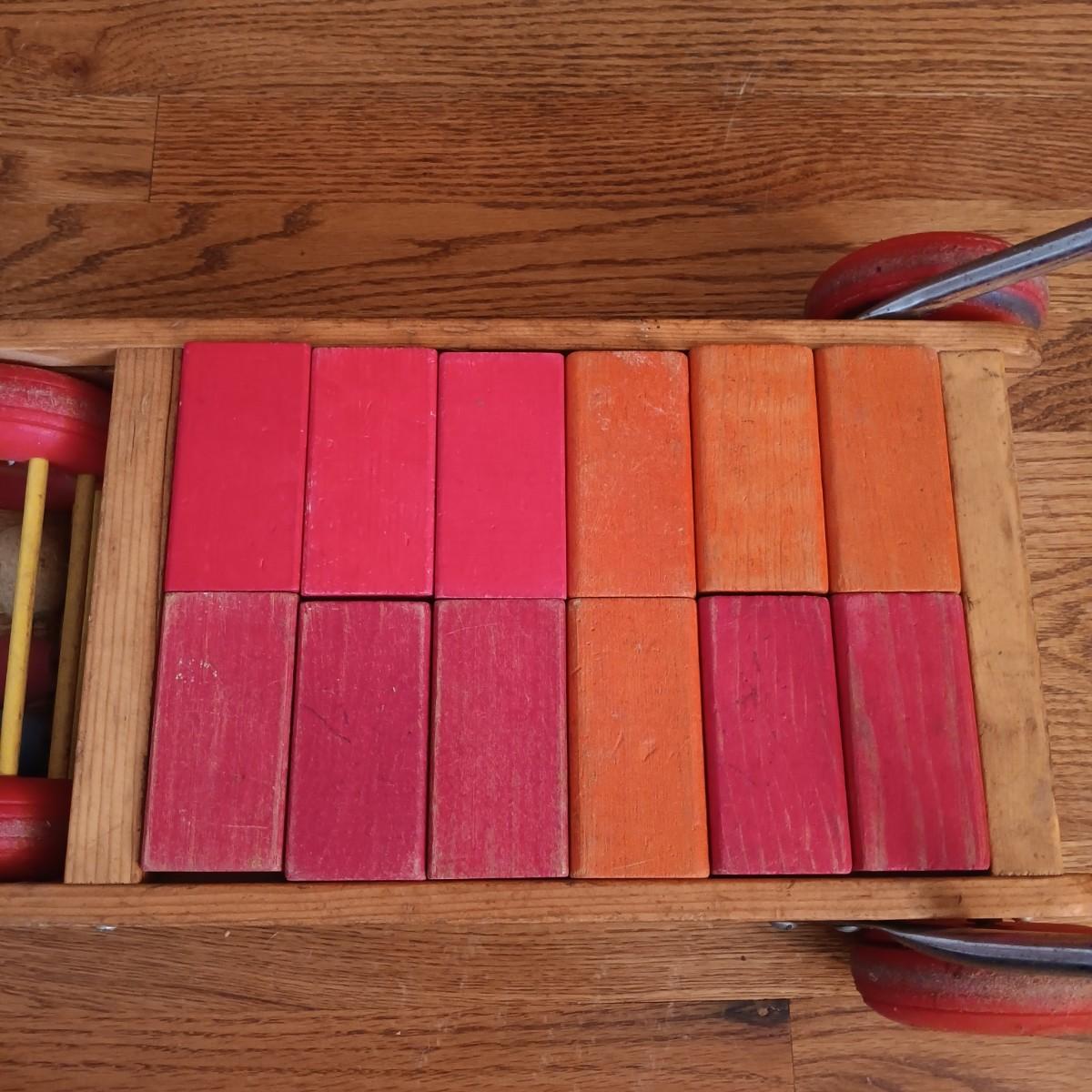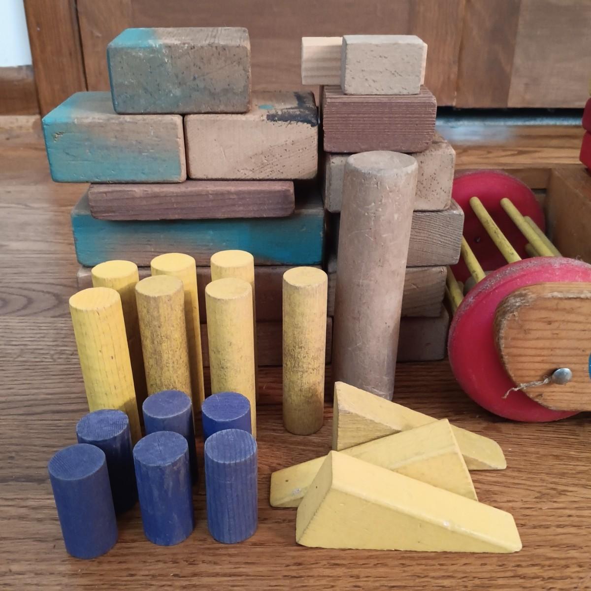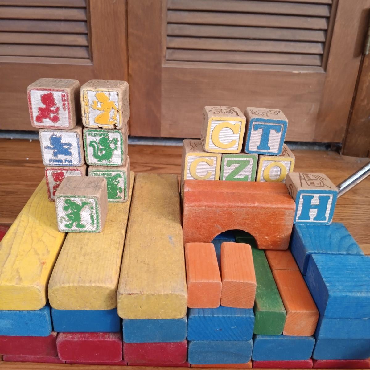 LOT 197: Vintage Child's Rocking Horse and Playskool Wagon with Blocks