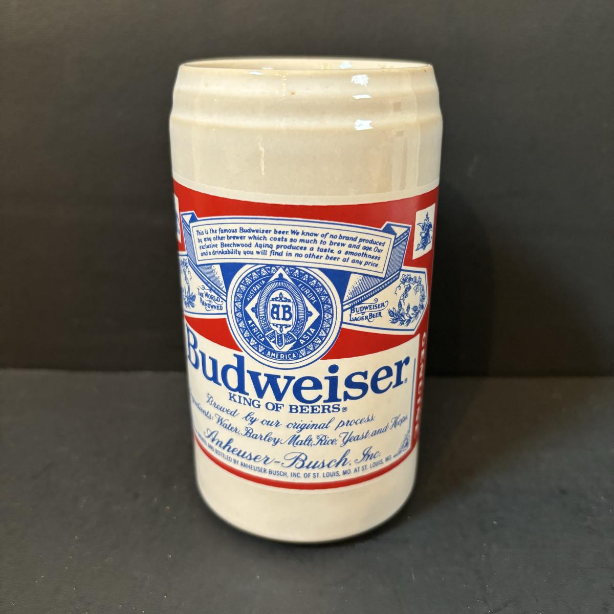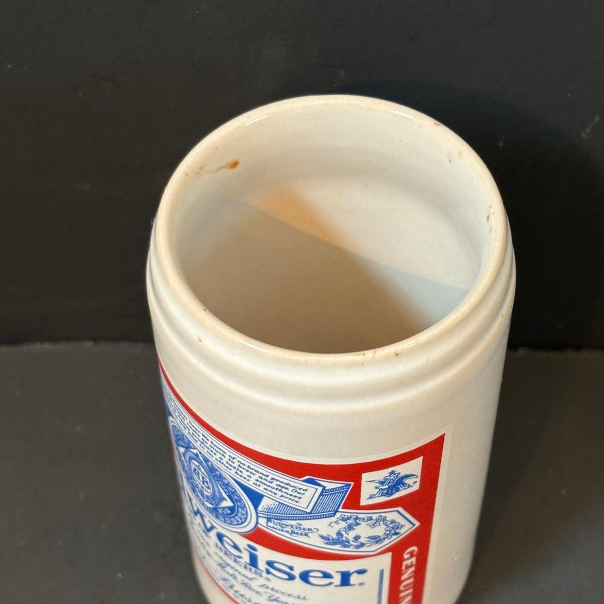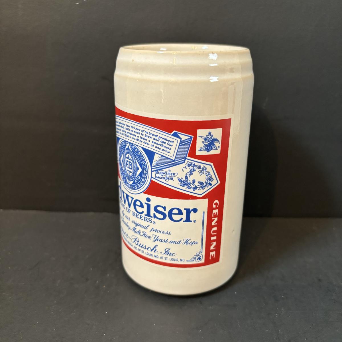 LOT 217: Vintage Gerzit Anheuser Busch Budweiser Pottery Can Cup 4.75", Steins, Glassware & More