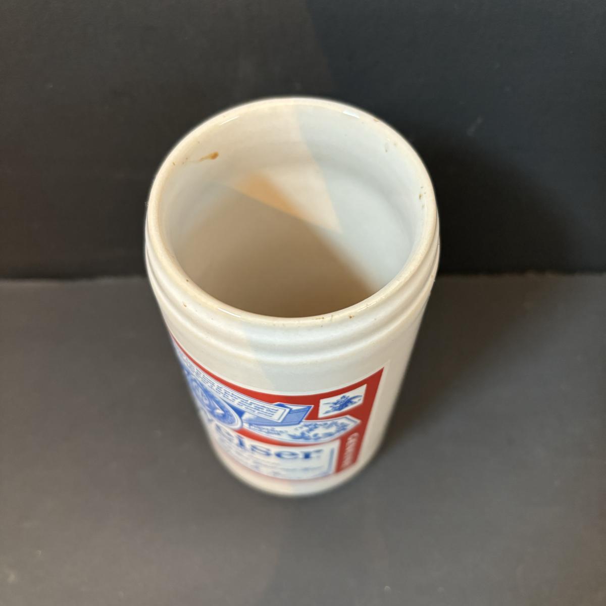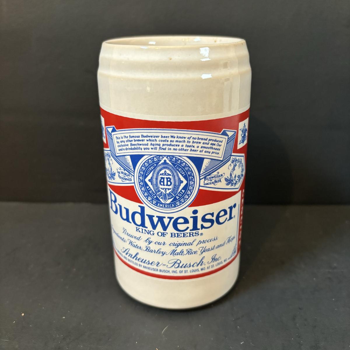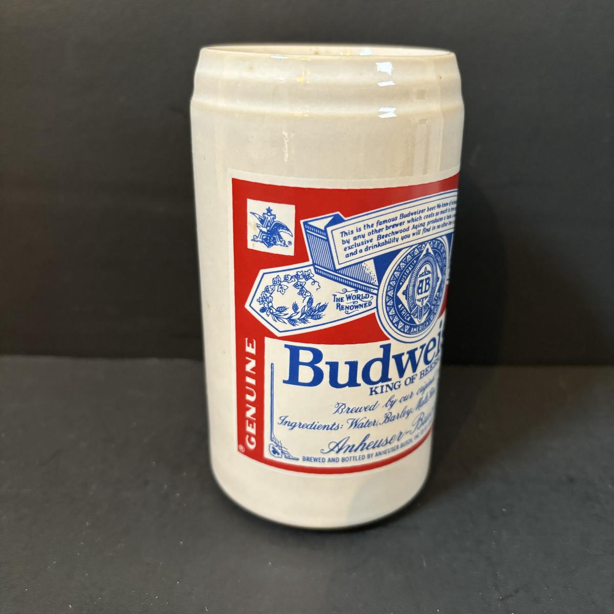 LOT 217: Vintage Gerzit Anheuser Busch Budweiser Pottery Can Cup 4.75", Steins, Glassware & More