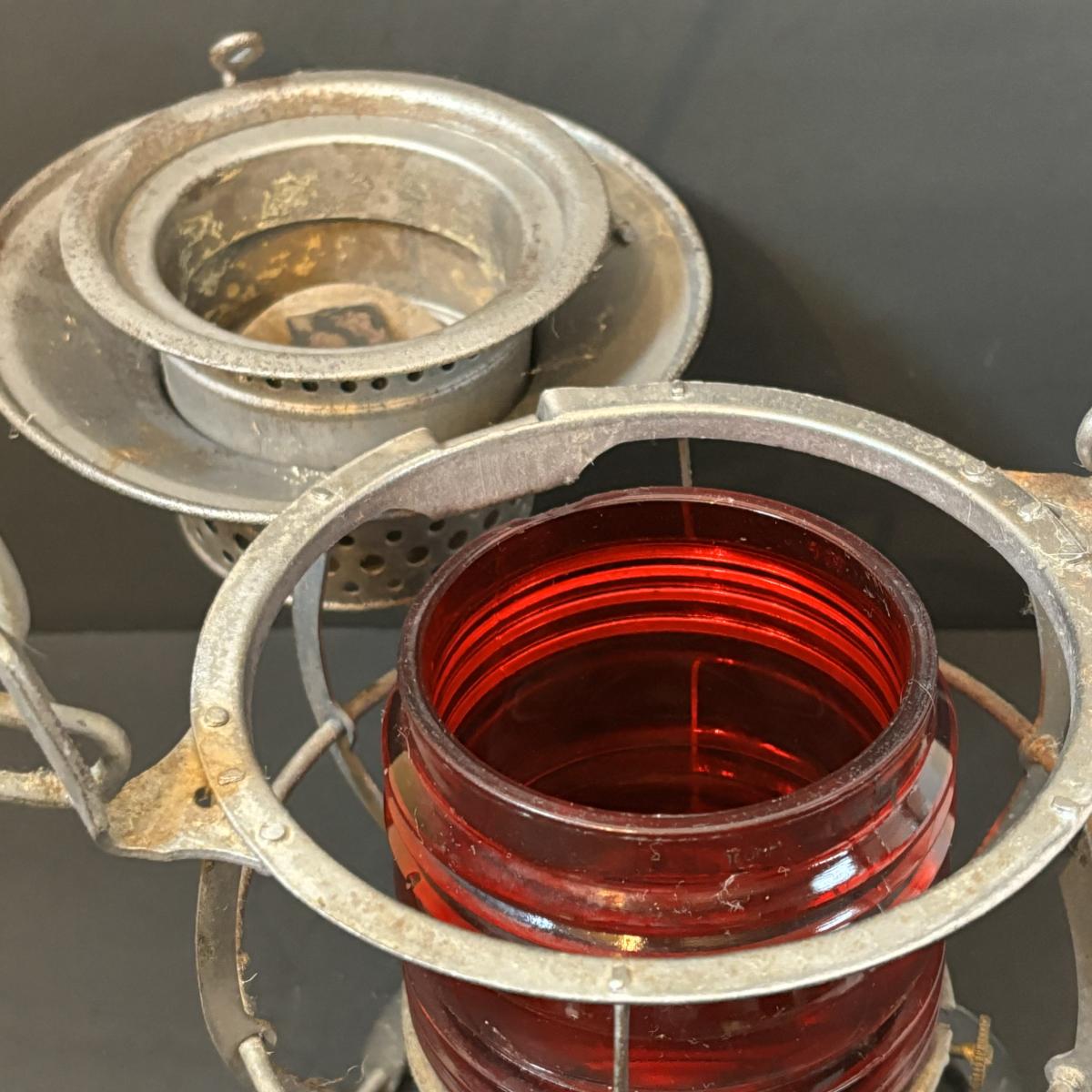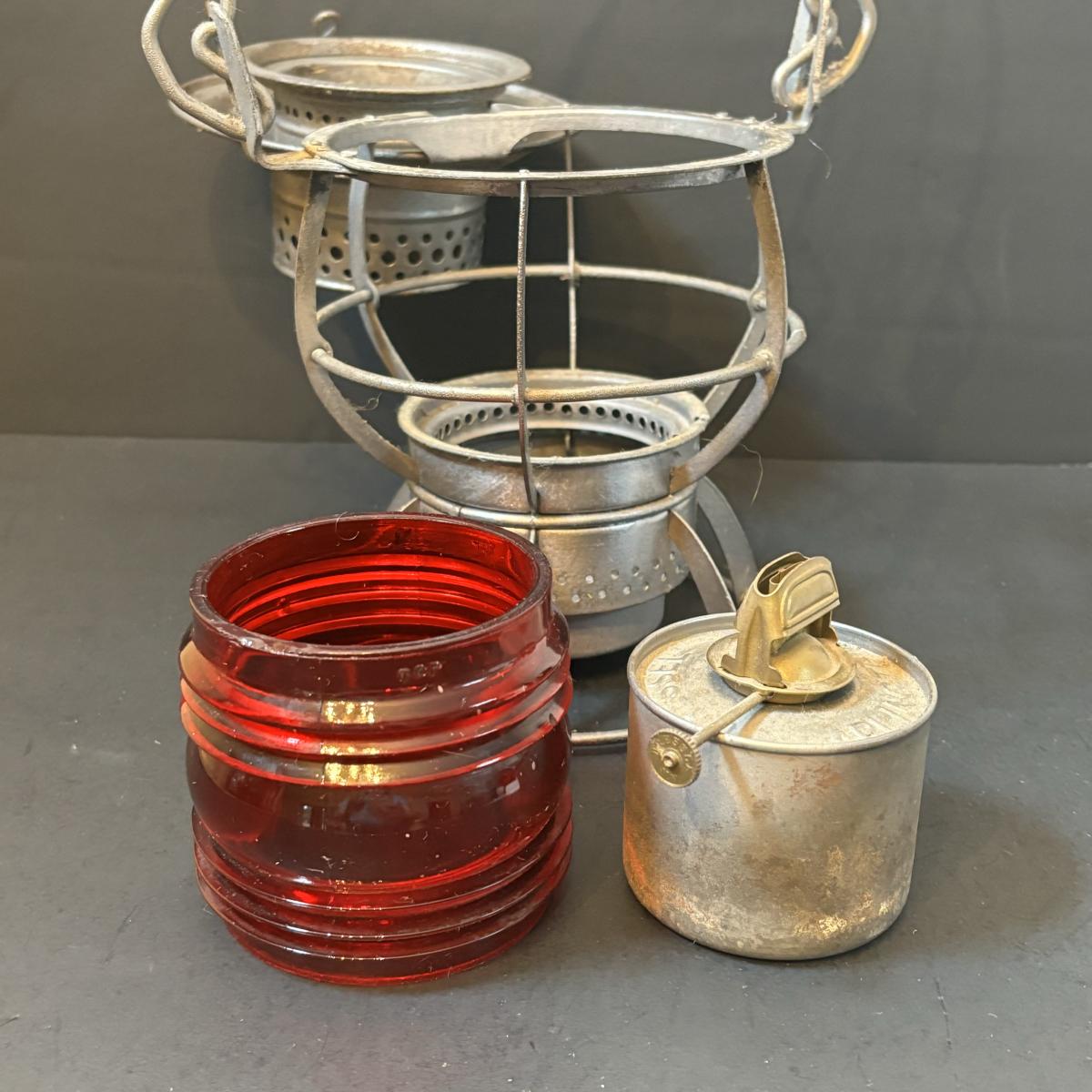 LOT 221: Vintage PRR Dressel Arlington NJ Red Fresnel Globe Railroad Kerosene Oil Lantern