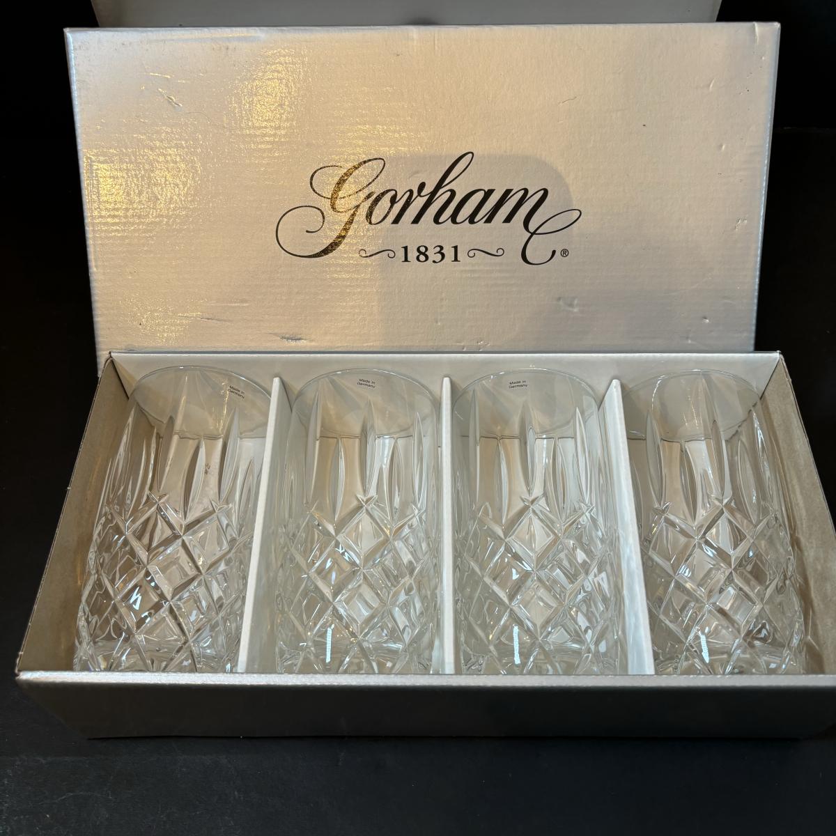 LOT 223: Gorham Cut Crystal Lady Anne H/B Glasses in Original Boxes (3 boxes:4 per box)