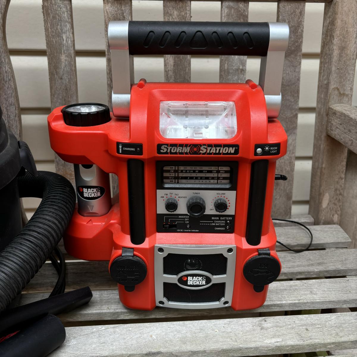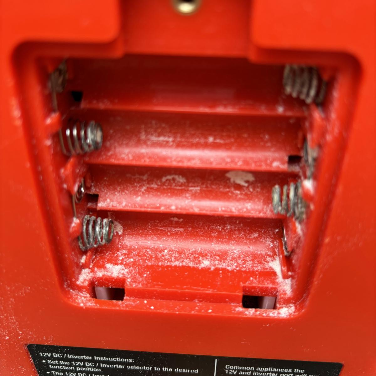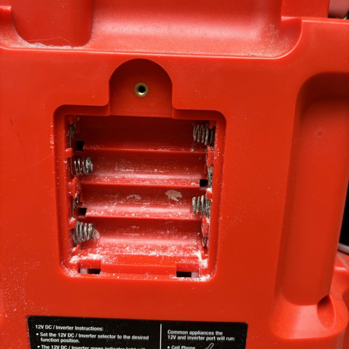 Storm Station - powers on, could not get radio to work, battery compartment shows signs of old batteries