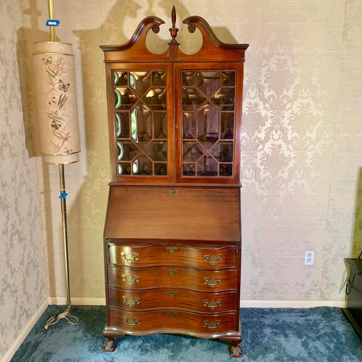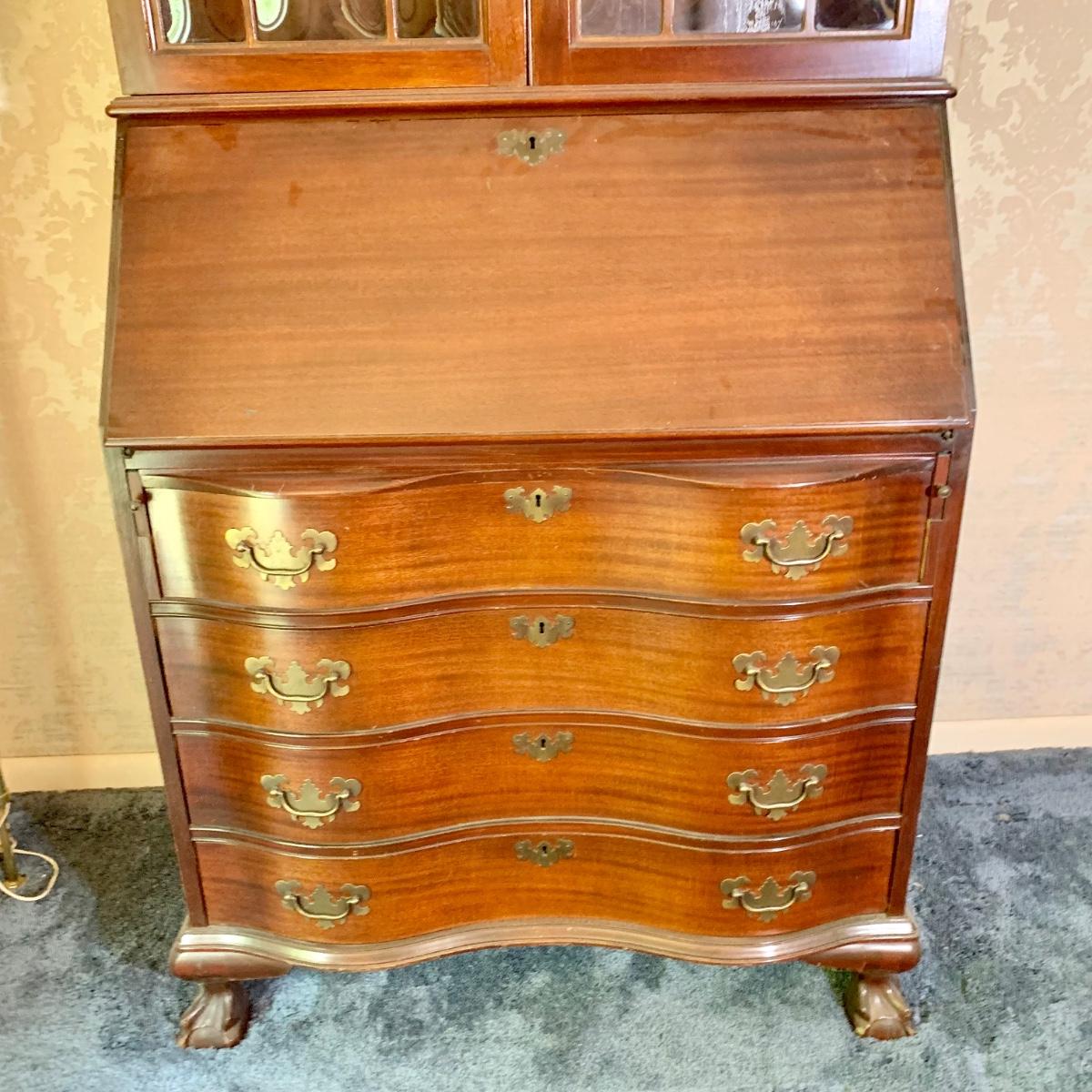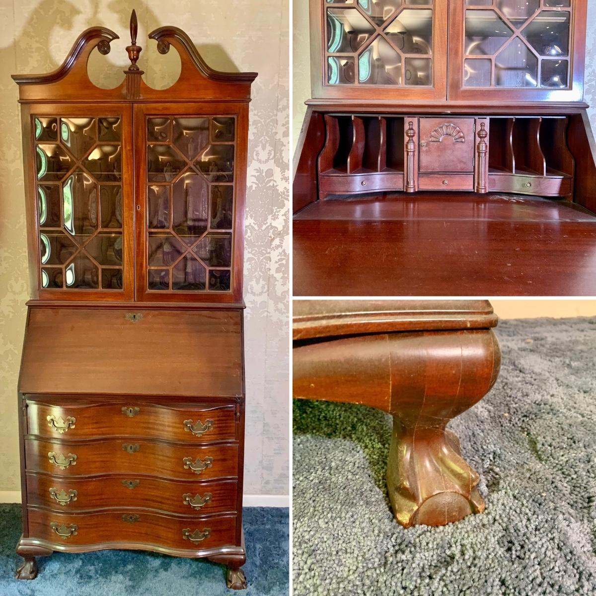 LOT 4: Beautiful Vintage Maddox Secretary Desk w/ Bubble Glass