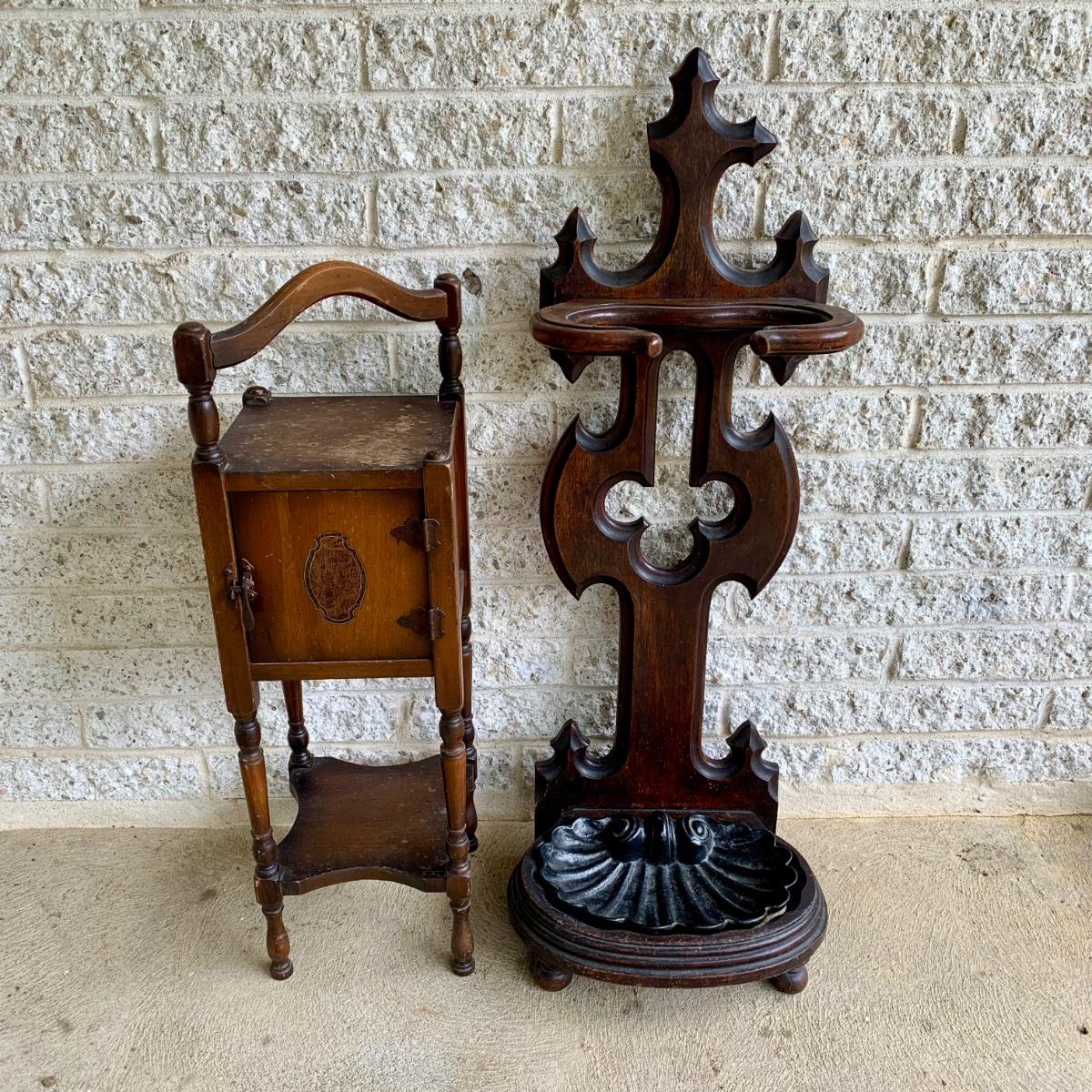 LOT 5: Vintage Humidor/ Tobacco Cabinet & Victorian Walnut Umbrella Stand