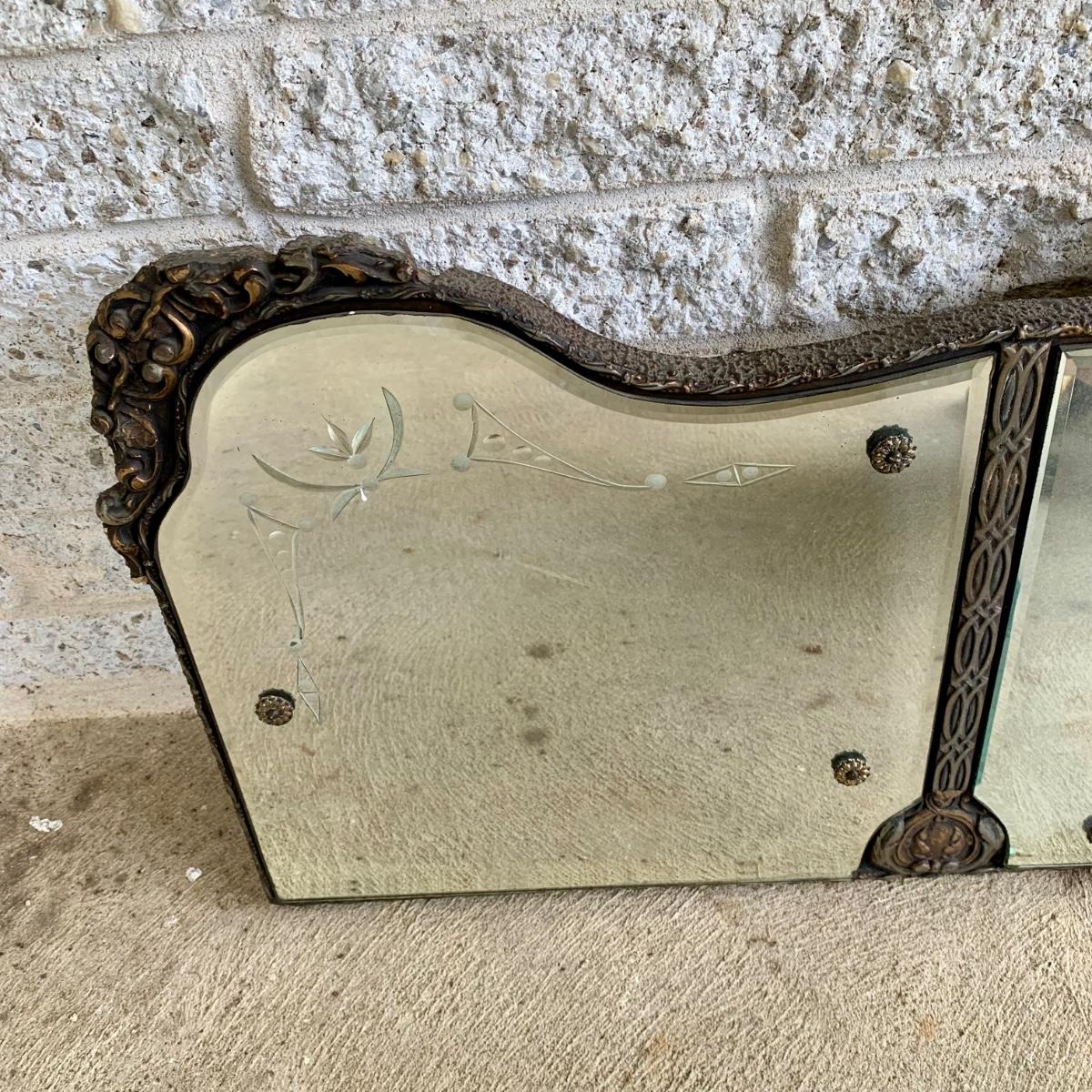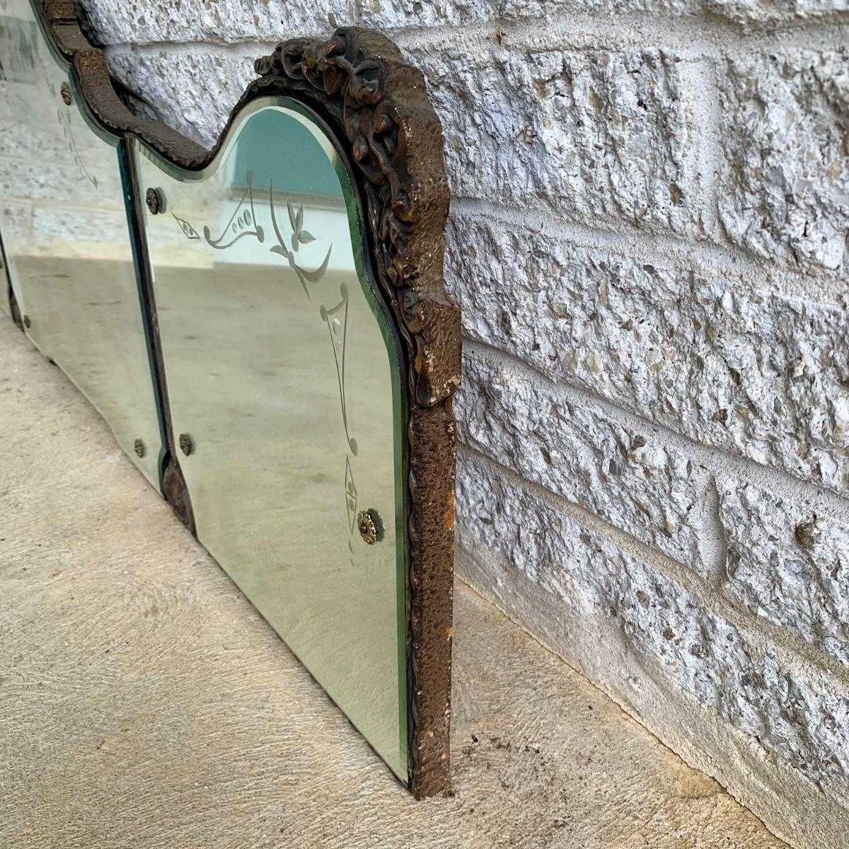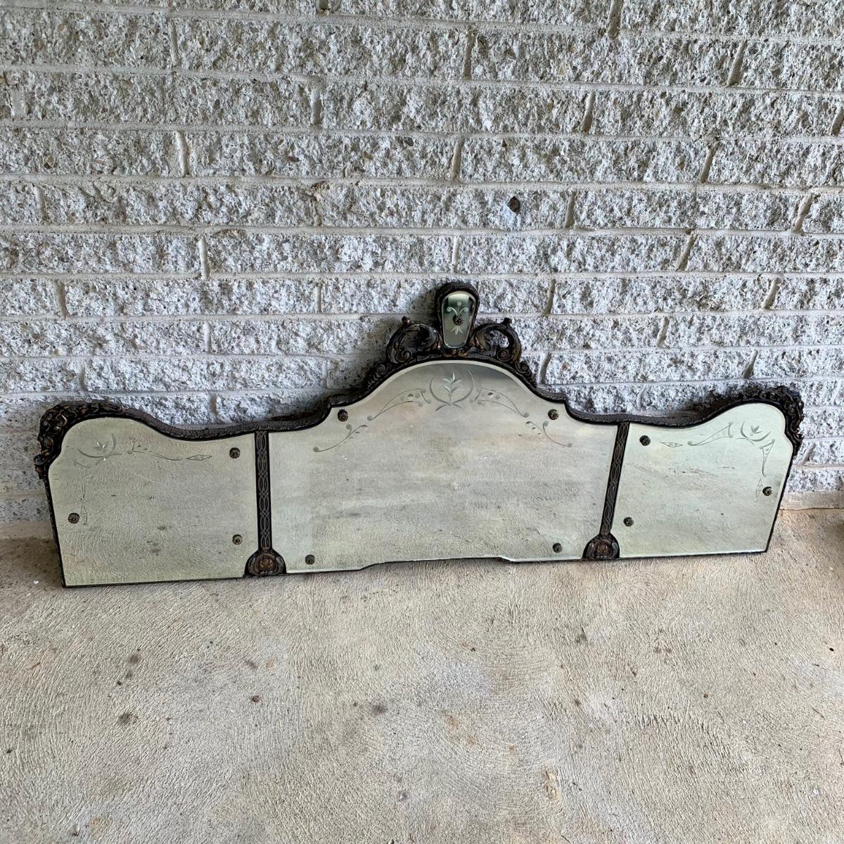 LOT 6: Vintage Art Deco Tri Panel Glass Wall Mirror