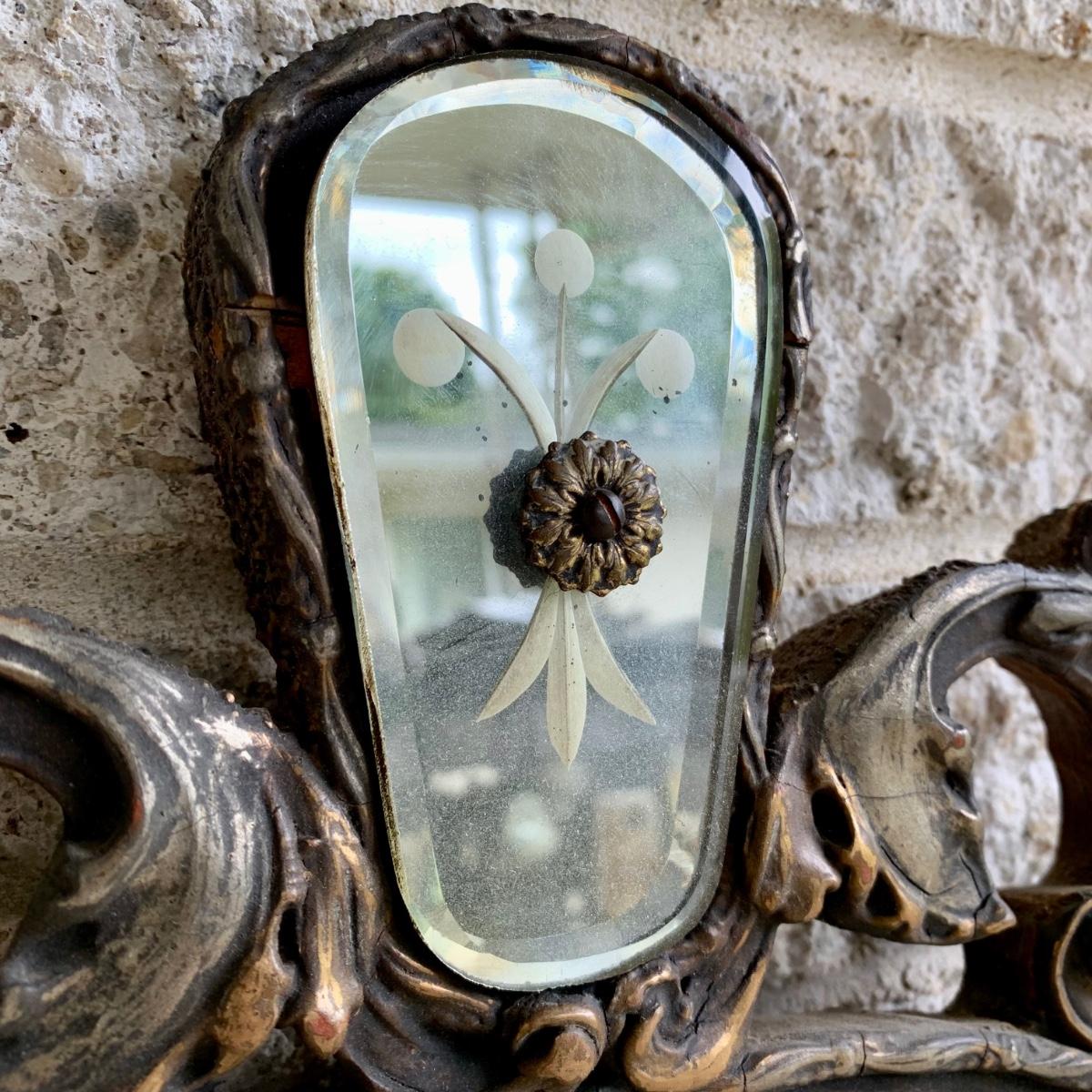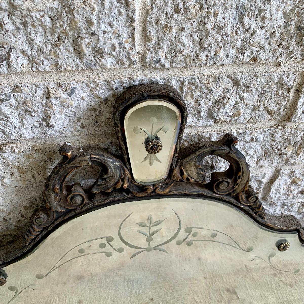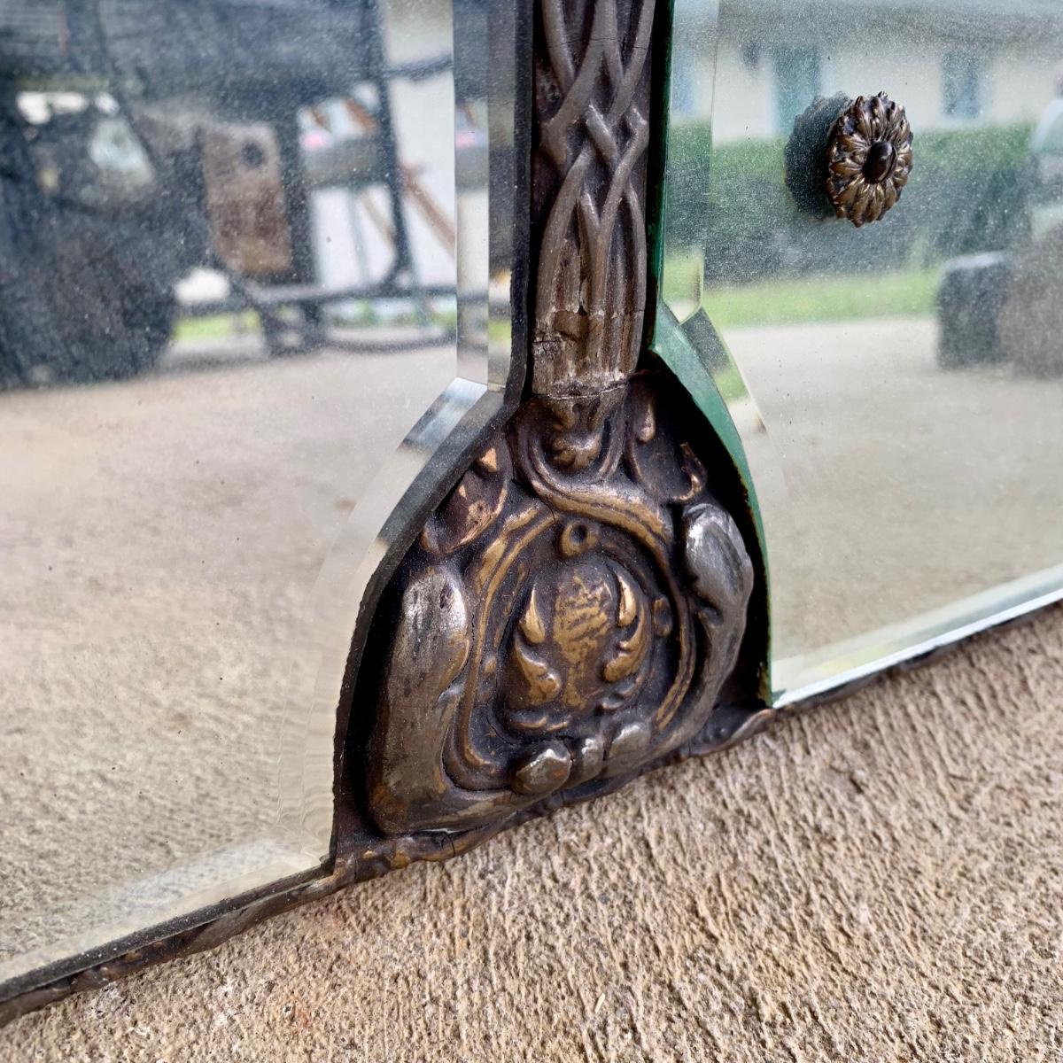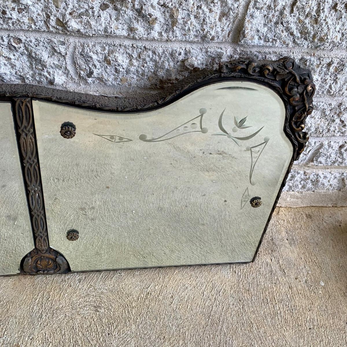 LOT 6: Vintage Art Deco Tri Panel Glass Wall Mirror