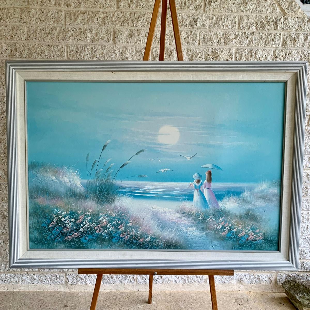 LOT 22: Detailed & Delicate Pastel Seaside Scene Framed & Signed Oil Painting