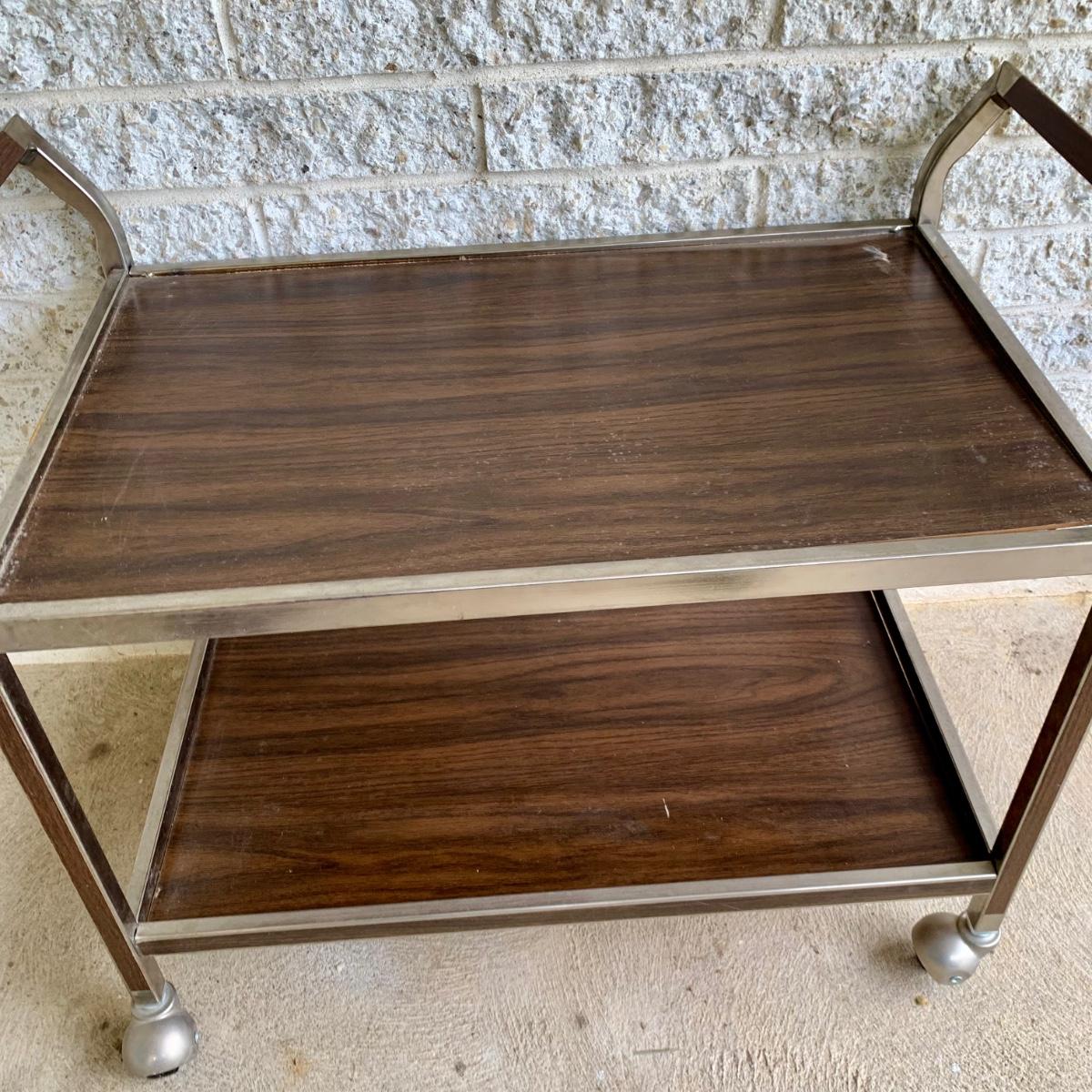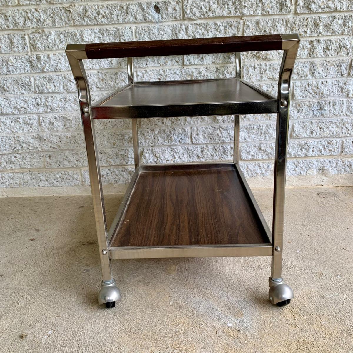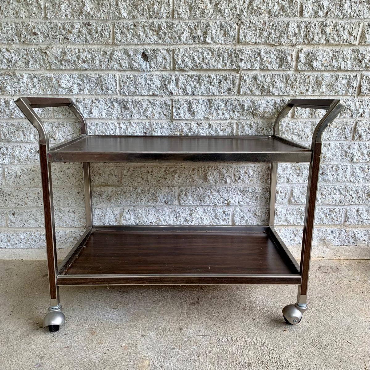 LOT 27: Vintage MCM 2 Tier Rolling Bar/ Serving Cart