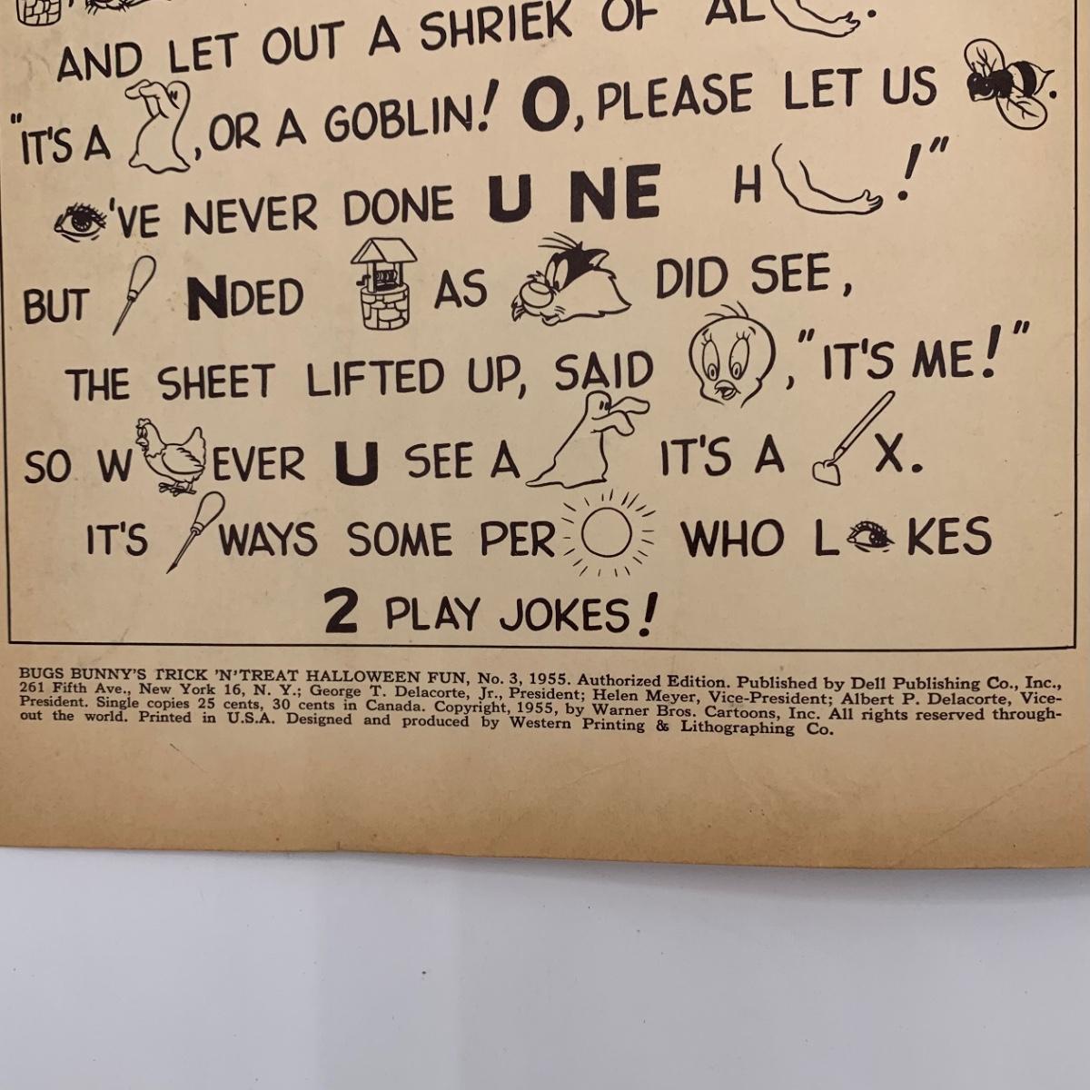 LOT 32: 1955 Bugs Bunny's Trick N' Treat Halloween Fun #3 & Bugs Bunny #34 Dec.- Jan. 1954 Comic Books