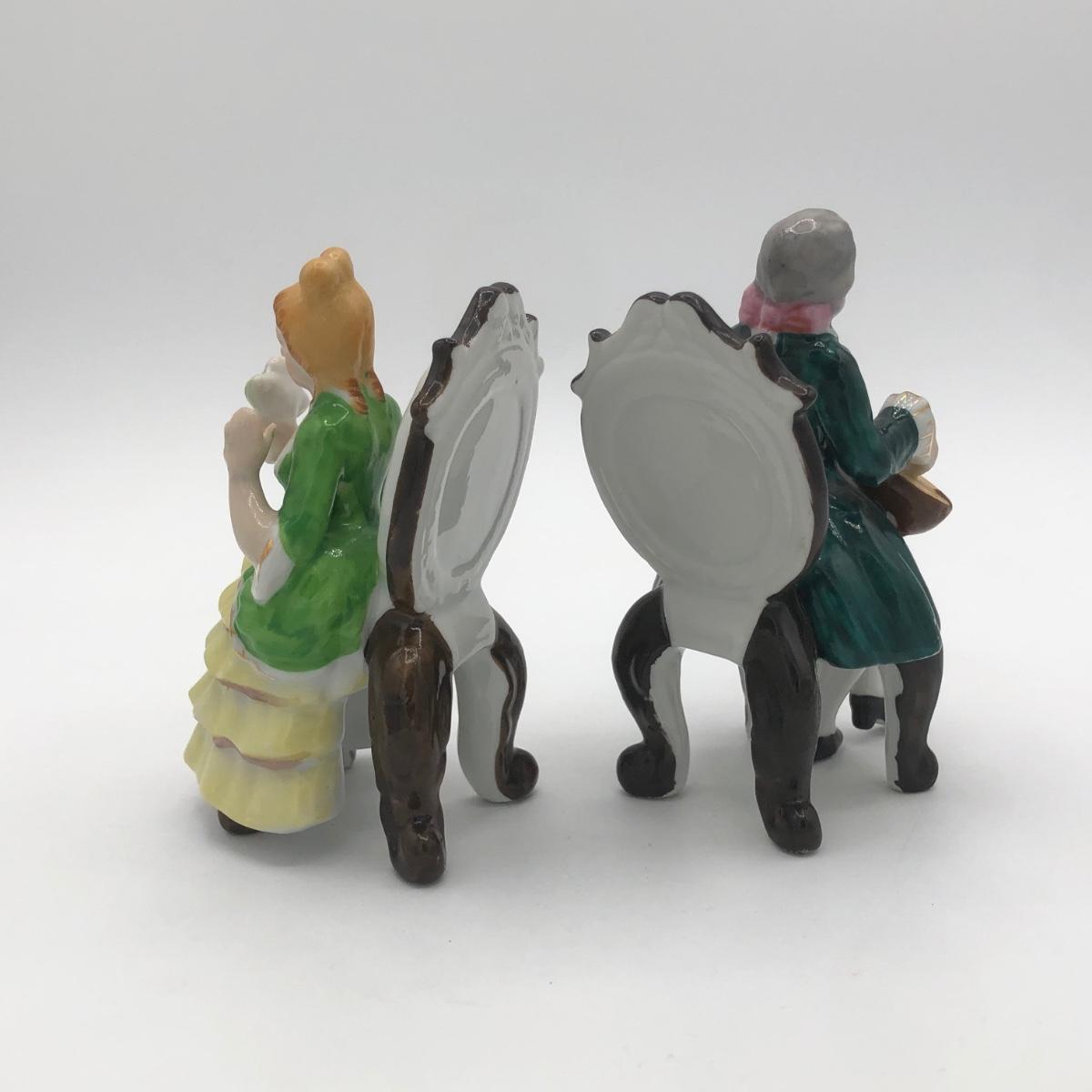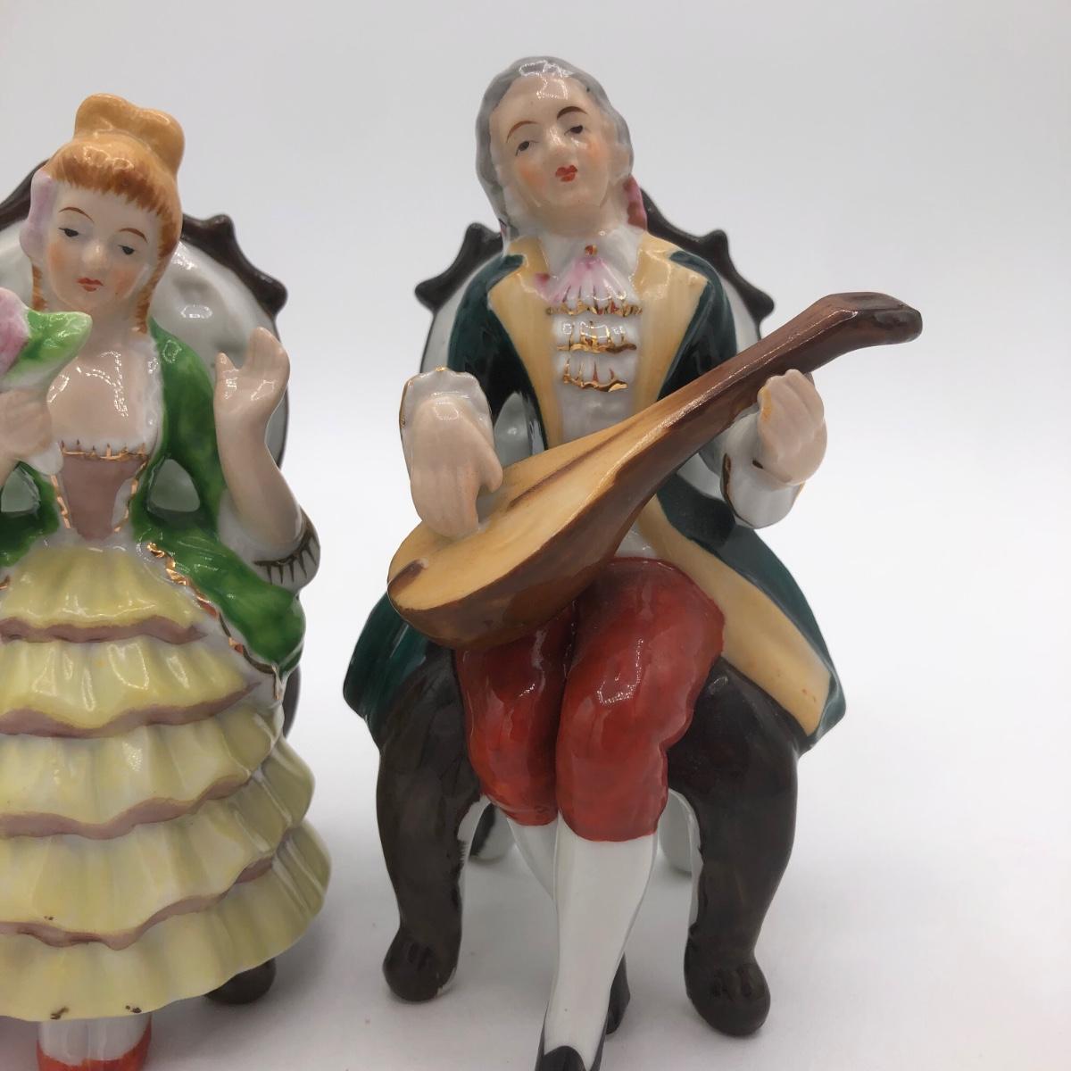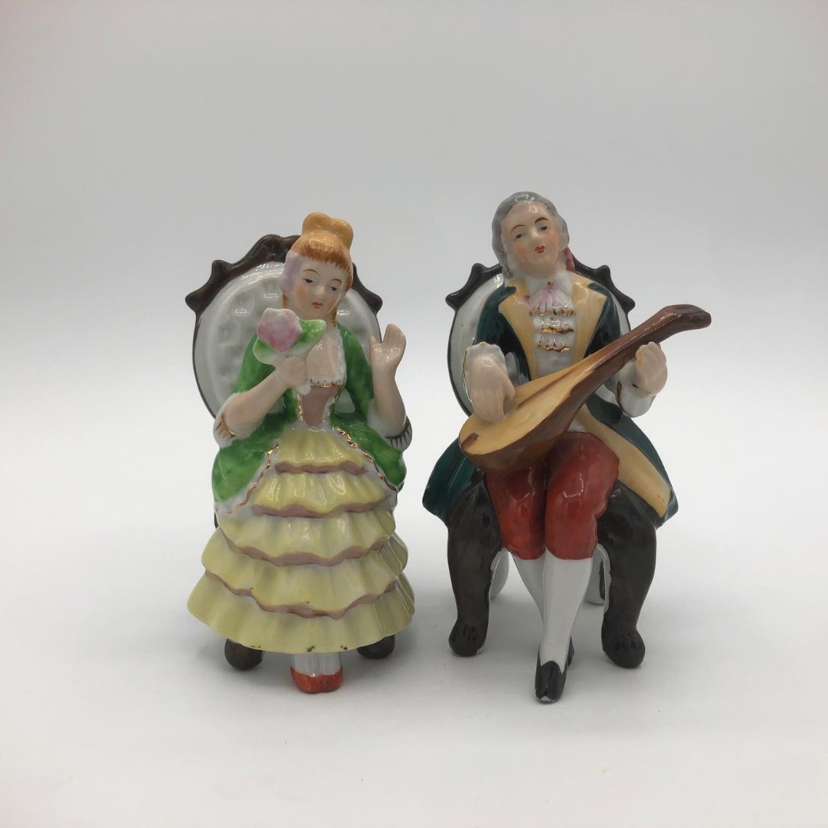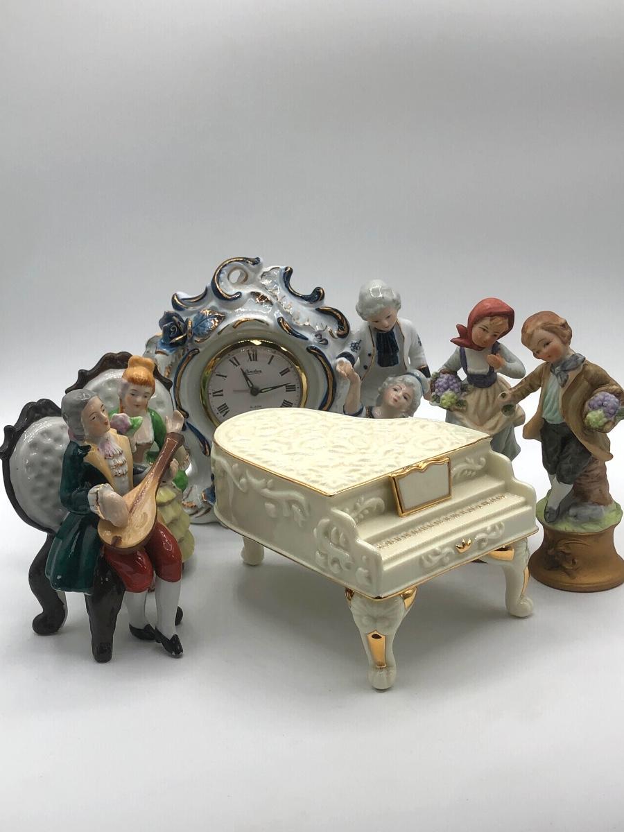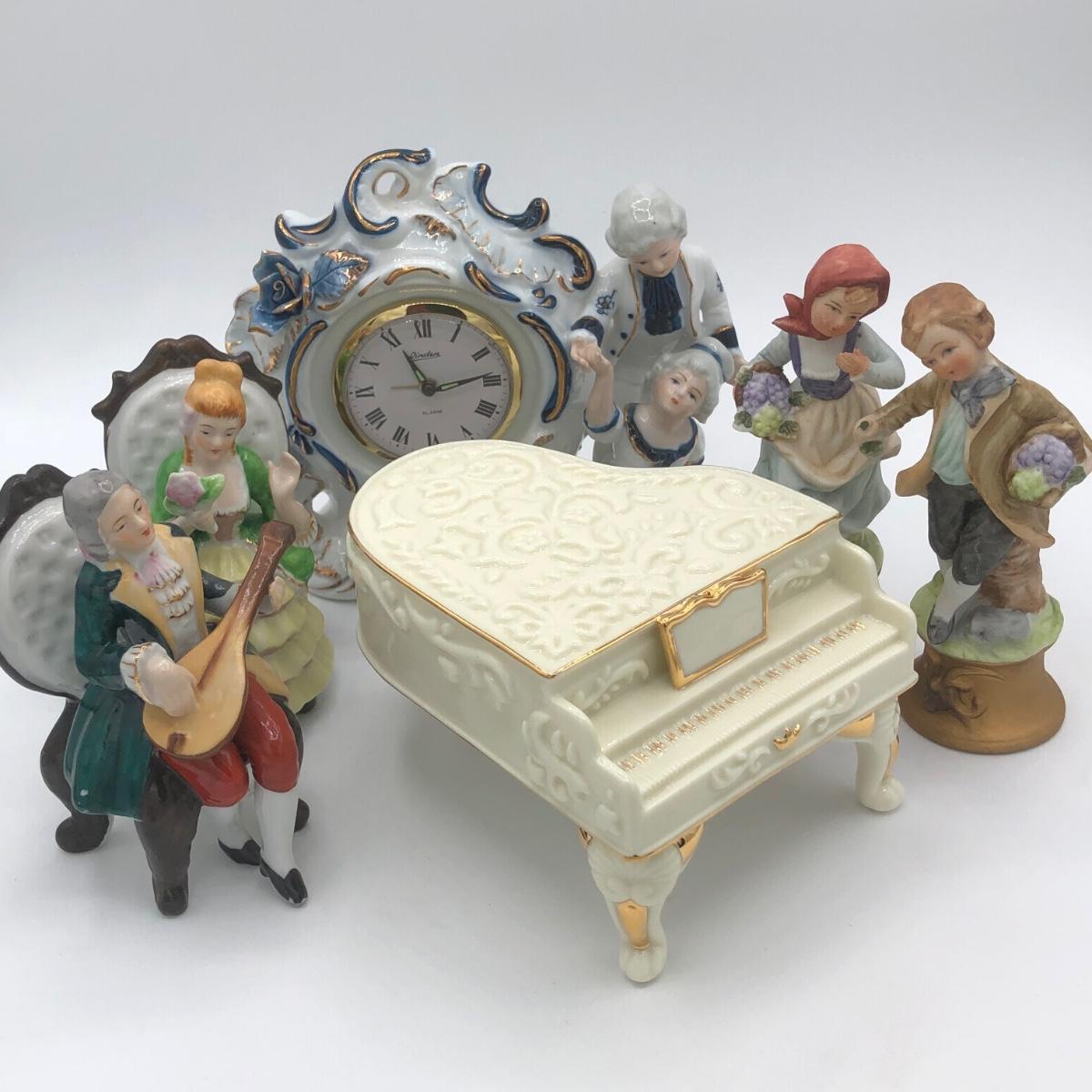 LOT 44: Vintage Porcelain Figurine Collection incl. Musical Piano & Linden Alarm Clock