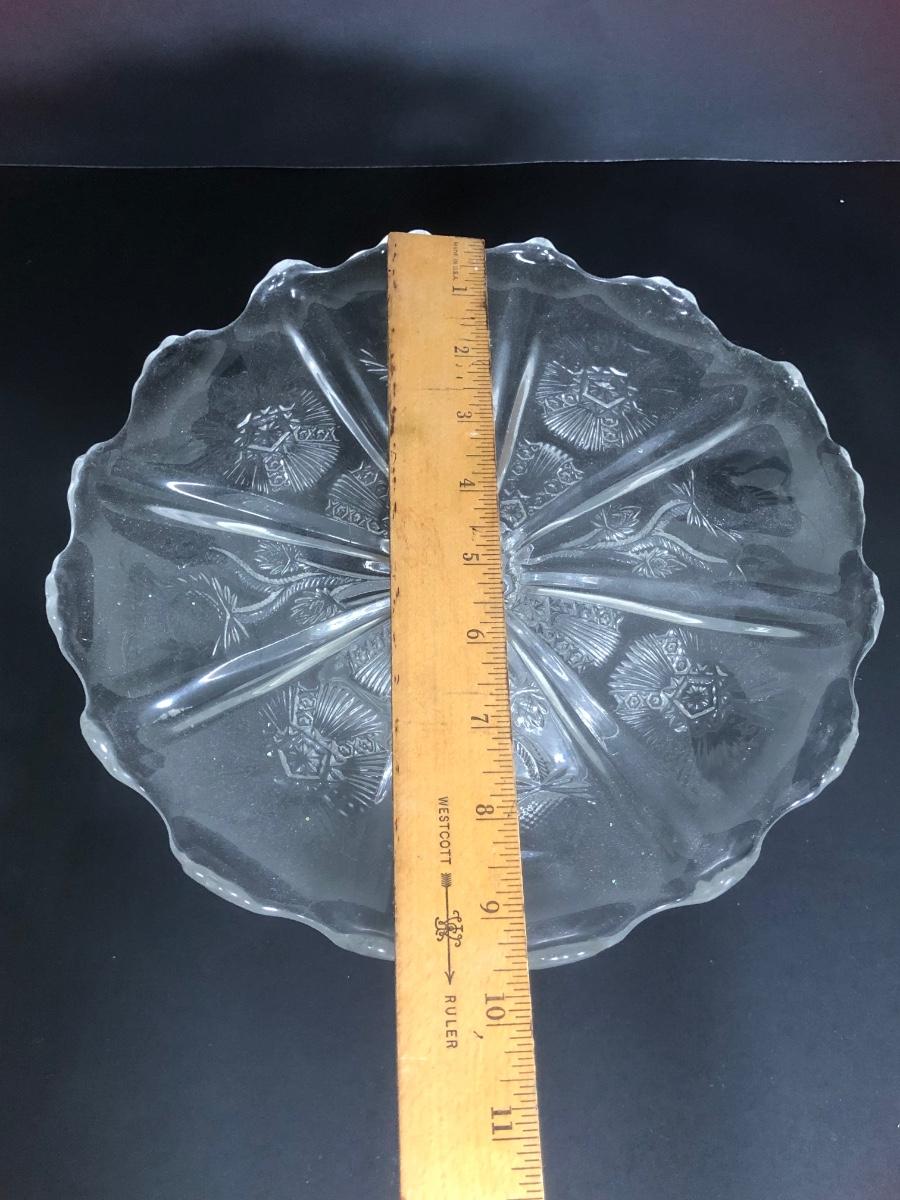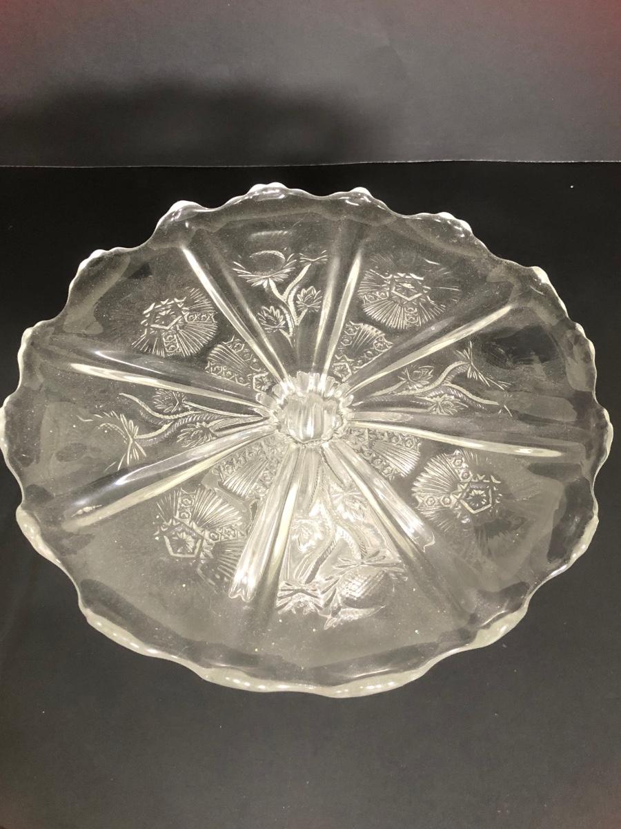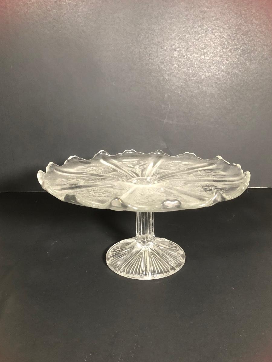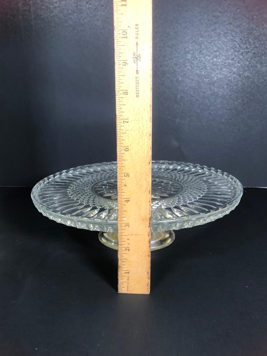 LOT 46: Vintage Glass Cake Plates, Trifle Dish & Sheffield Cake Serving Set w/ Sculpted Floral Handles