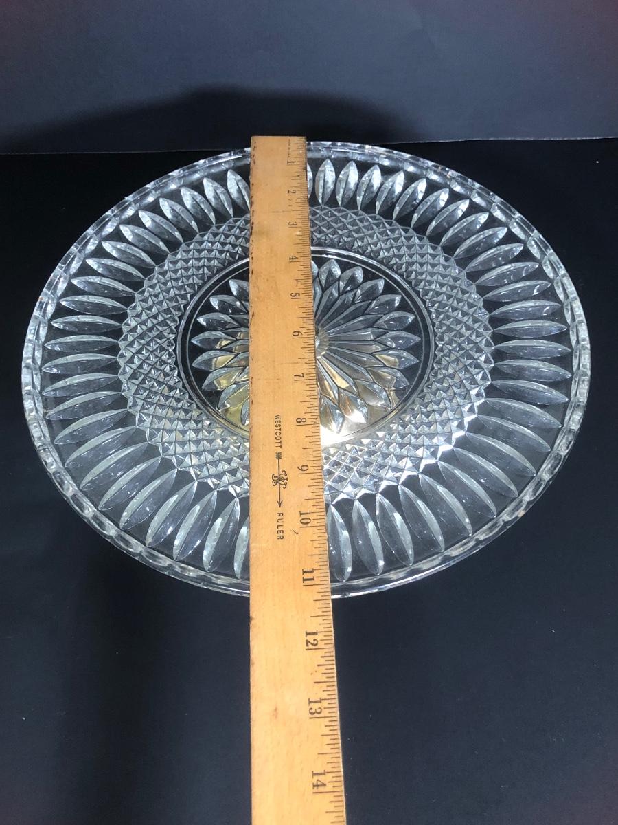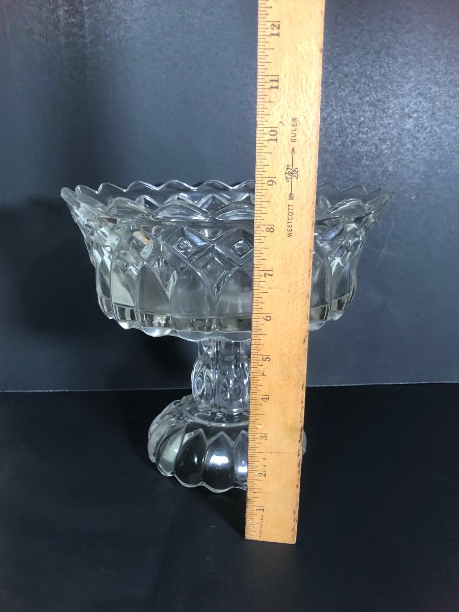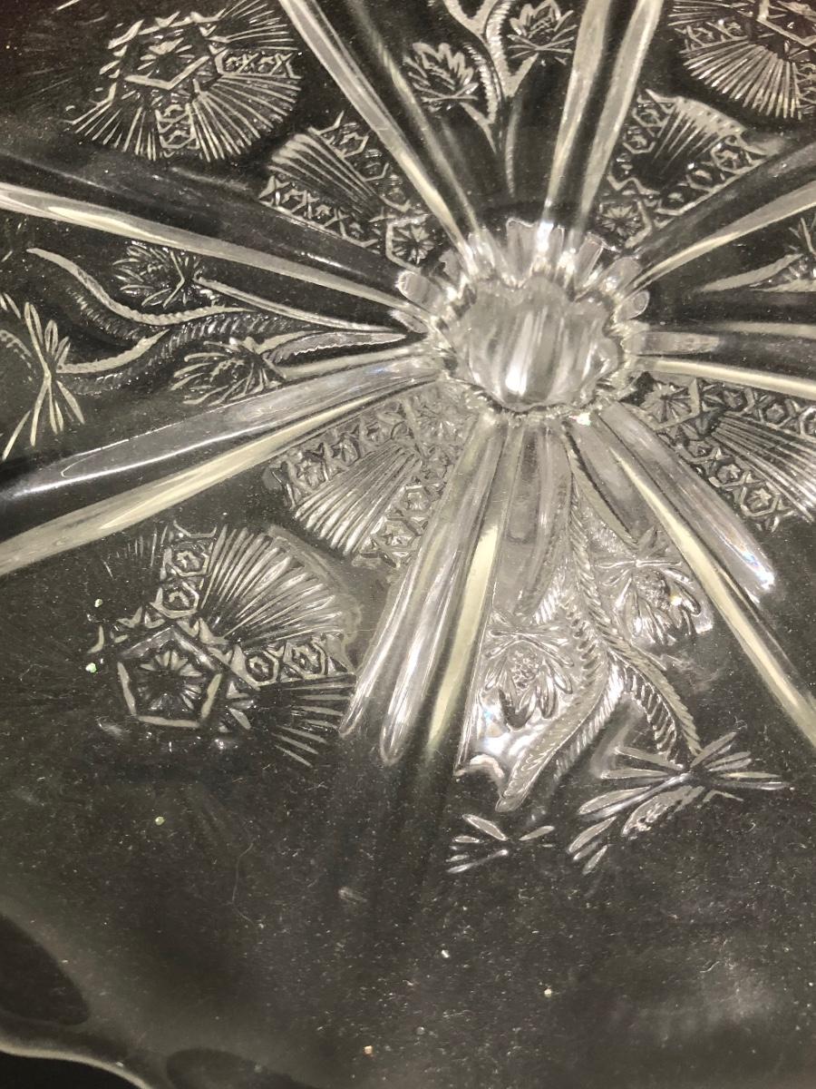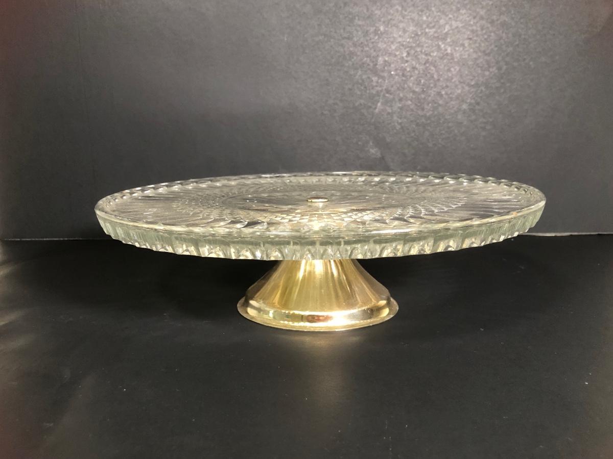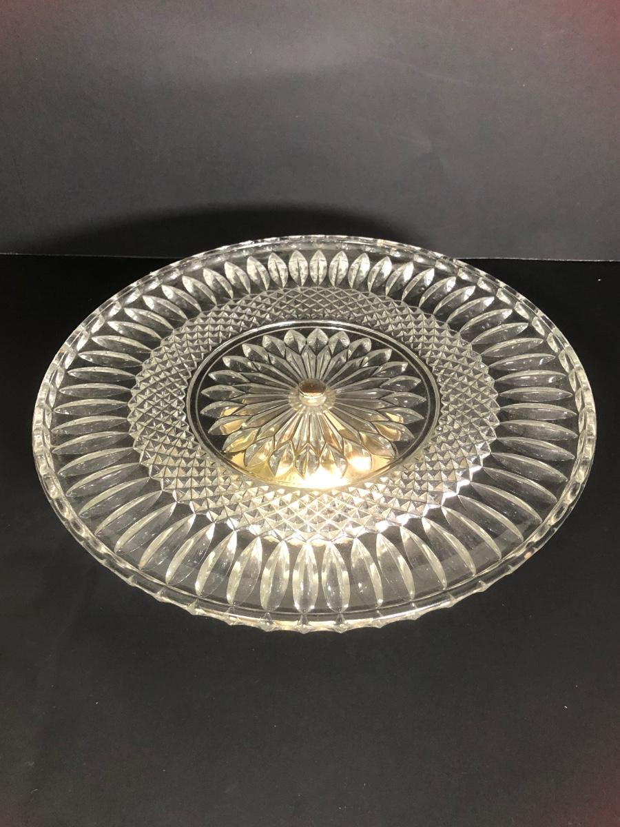 LOT 46: Vintage Glass Cake Plates, Trifle Dish & Sheffield Cake Serving Set w/ Sculpted Floral Handles