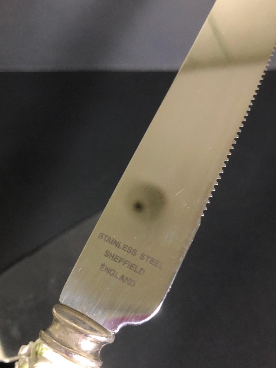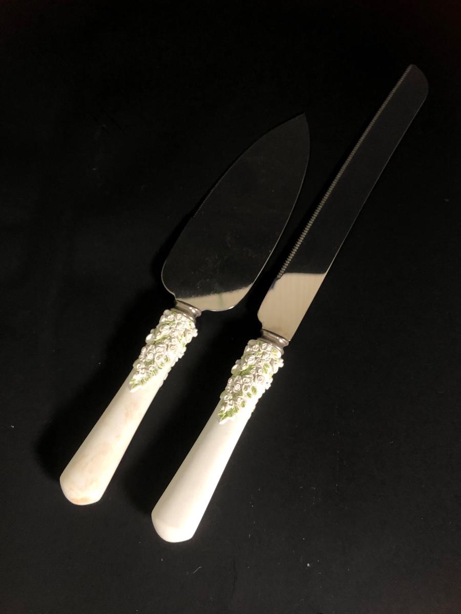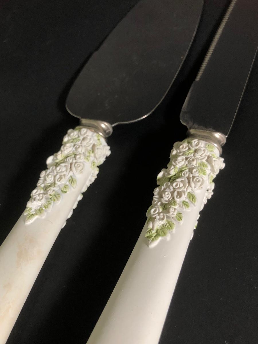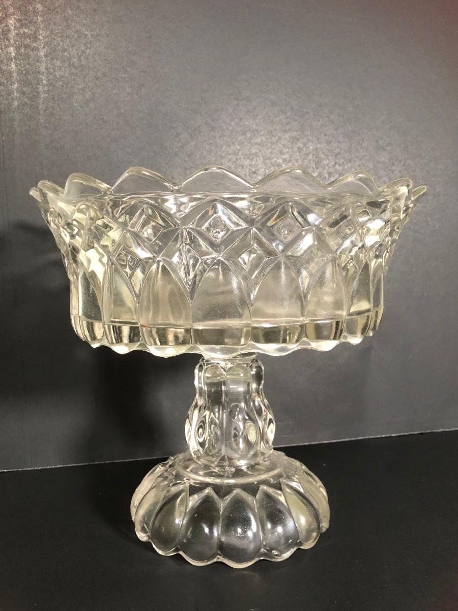 LOT 46: Vintage Glass Cake Plates, Trifle Dish & Sheffield Cake Serving Set w/ Sculpted Floral Handles