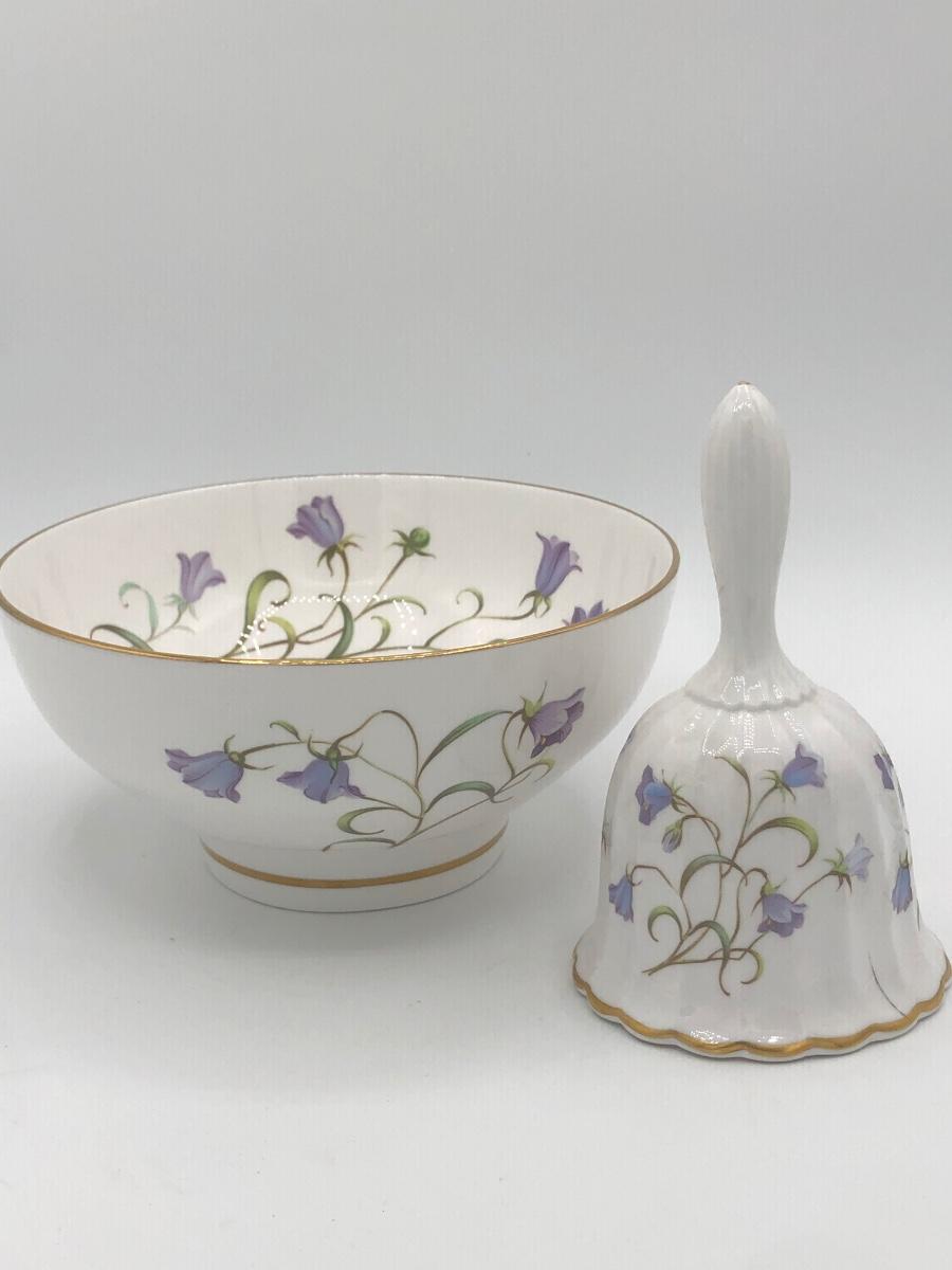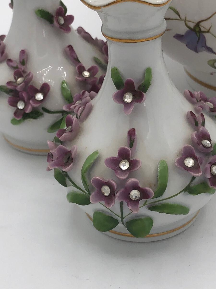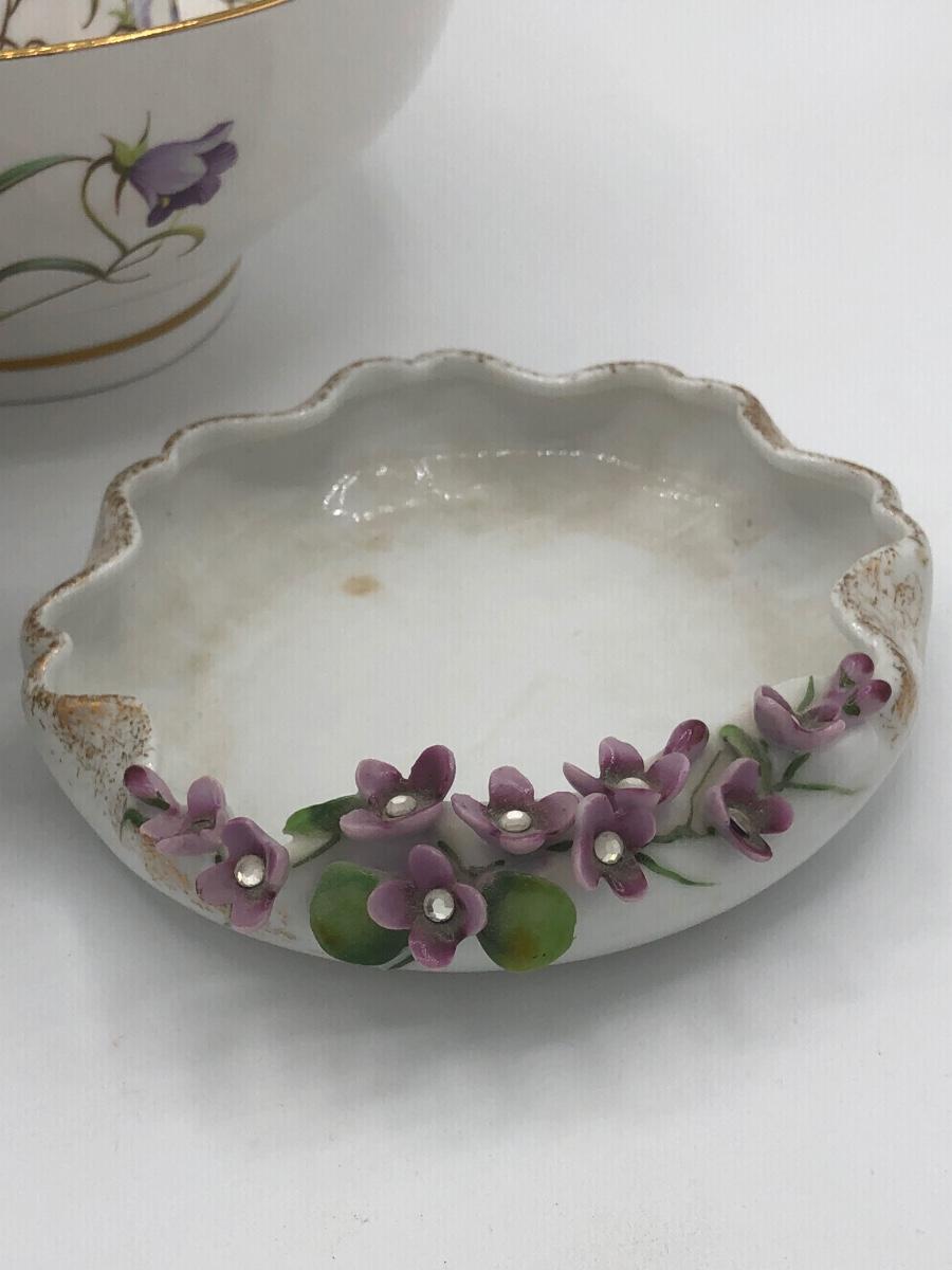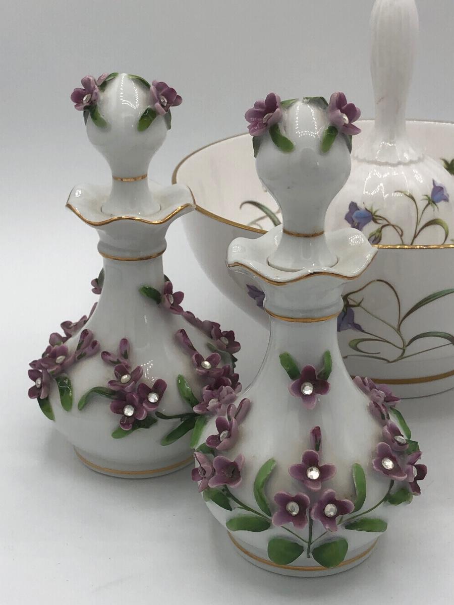 LOT 51: Vintage Lefton Violet Vanity Set & Purple Flower Spode Bowl and Bell
