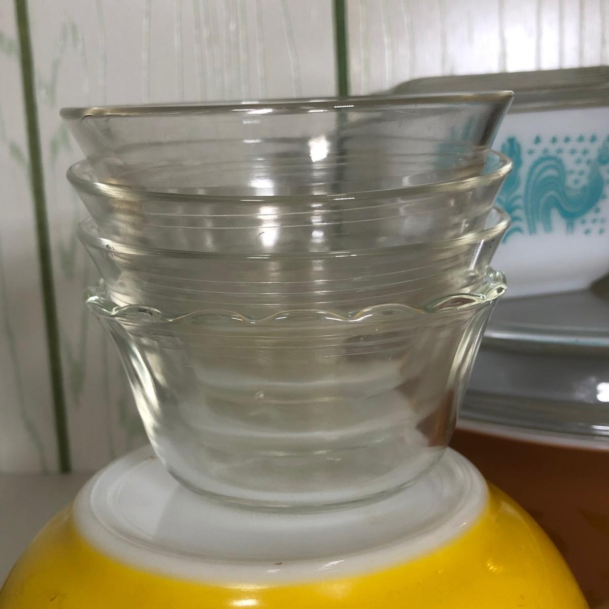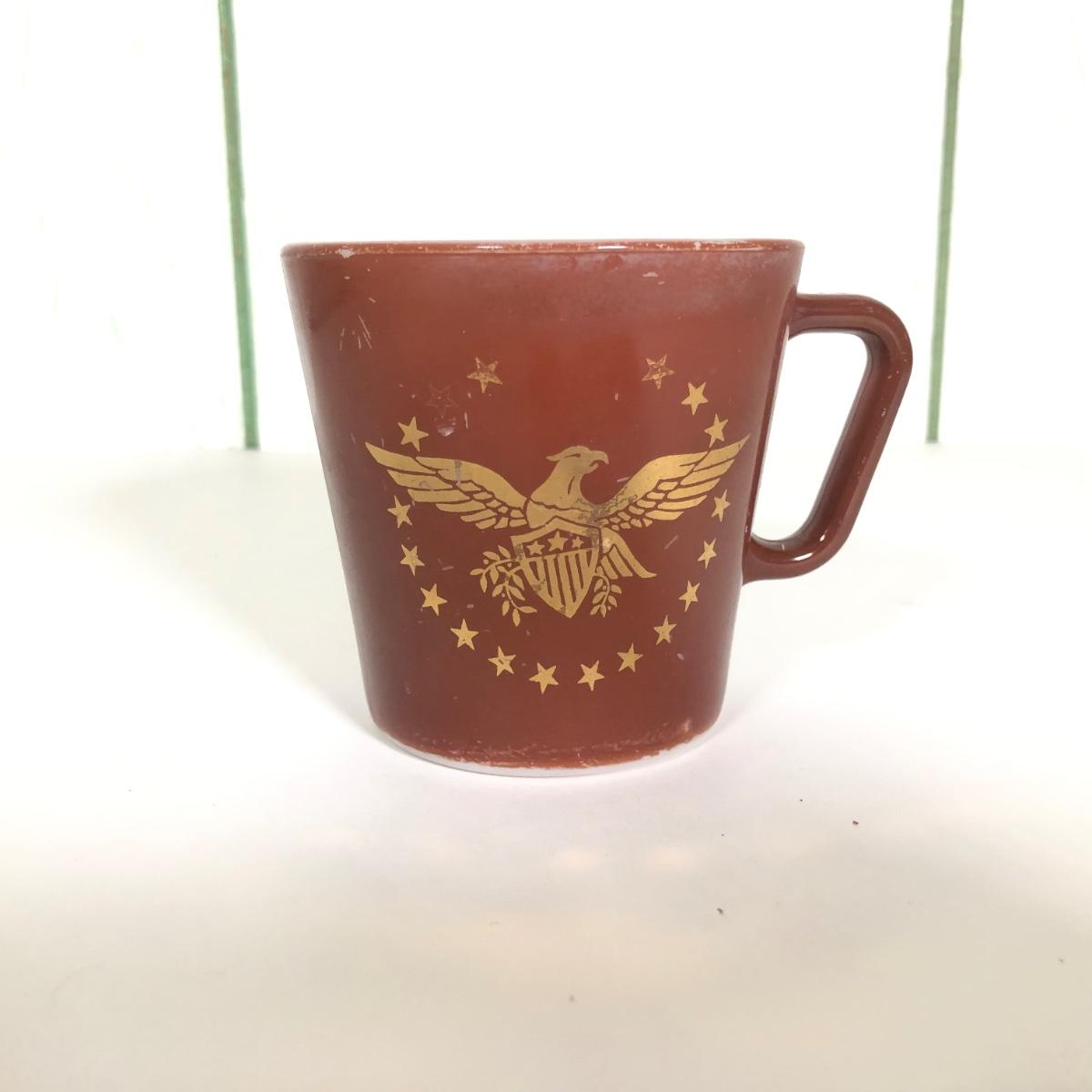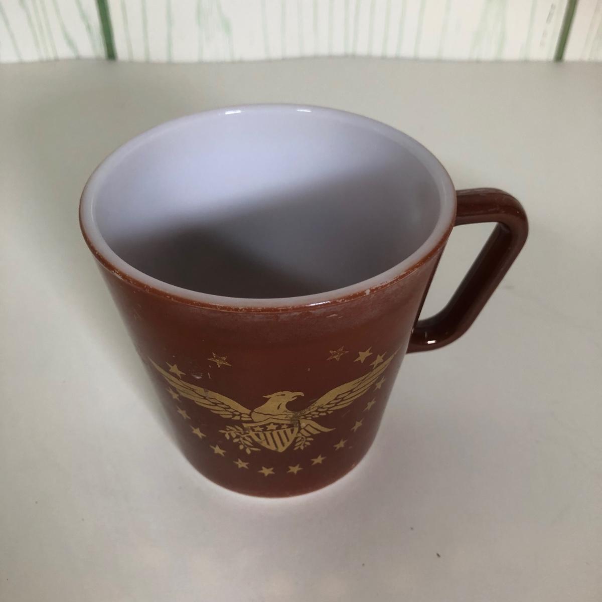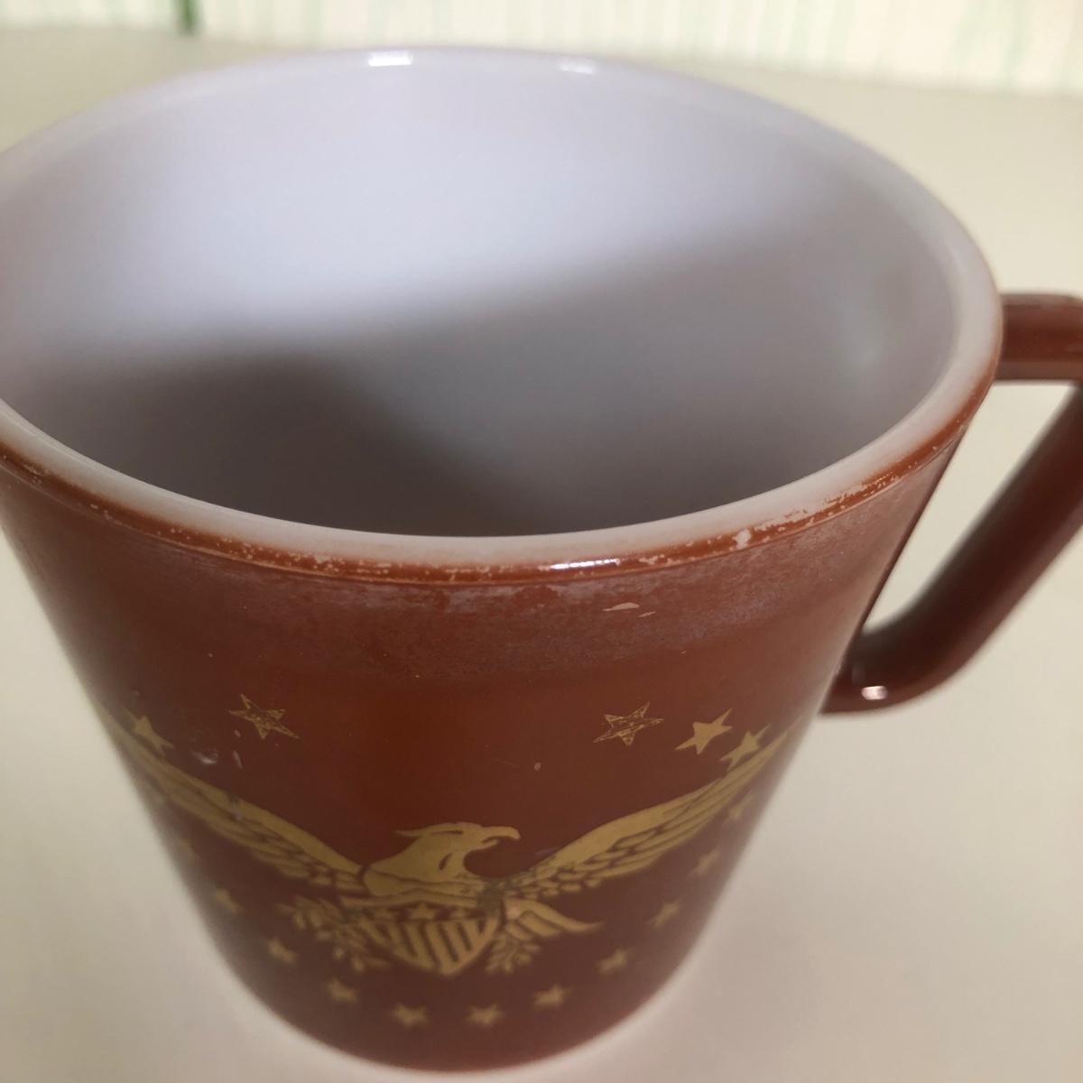 LOT 53: Vintage Pyrex Baking Dishes - Early American Pattern, Eagle Liberty Mug & Amish Butterprint Pattern