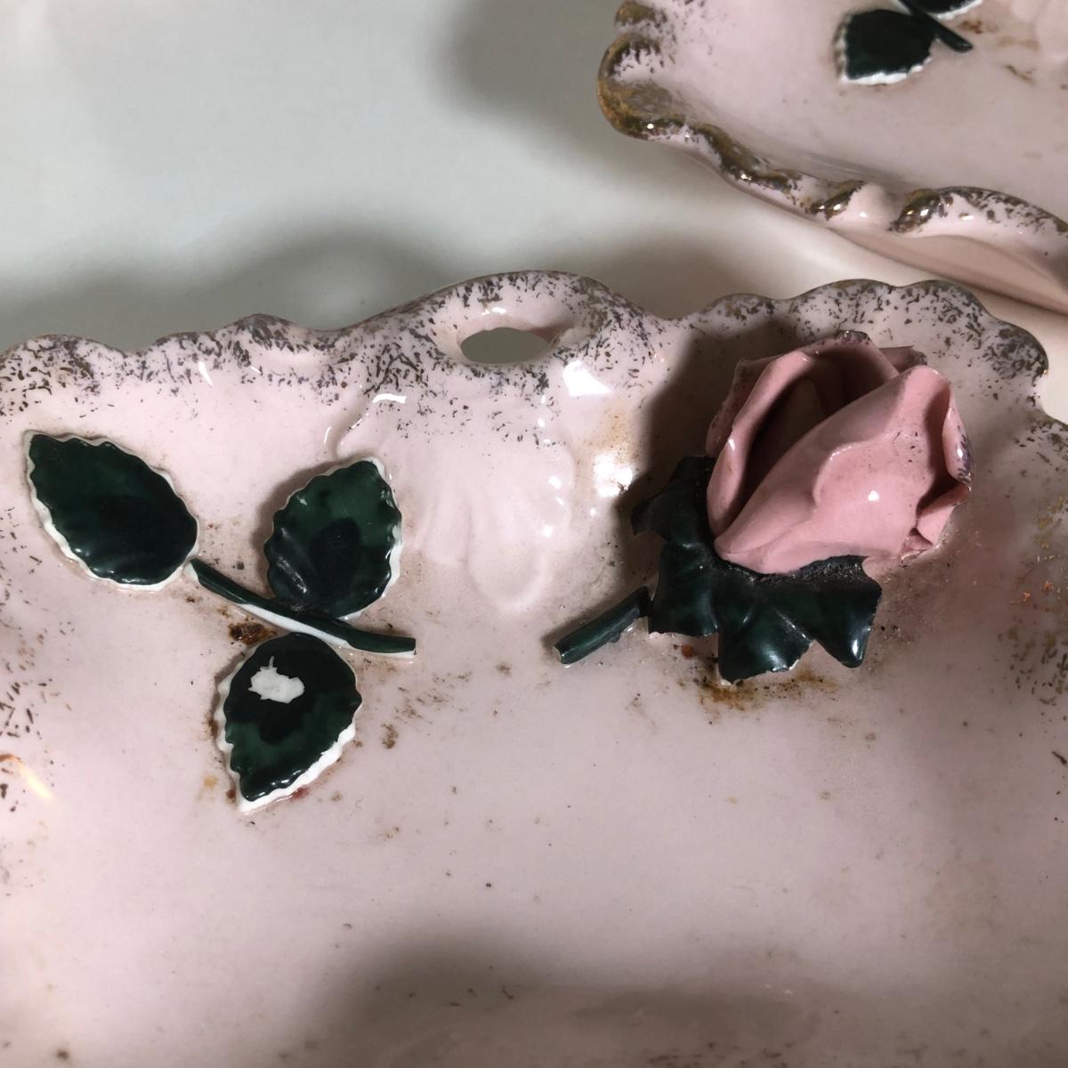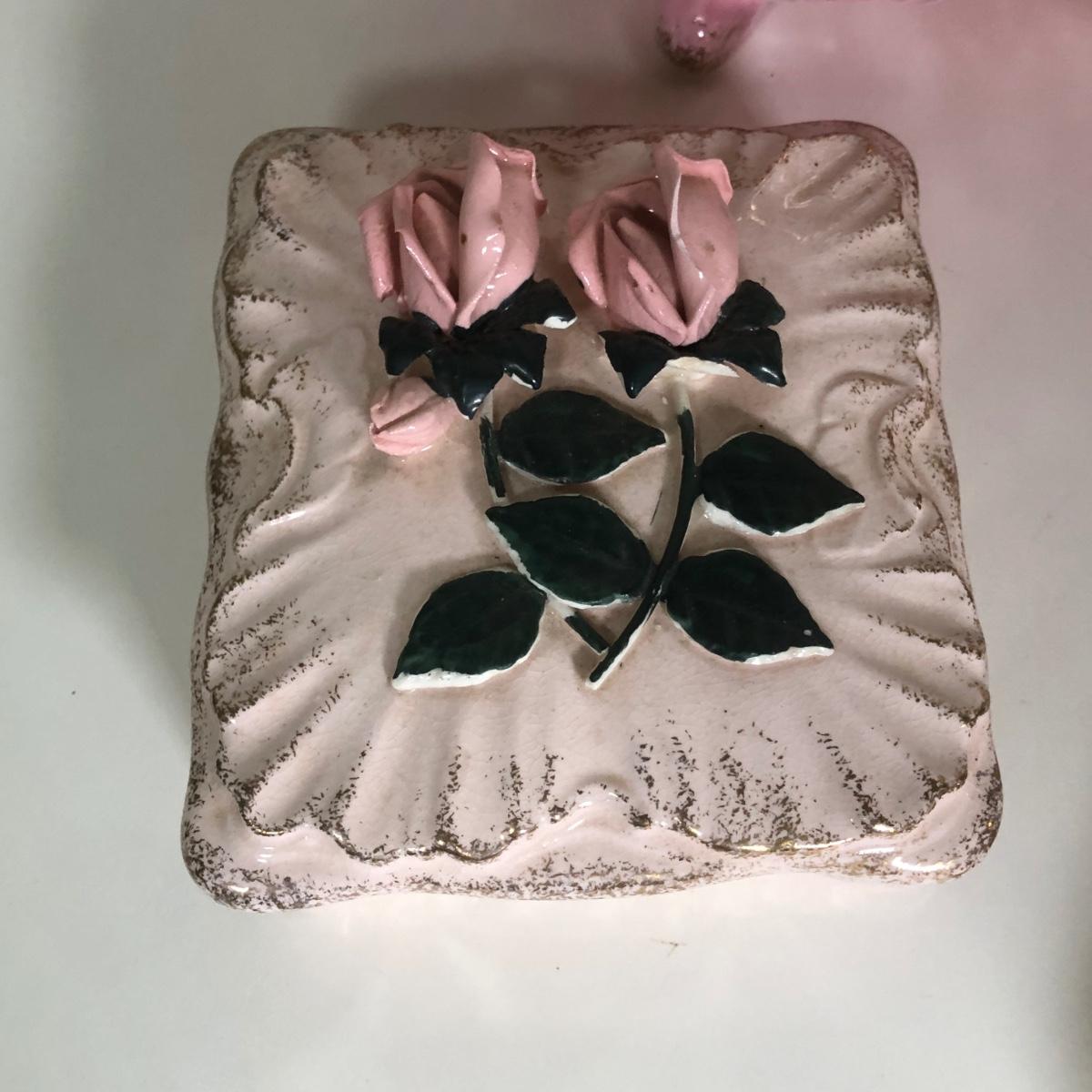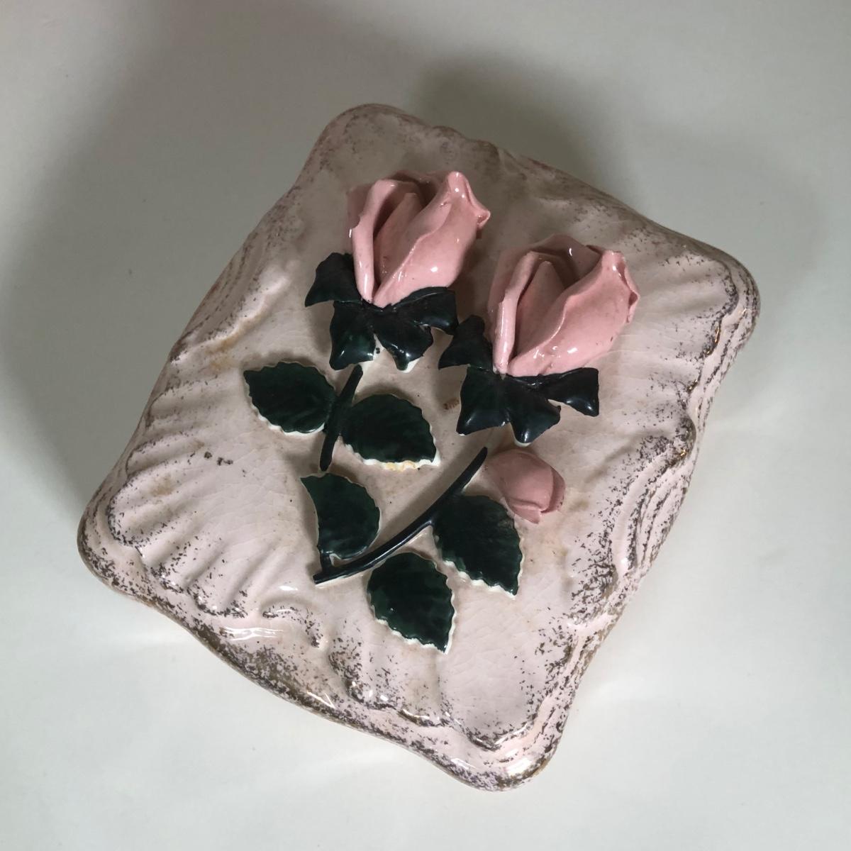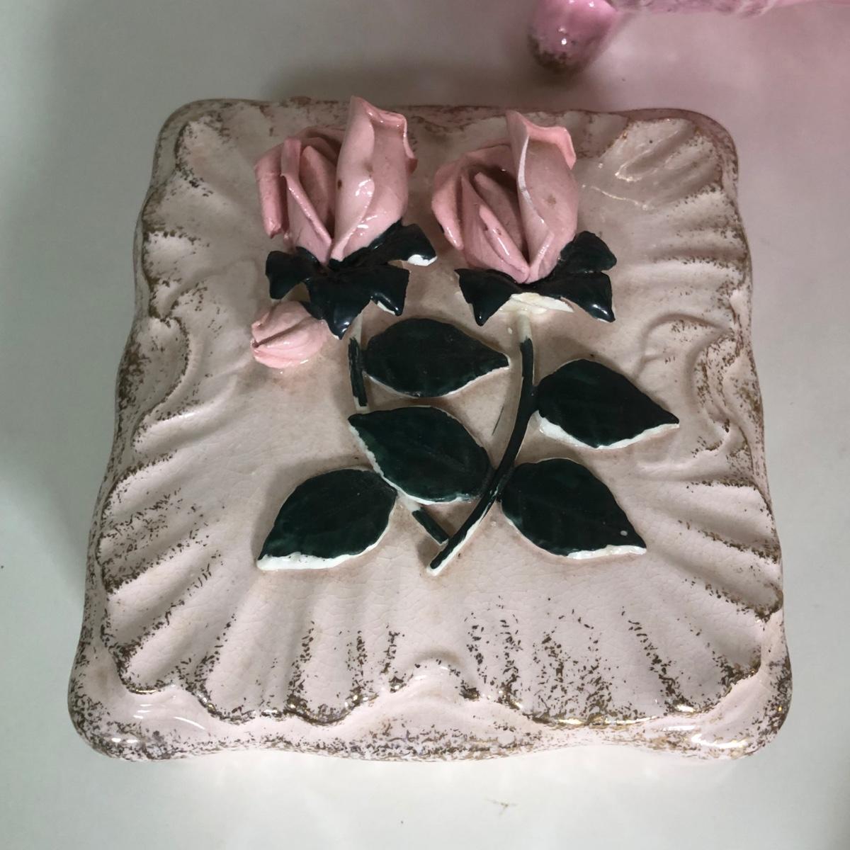 LOT 55: Vintage Pink Collection - Lefton Rose Trinket / Jewelry / Keepsake Boxes, Sadler Teapot & Large Open Mouth Vase