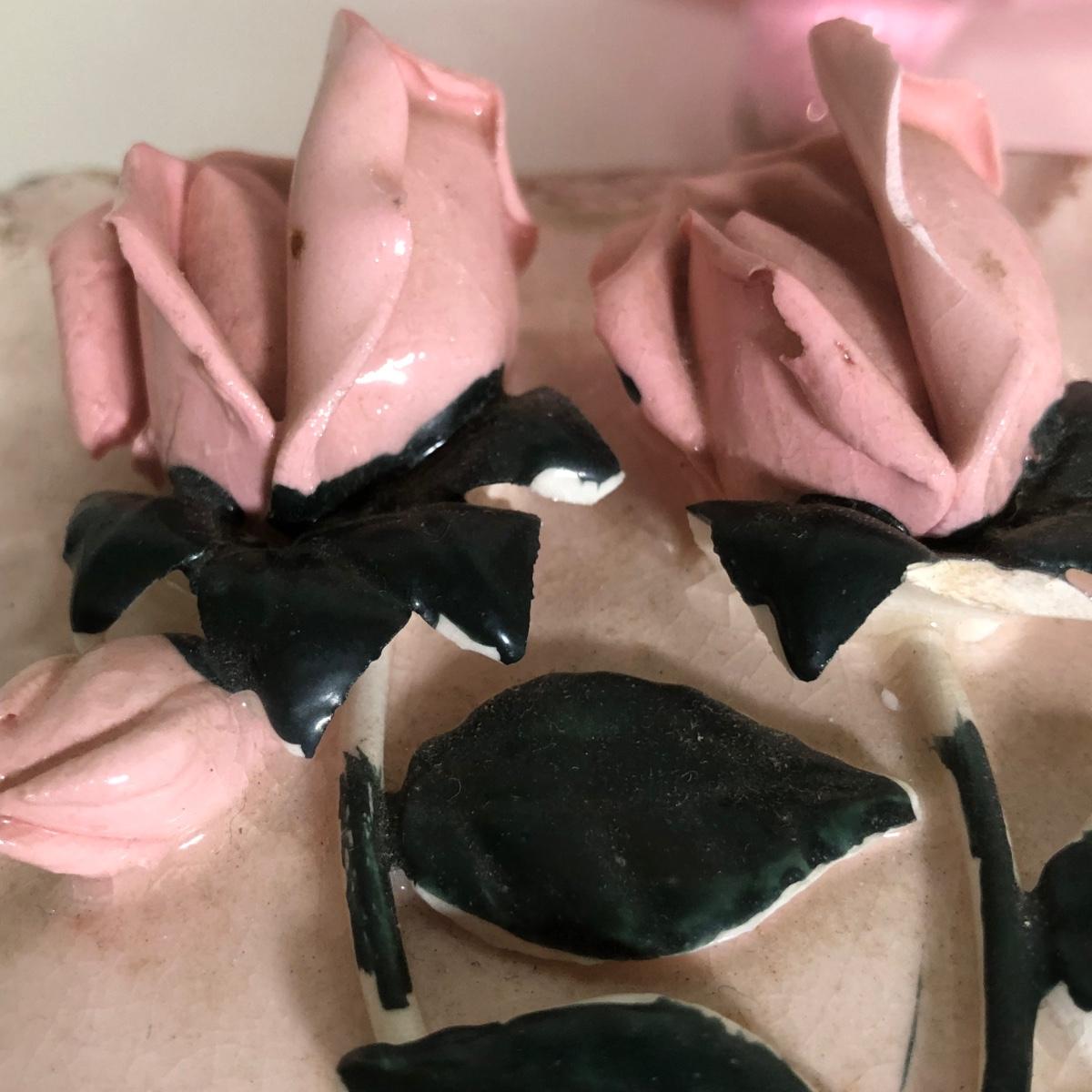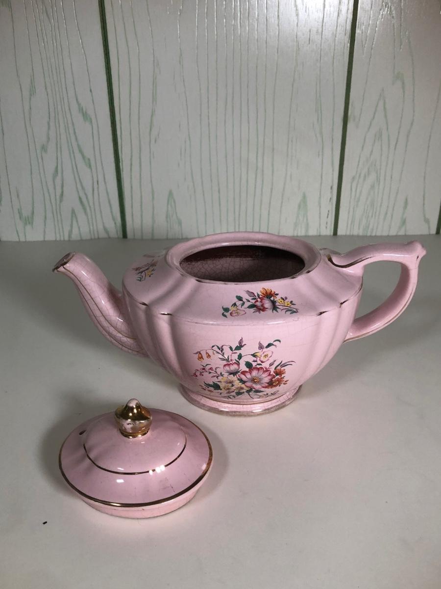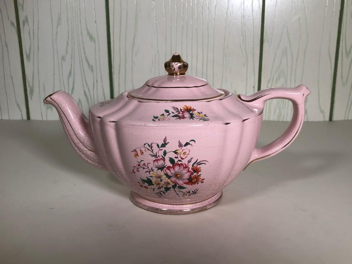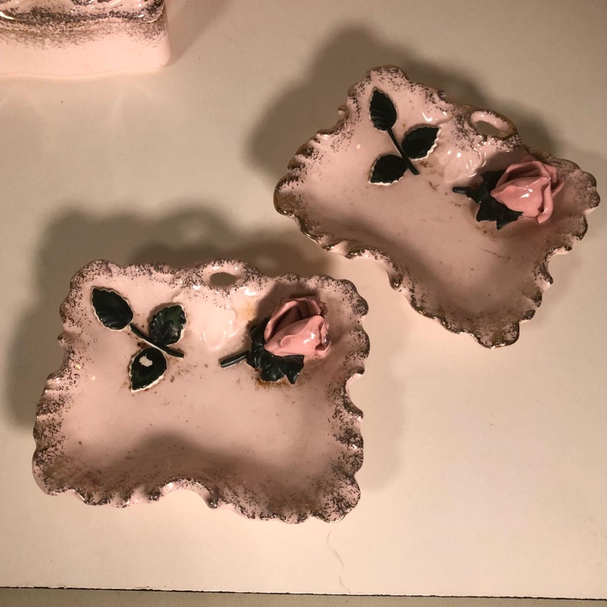 LOT 55: Vintage Pink Collection - Lefton Rose Trinket / Jewelry / Keepsake Boxes, Sadler Teapot & Large Open Mouth Vase