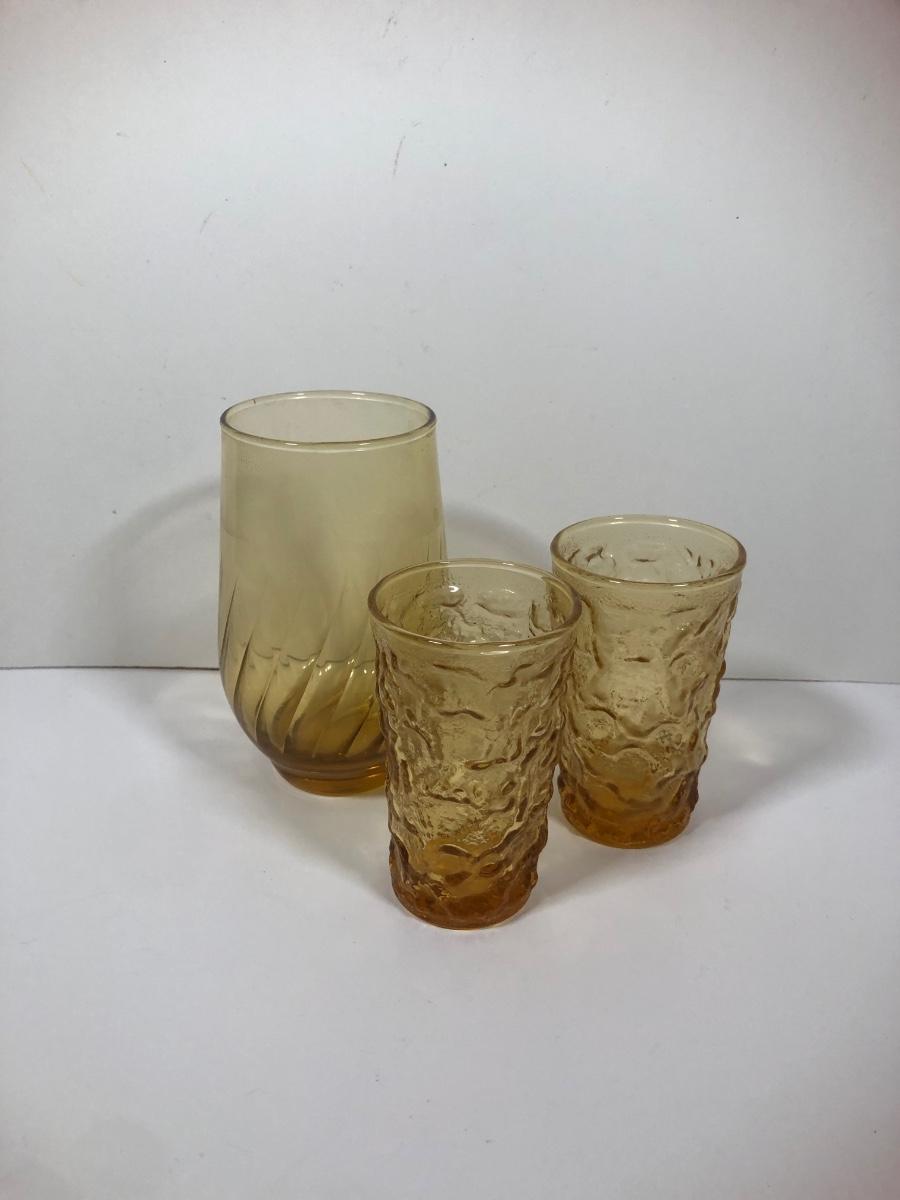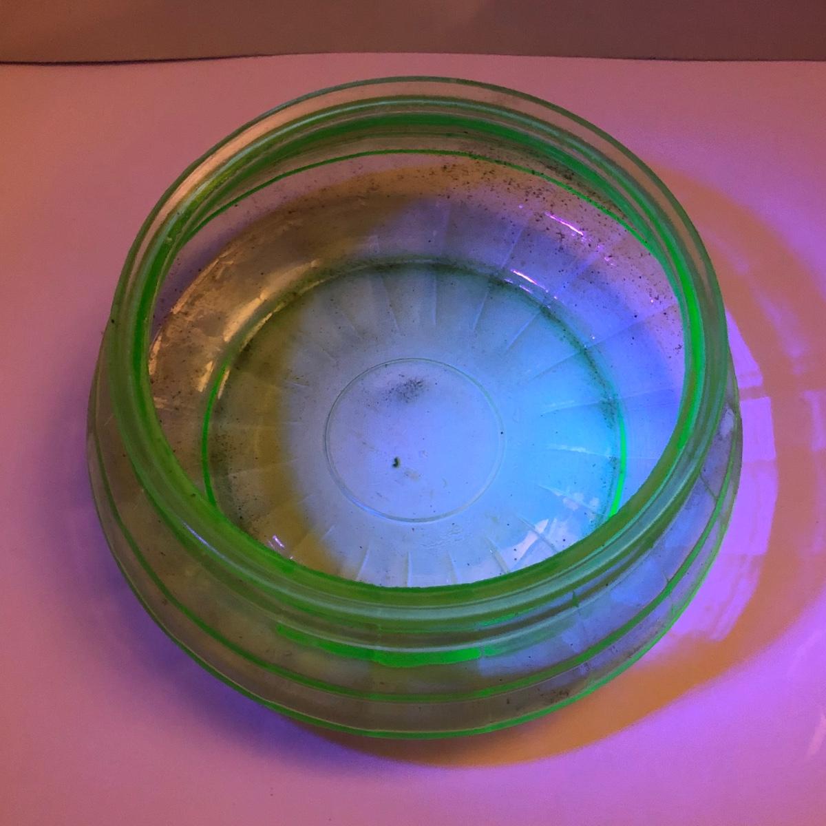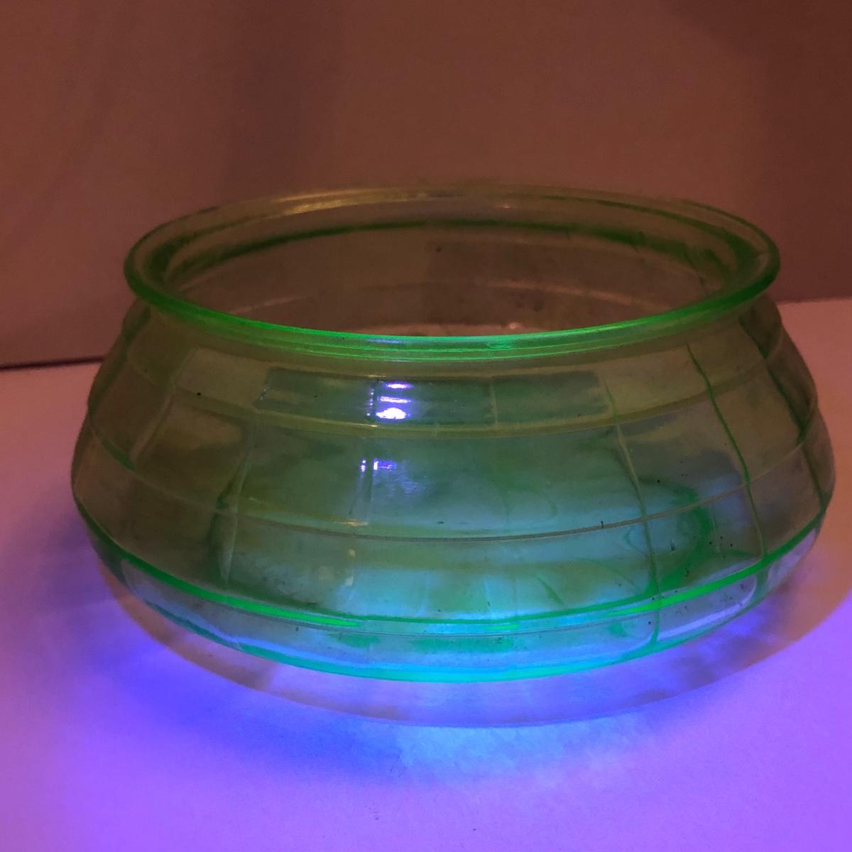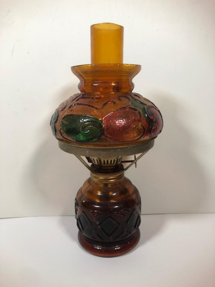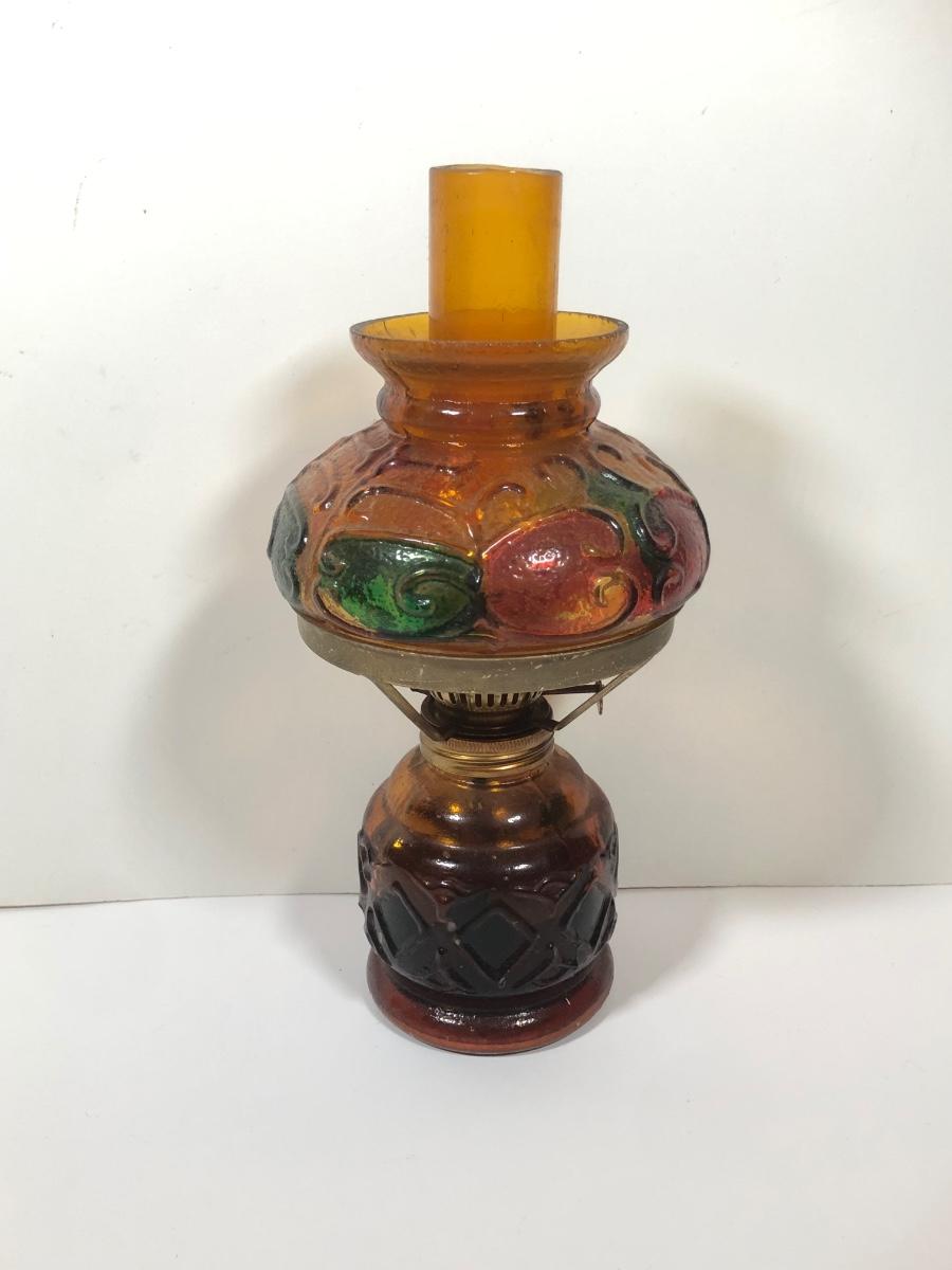 LOT 64: Colorful Glass Collection - Uranium Glass Bowl Amber Oil Lamp, Lara's Theme Musical Blue Jar & More